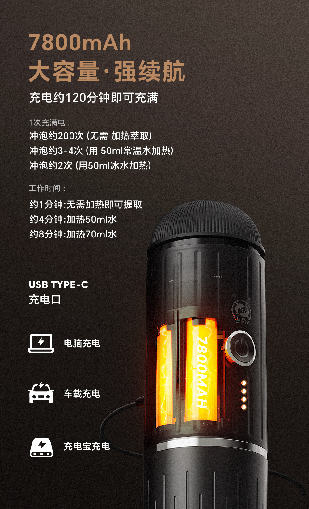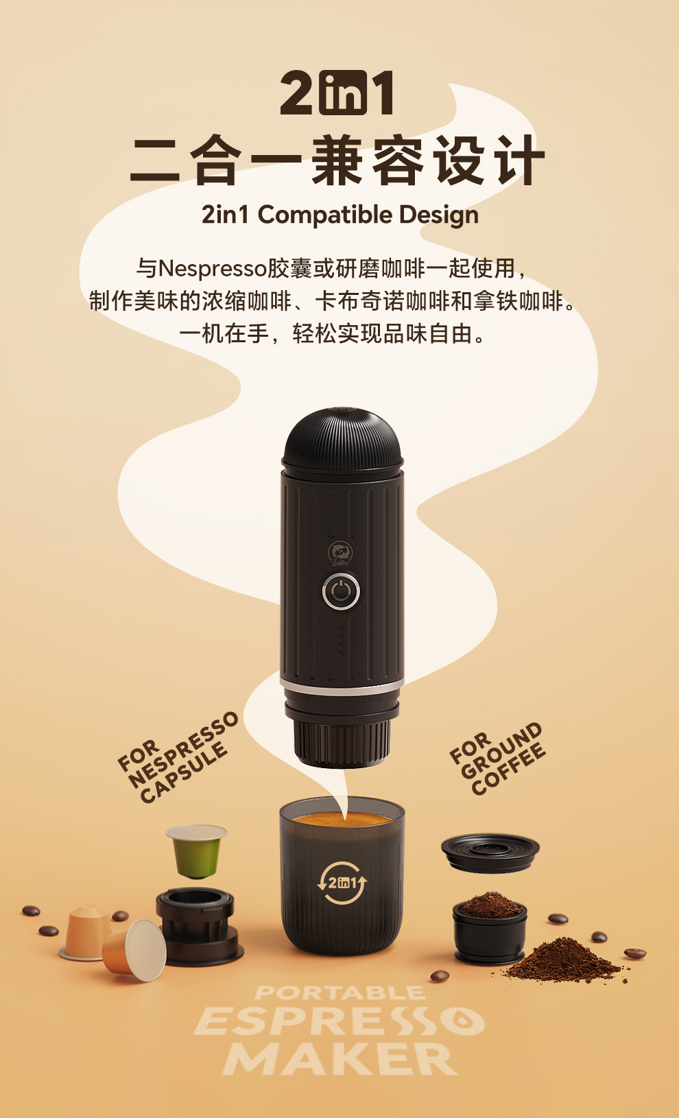 迷你款意式浓缩便携式咖啡机USB线插电动冷热萃取咖啡粉胶囊两用