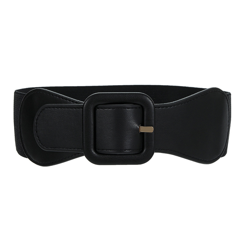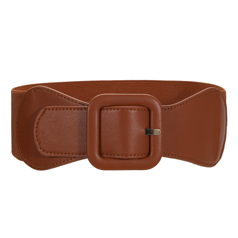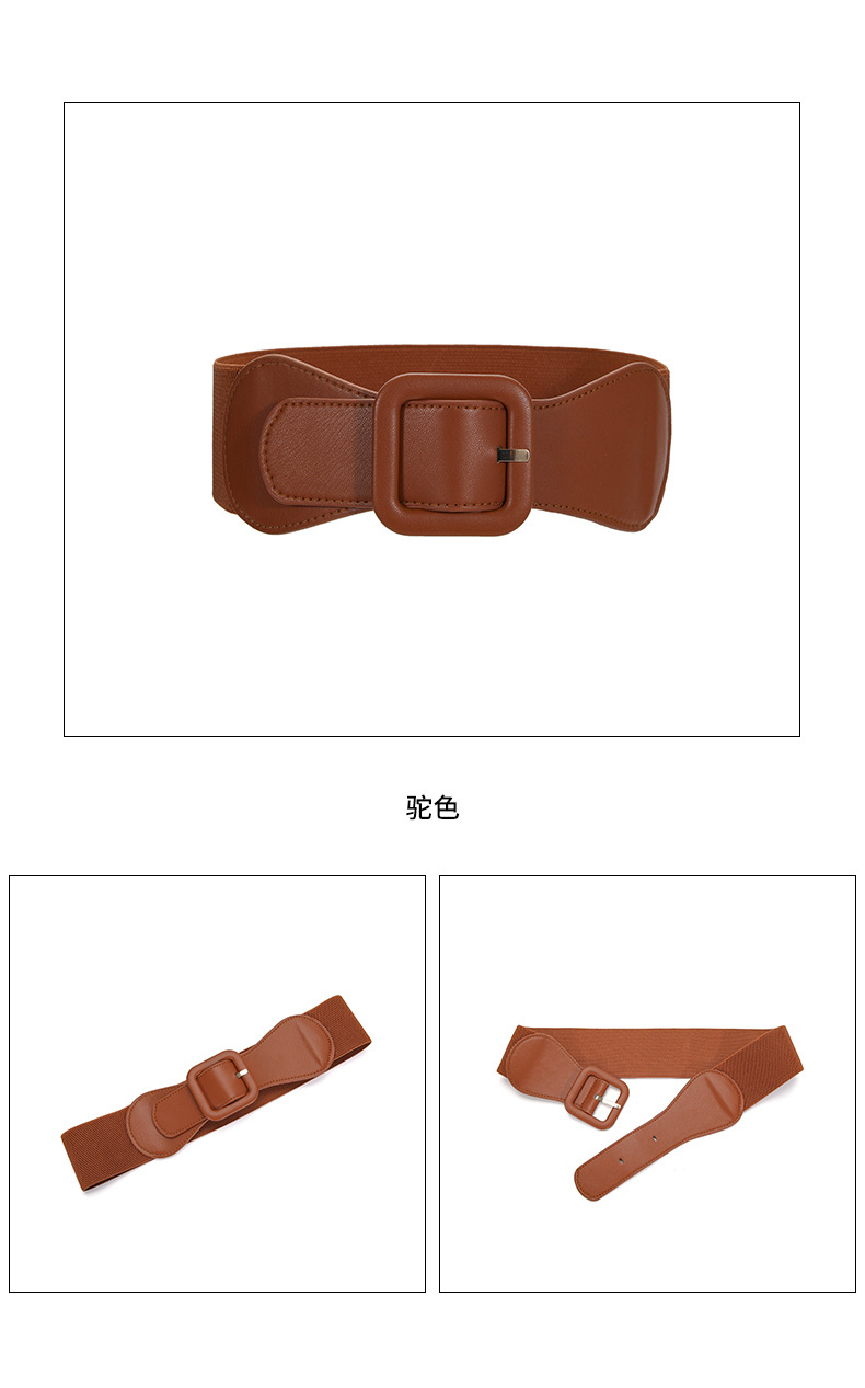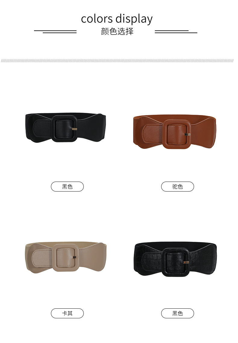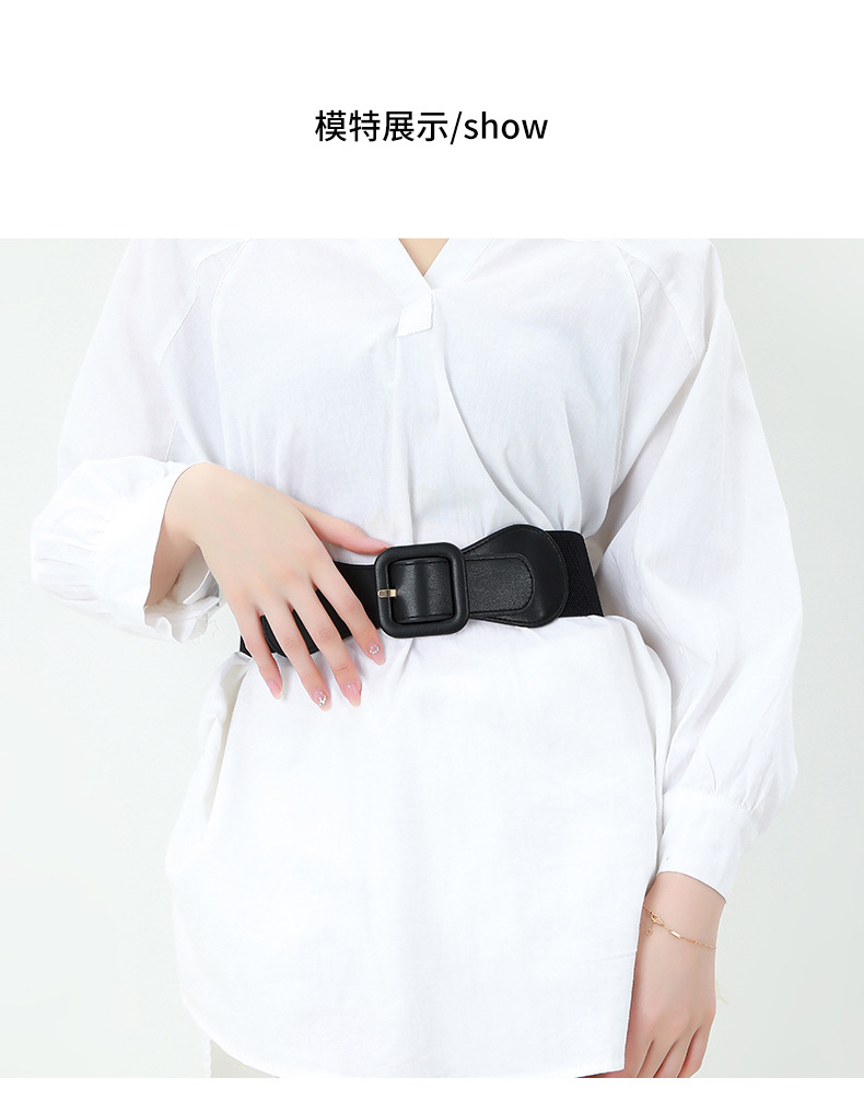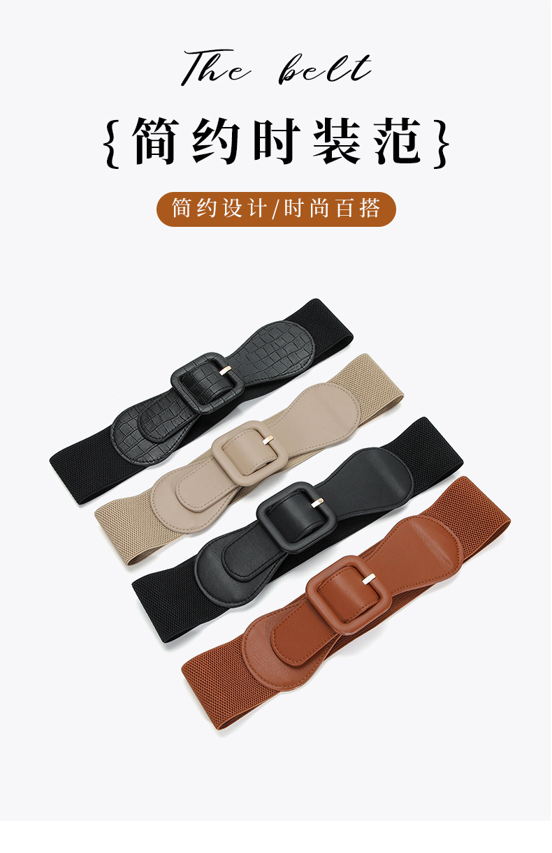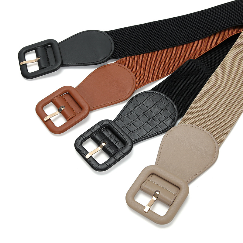 2024跨境新款方扣包扣装饰编织松紧弹力宽腰封女士时尚连衣裙腰带