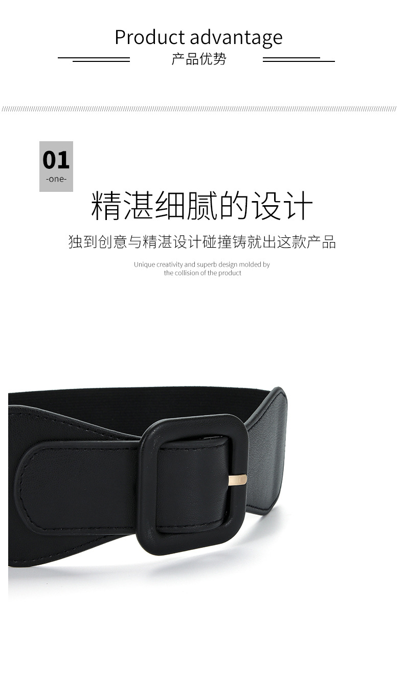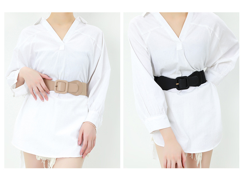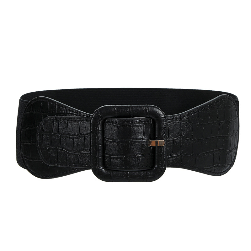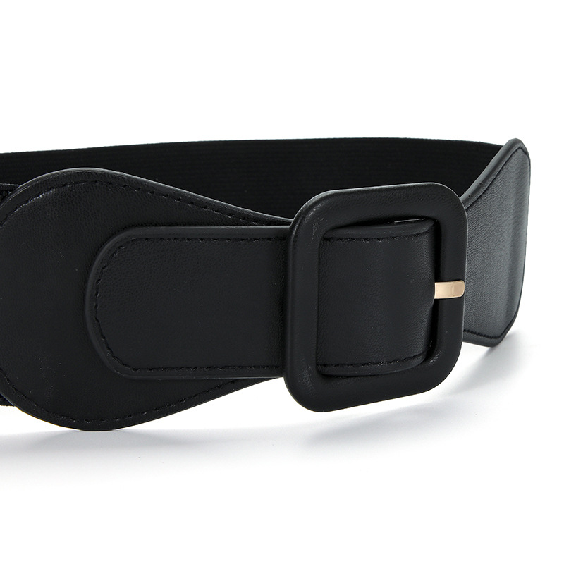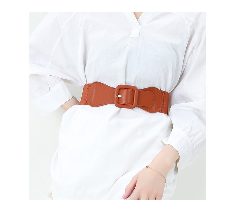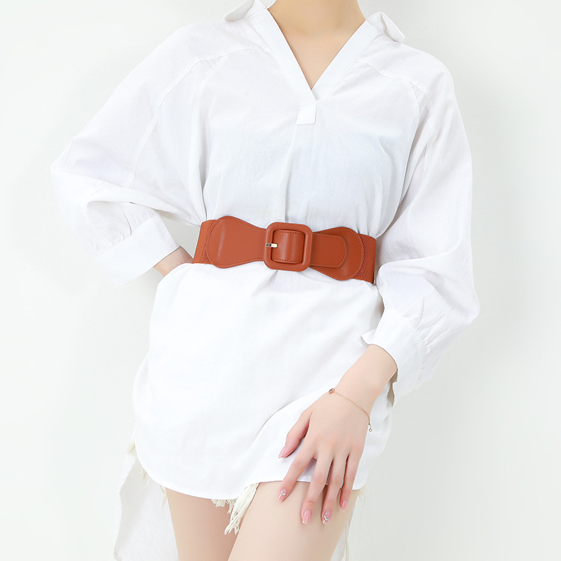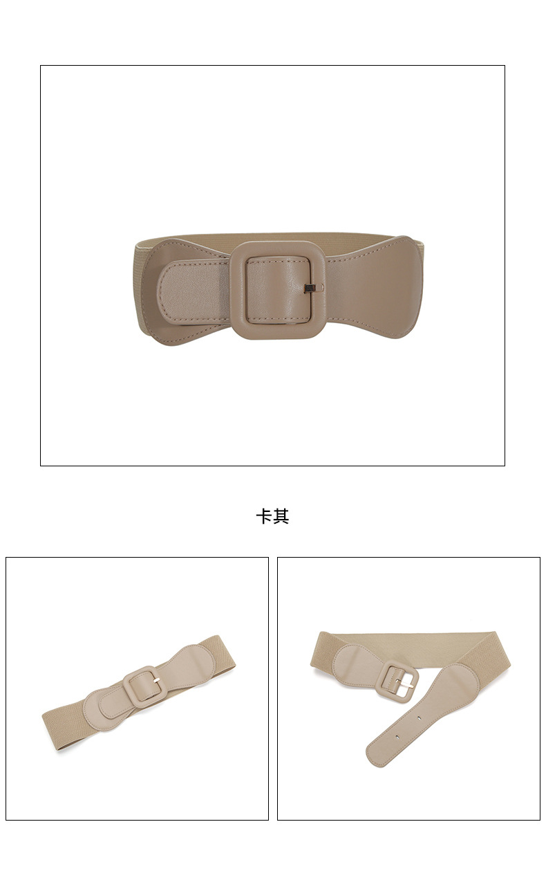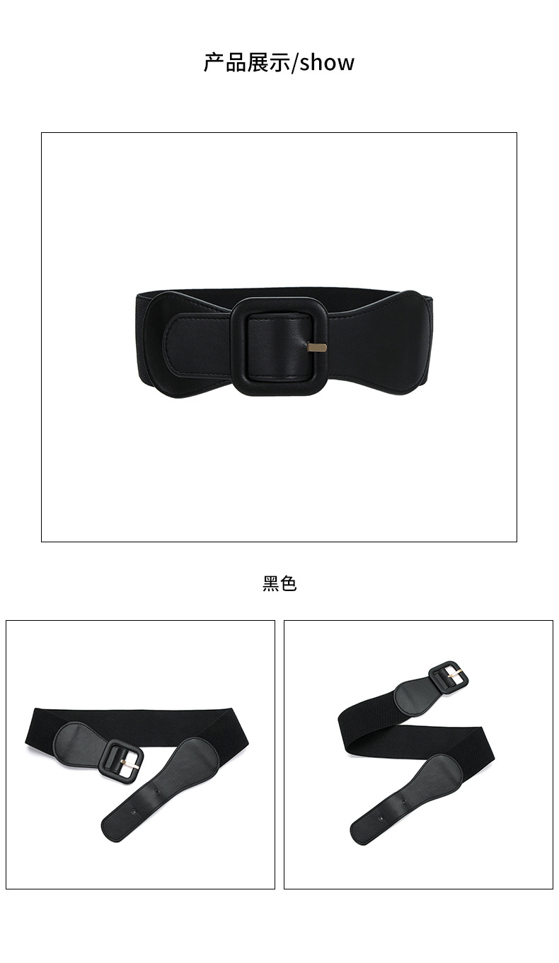 2024跨境新款方扣包扣装饰编织松紧弹力宽腰封女士时尚连衣裙腰带