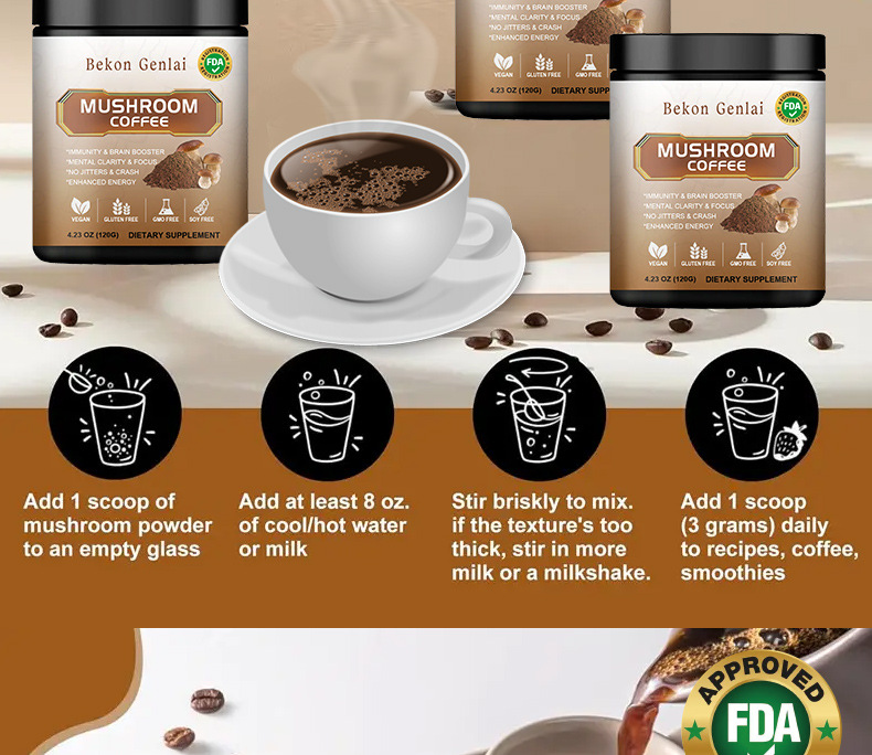 TK美区爆款mushroomcoffee蘑菇咖啡跨境外贸袋装咖啡源头工厂批发
