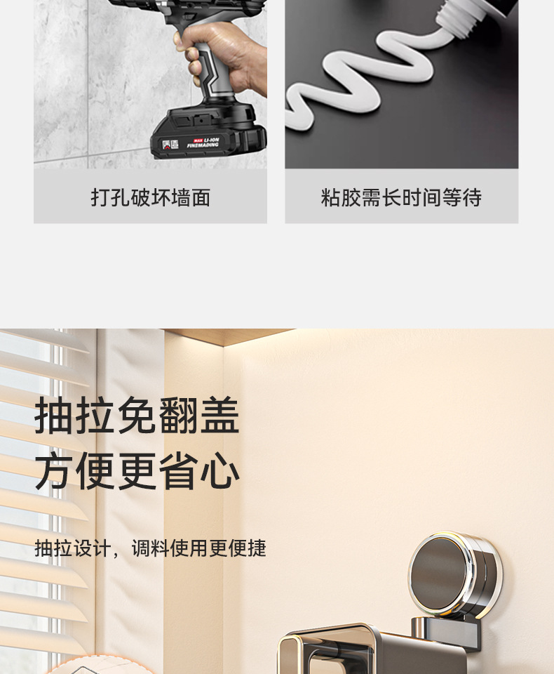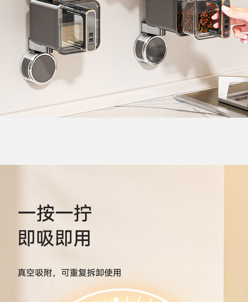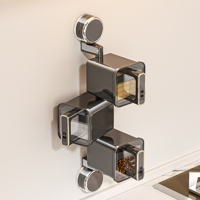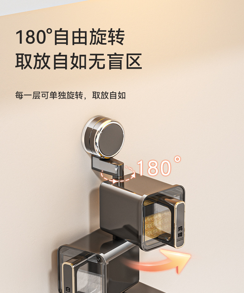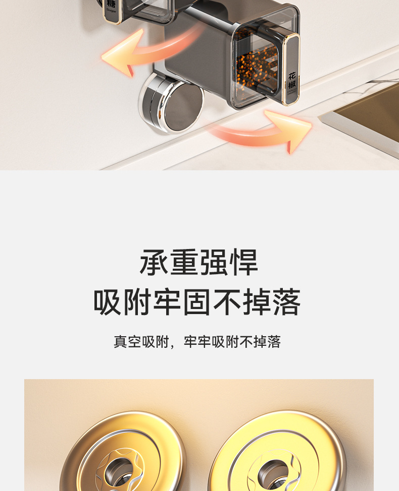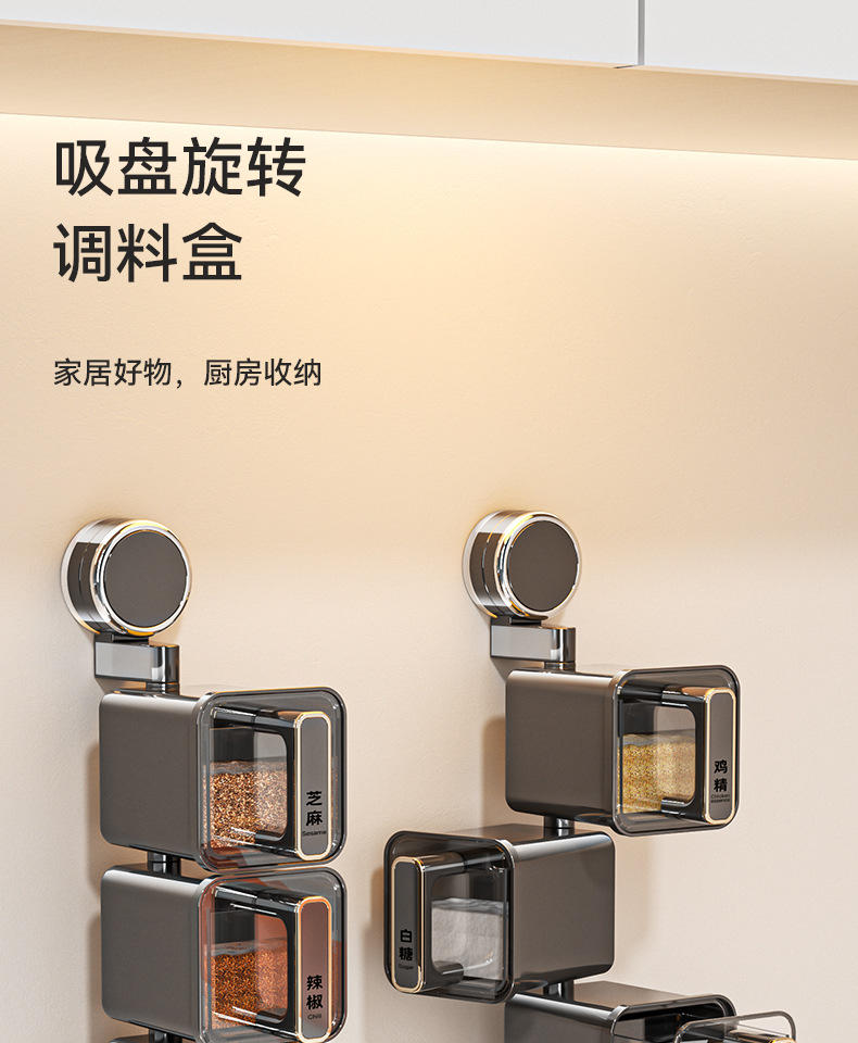 吸盘调料盒厨房家用密封防潮调料罐壁挂式旋转香料调味料收纳神器