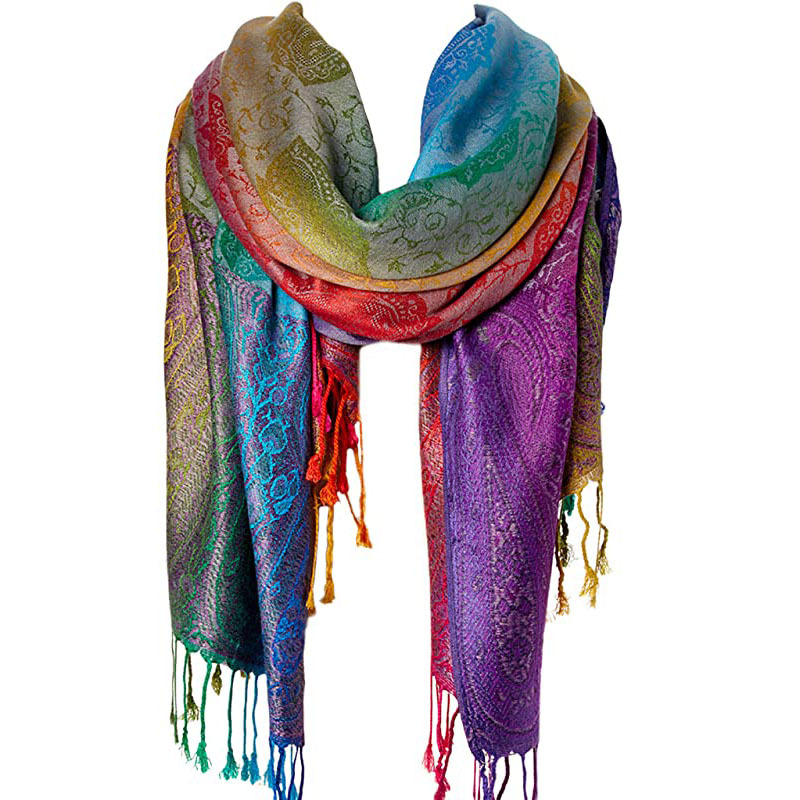 民族风春秋混搭围巾两用提花彩色腰果长巾旅游拍照披肩女包头巾