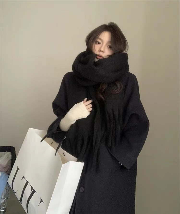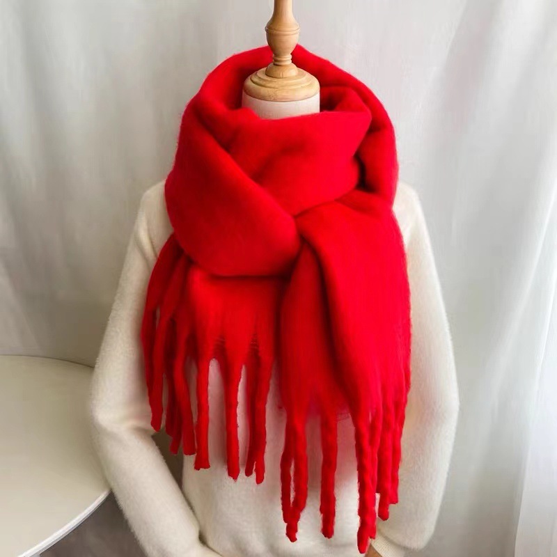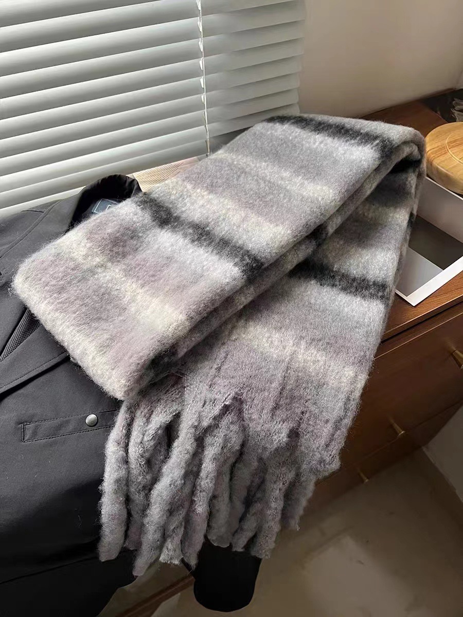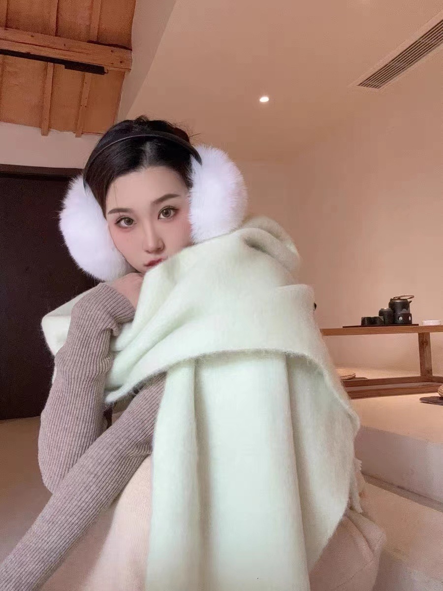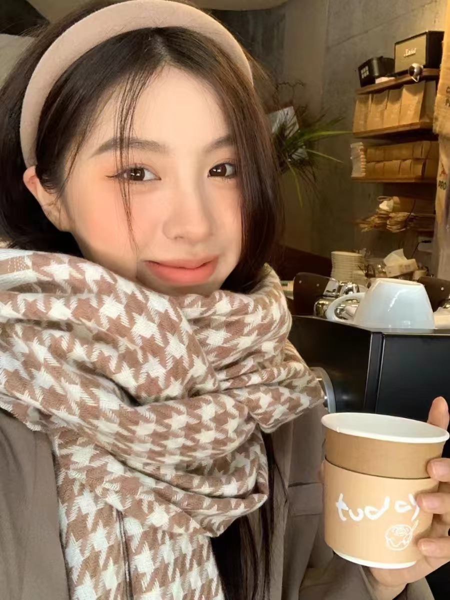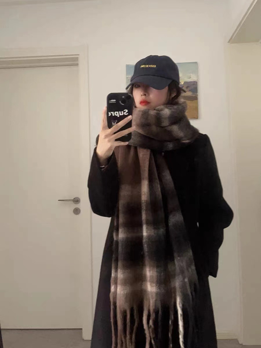 美拉德高级氛围感围巾女冬季2024新款韩版百搭加厚马海毛绒围脖秋
