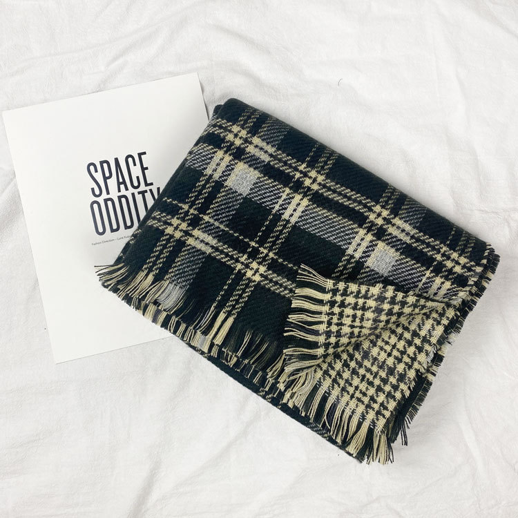 2024韩国东大门双面格子围巾保暖复古圣诞围巾女秋冬季仿羊绒ins