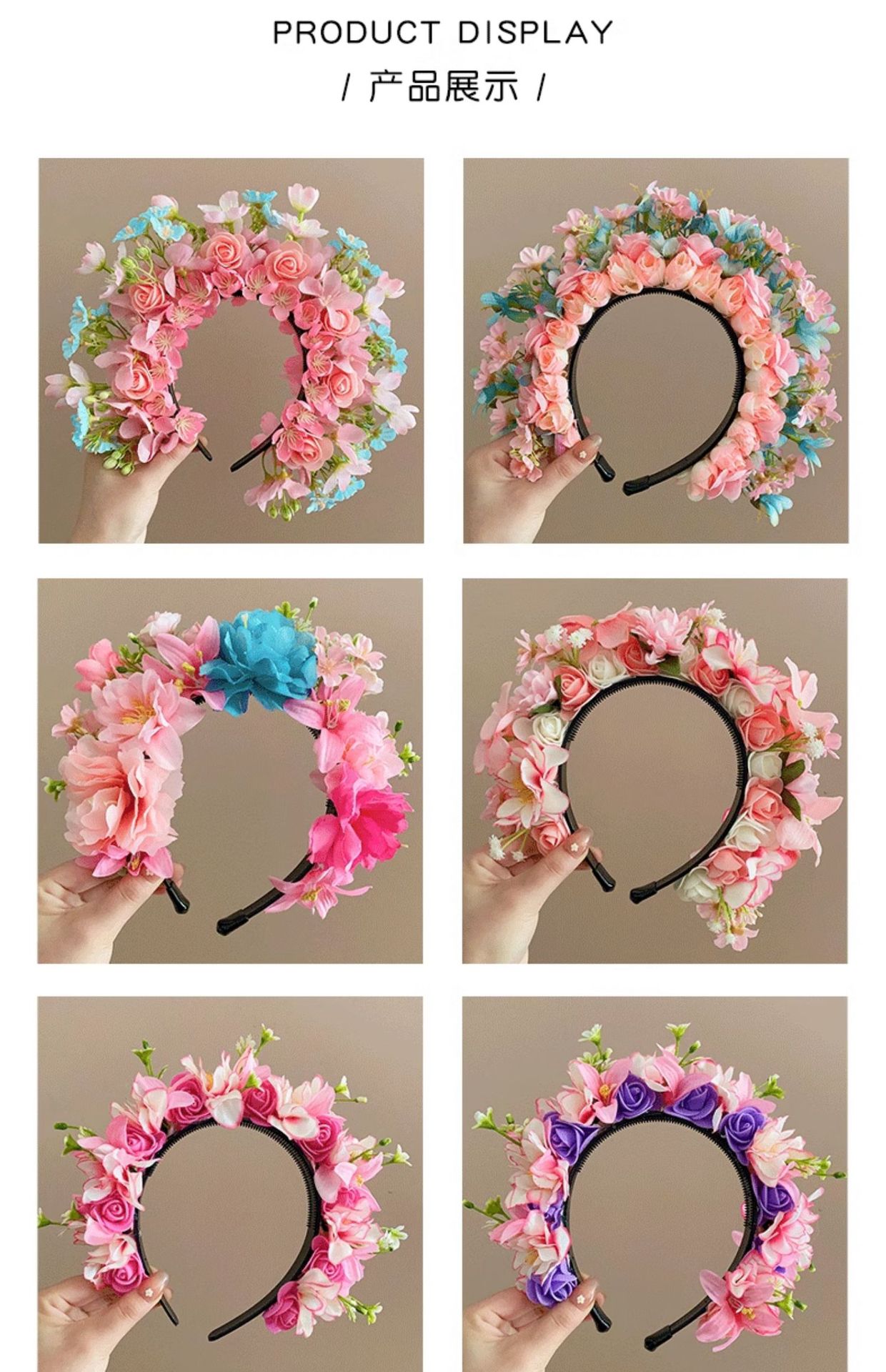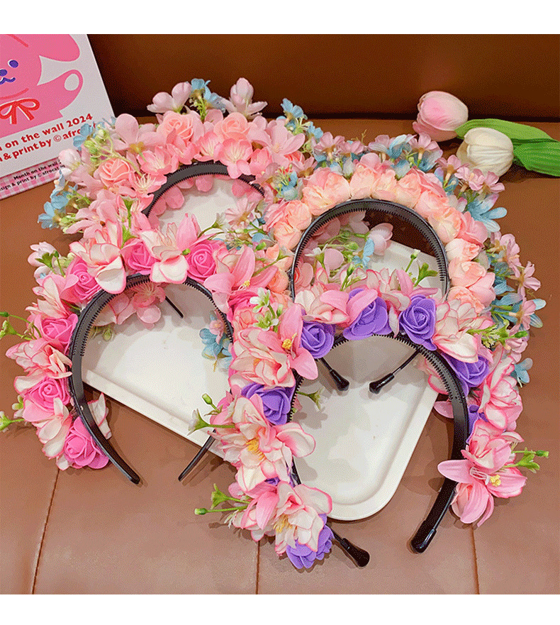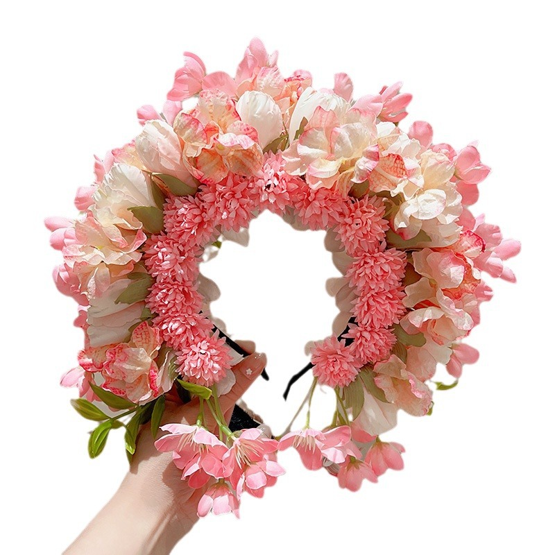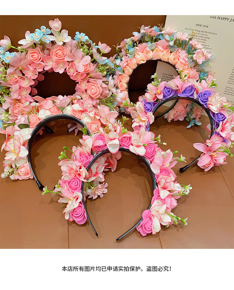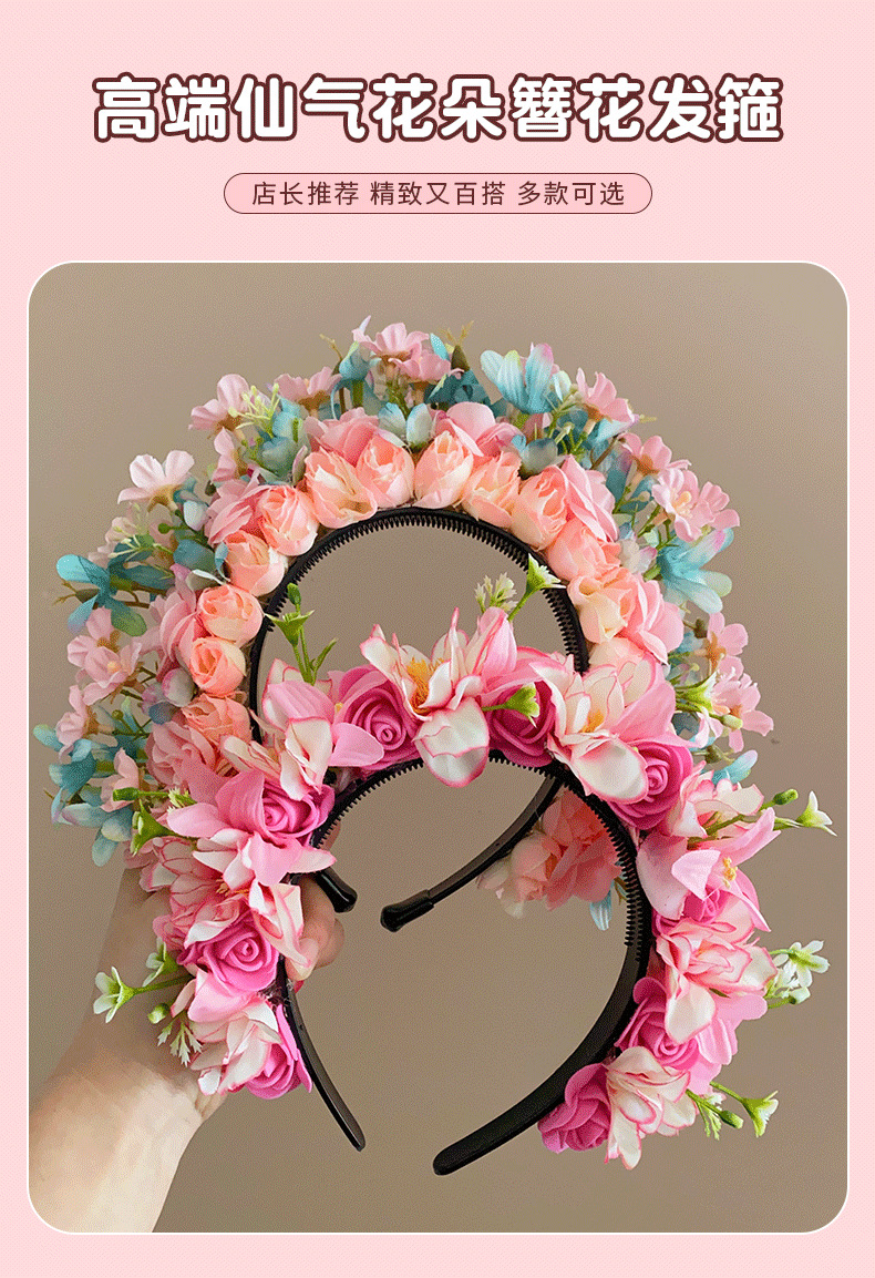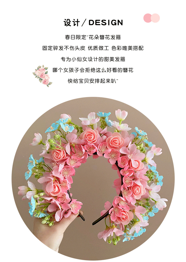 儿童簪花发箍女孩中国风花朵花环头箍宝宝民族风汉服头饰女童发饰