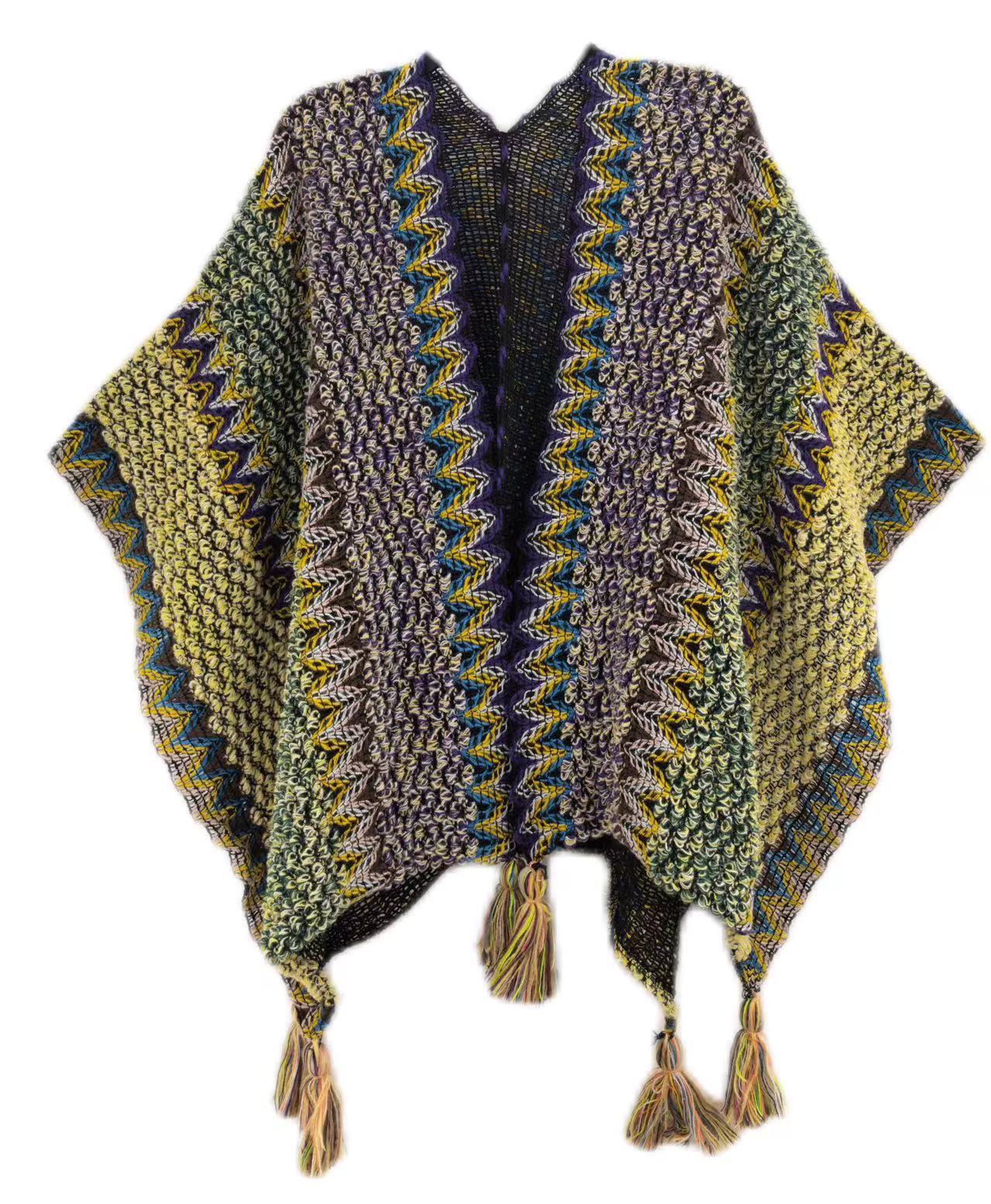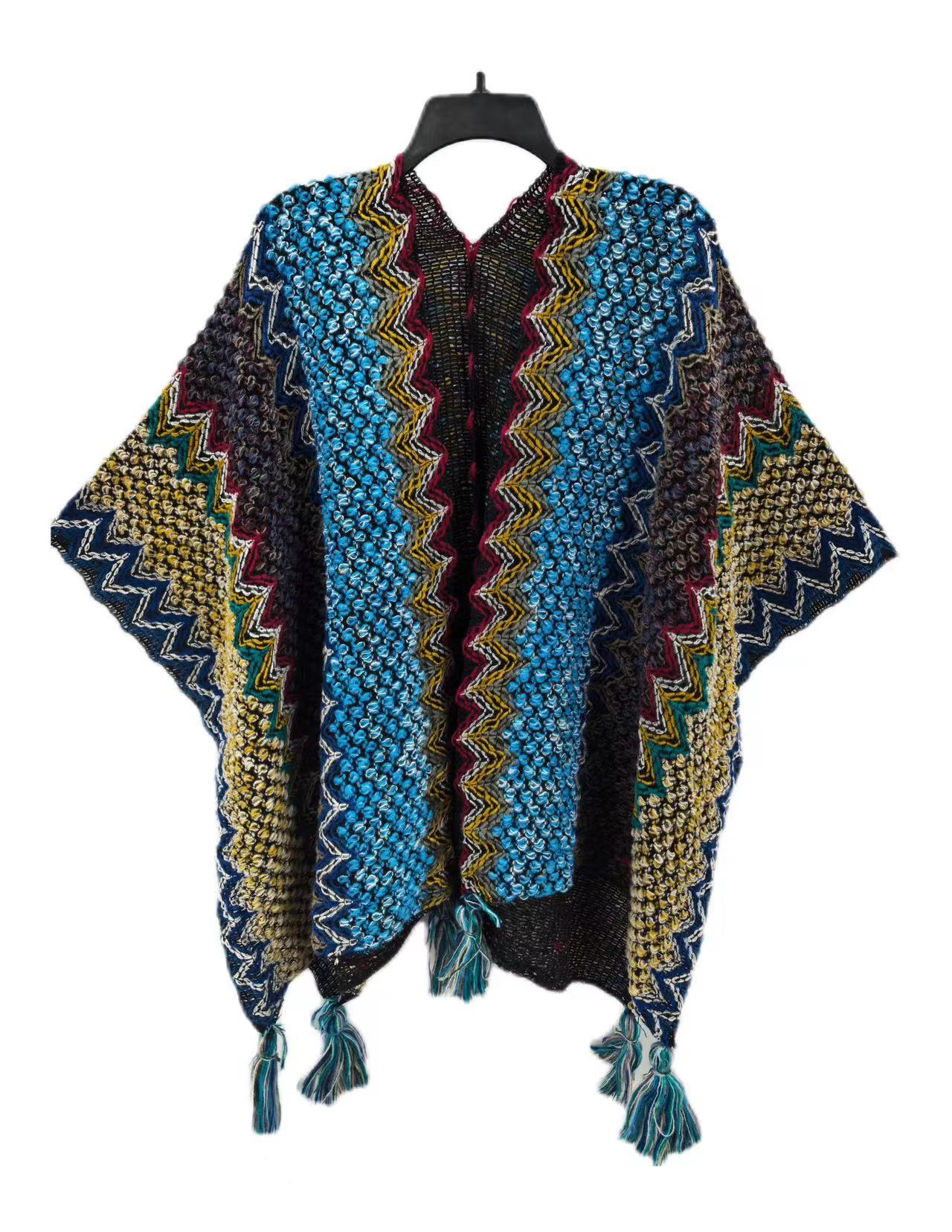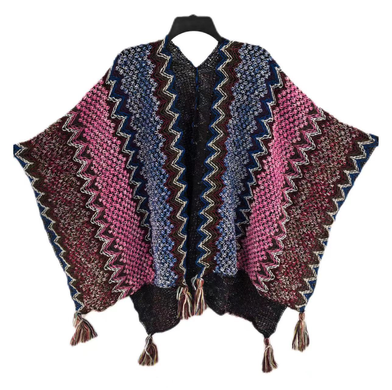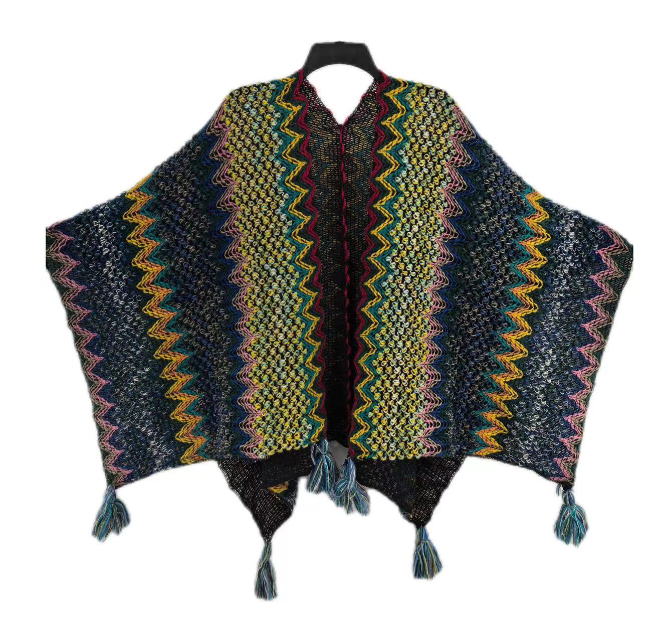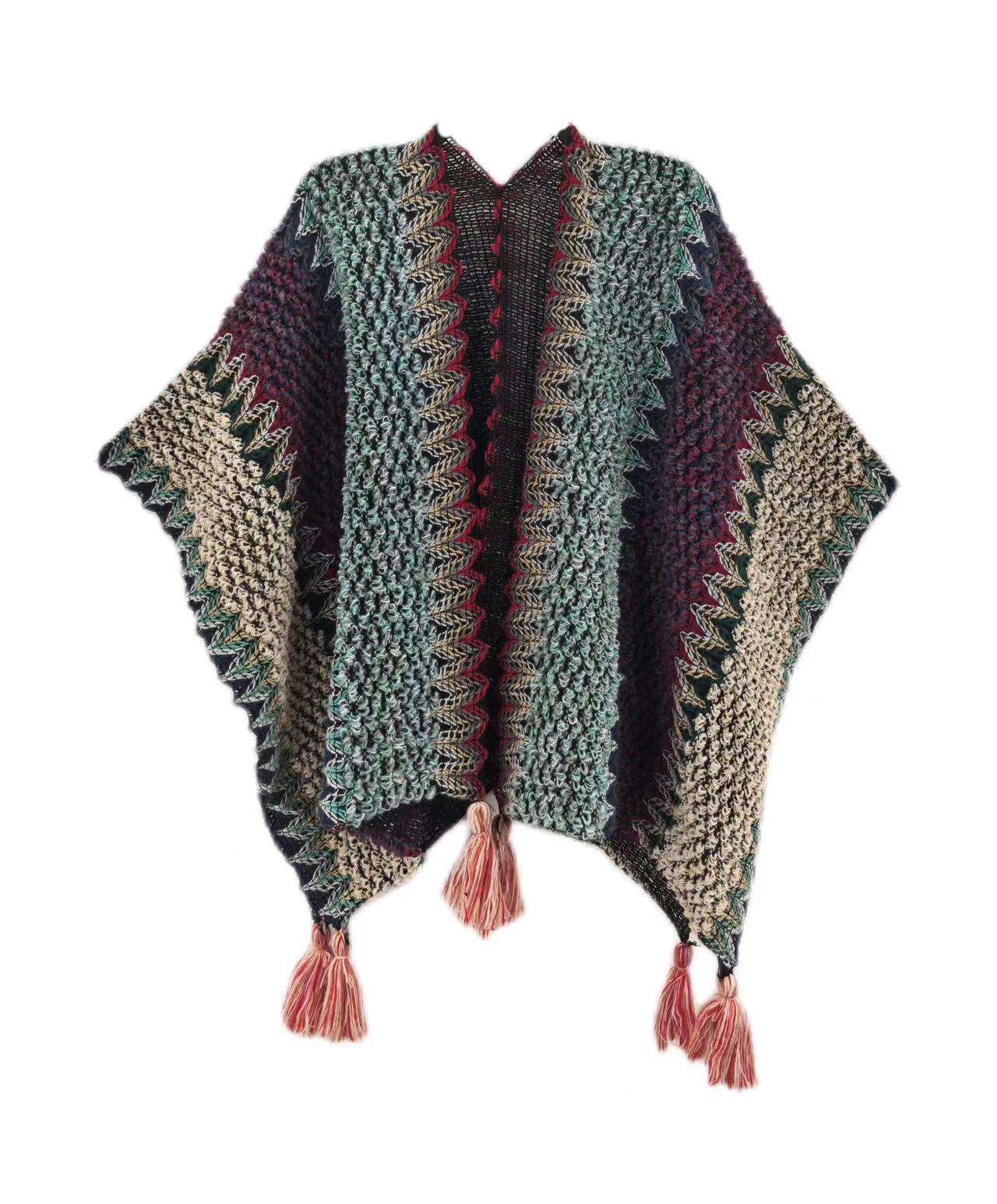 云南丽江旅游外搭针织披肩民族风复古斗篷披风流苏围巾度假穿搭女
