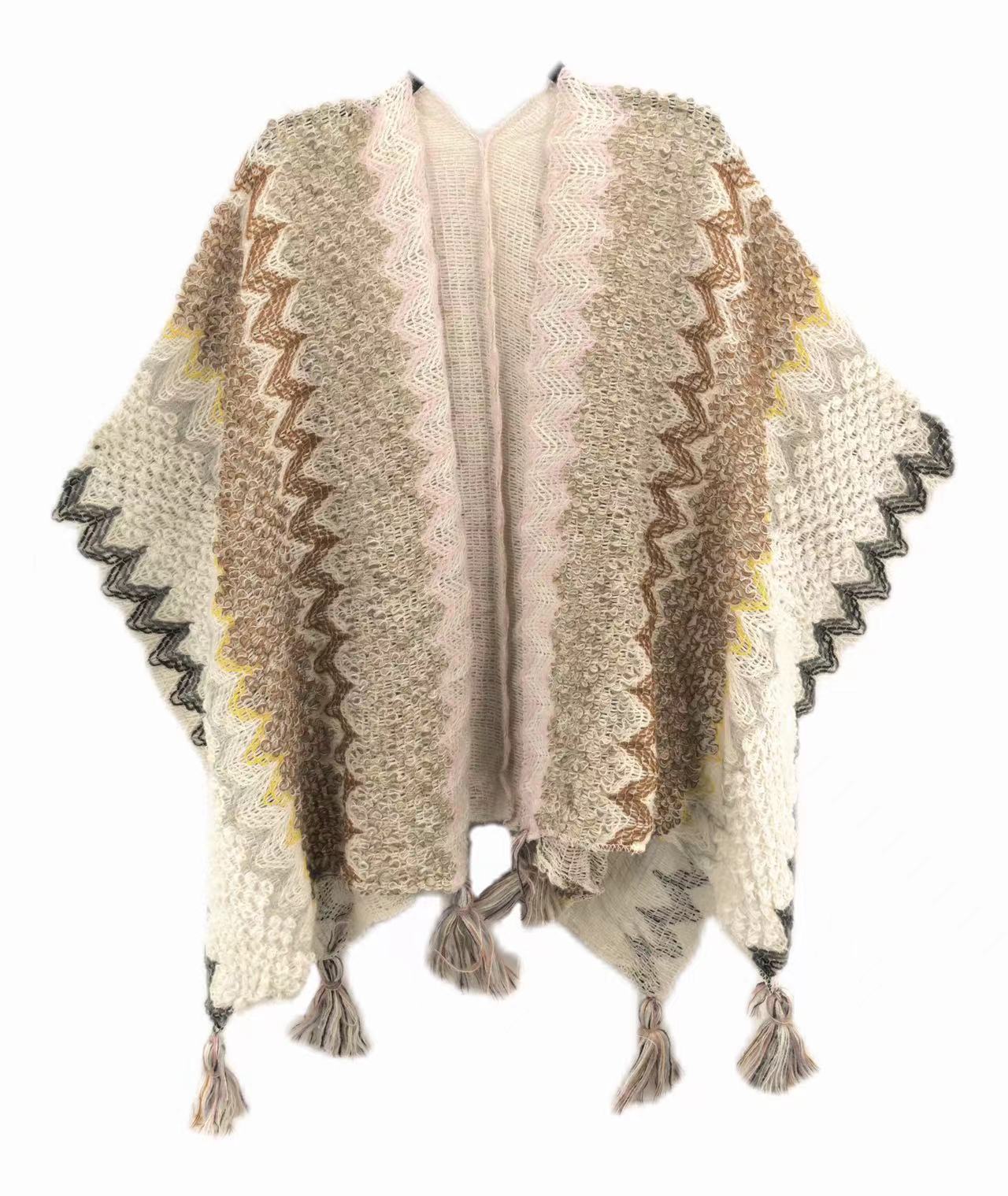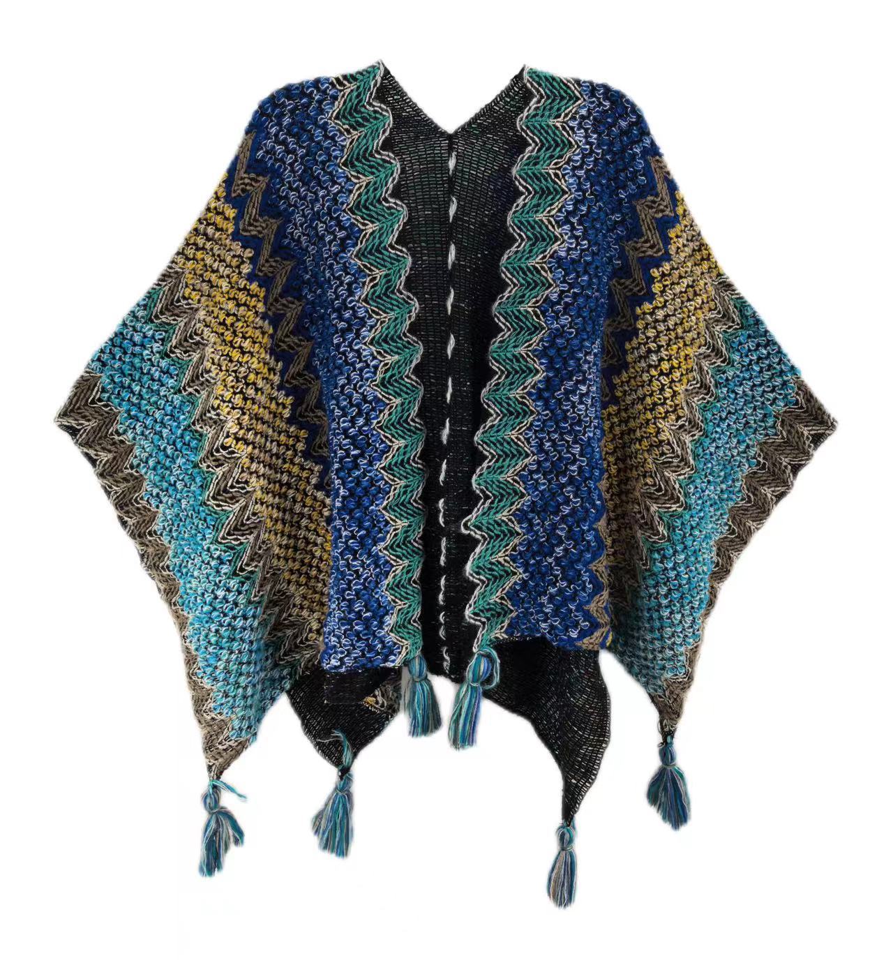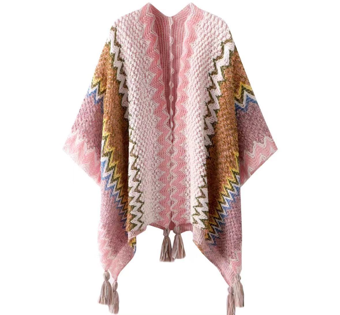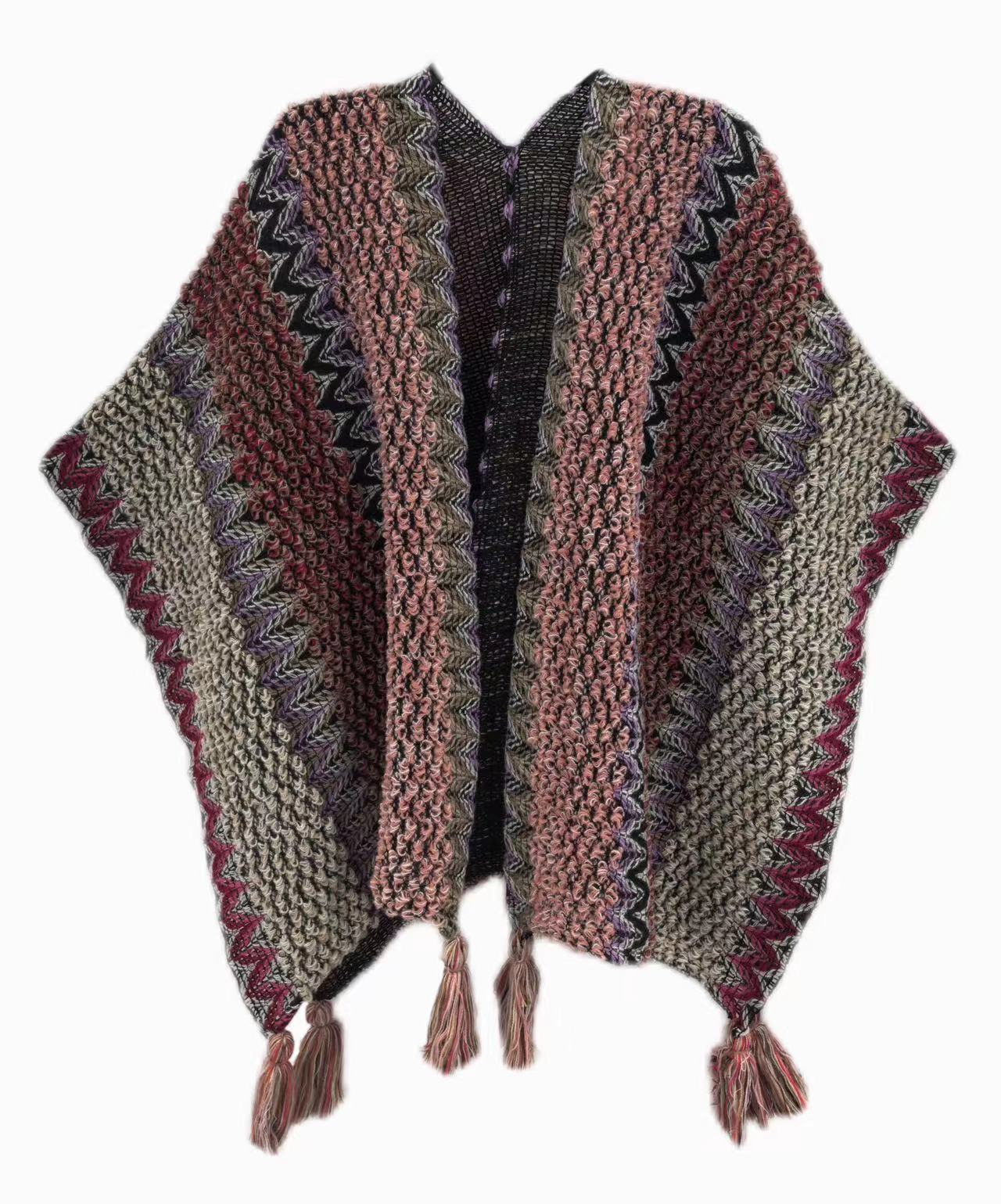 云南丽江旅游外搭针织披肩民族风复古斗篷披风流苏围巾度假穿搭女