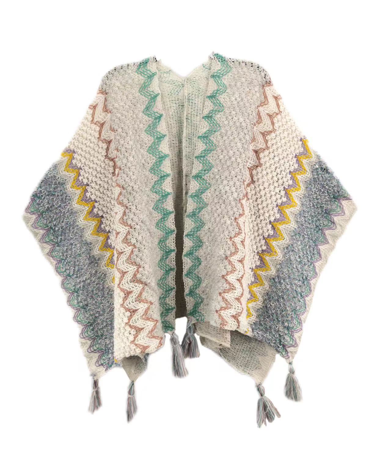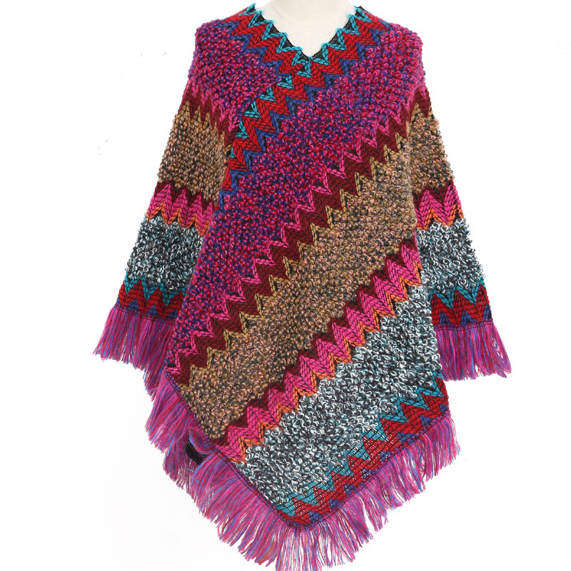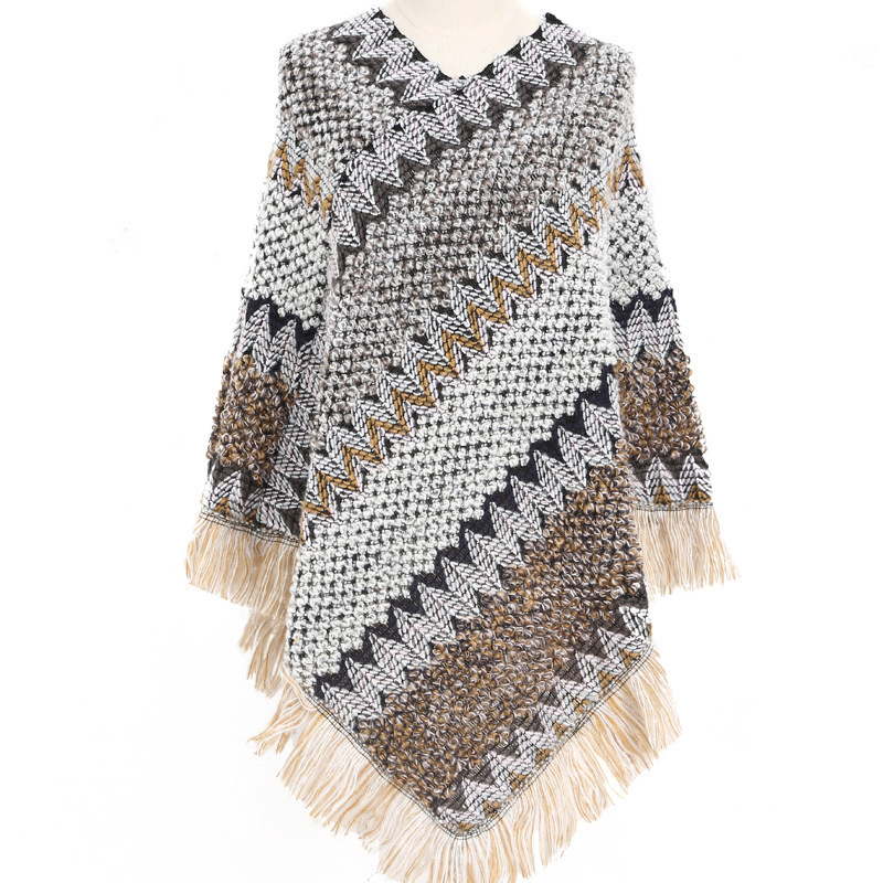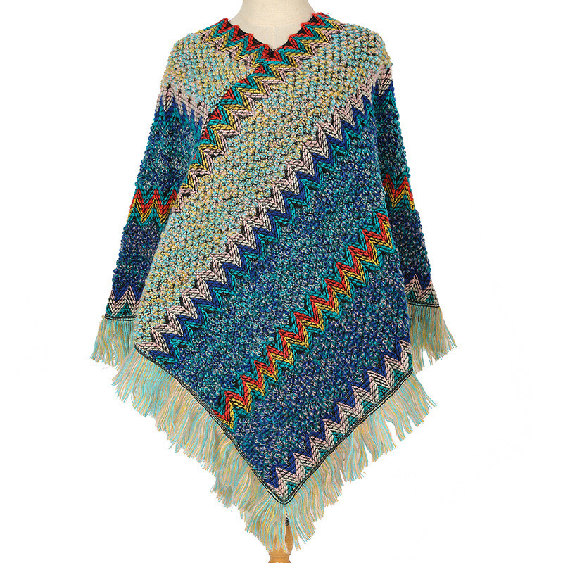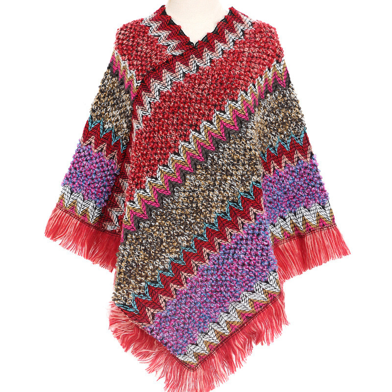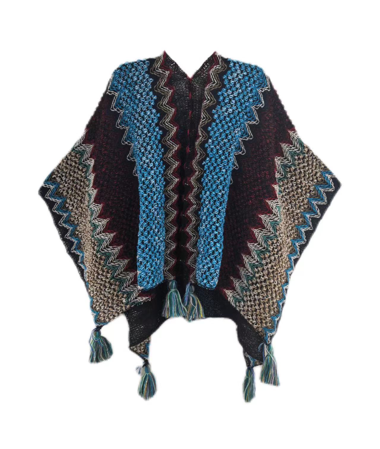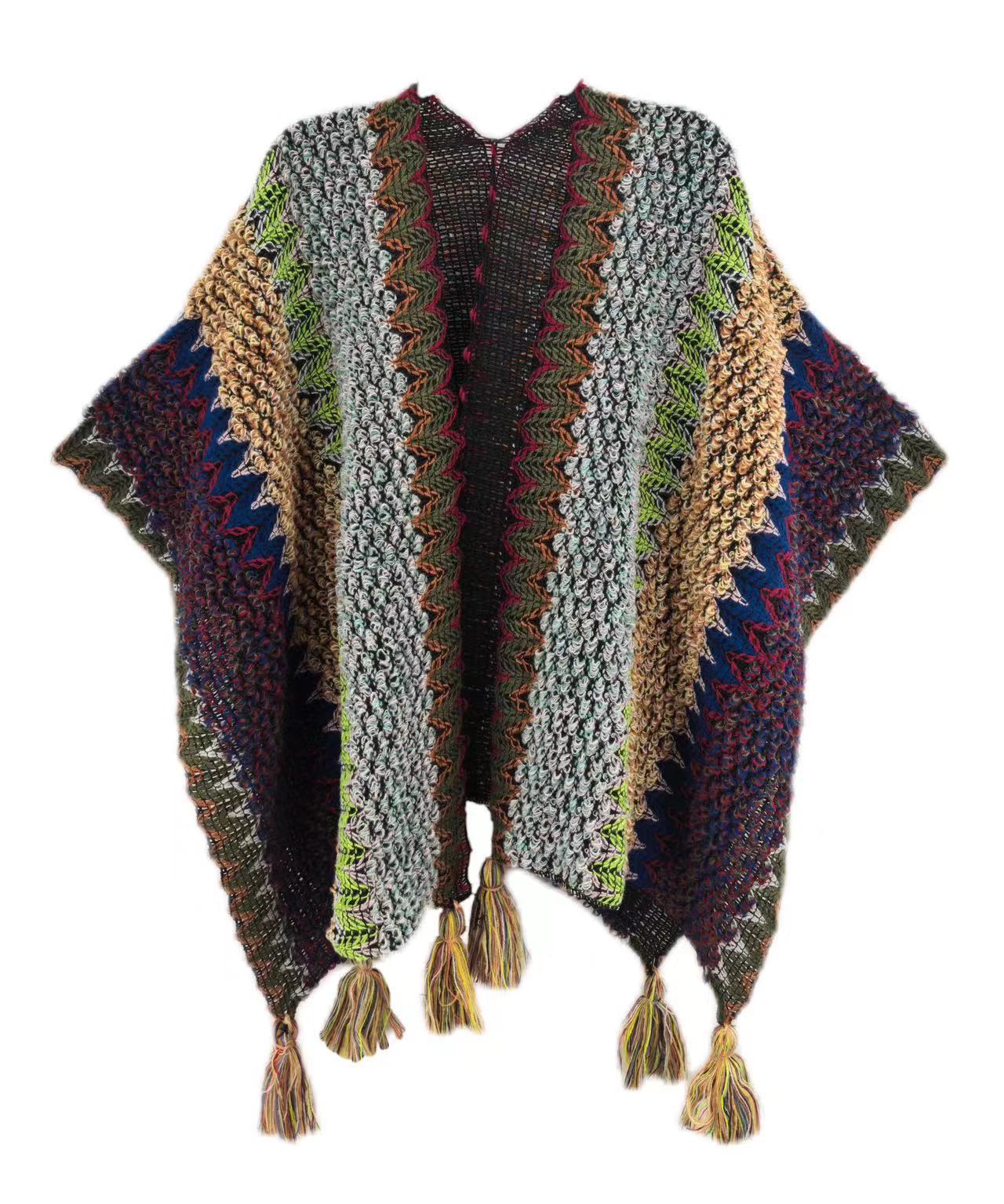 云南丽江旅游外搭针织披肩民族风复古斗篷披风流苏围巾度假穿搭女