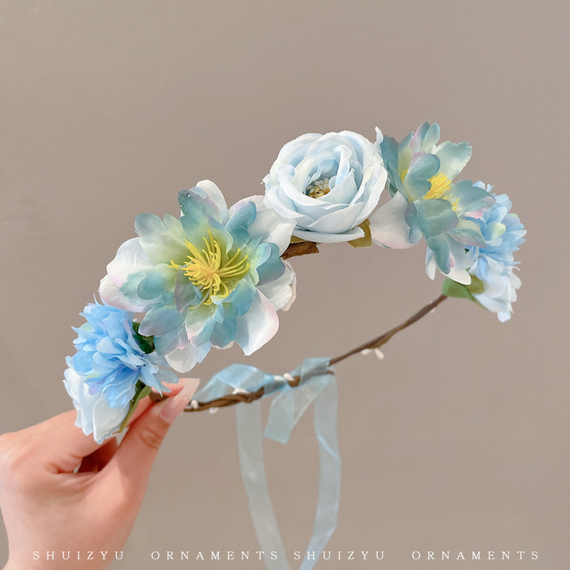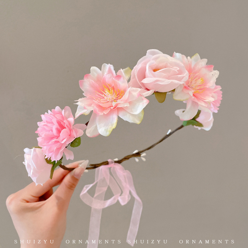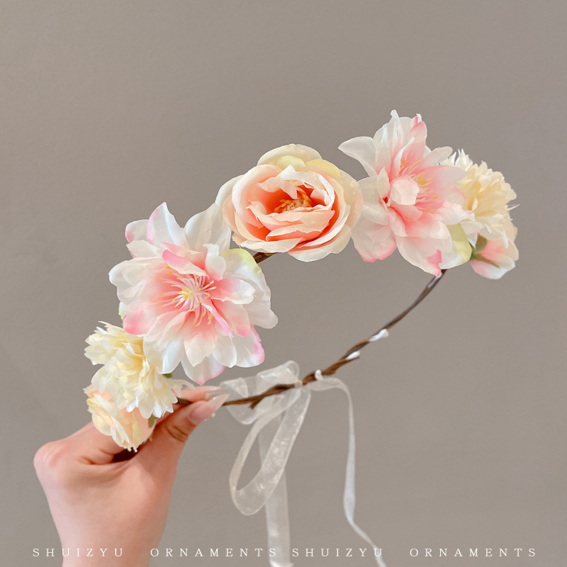 仿真花泉州浔埔簪花头箍女民族风汉服花围发箍高颜值拍照花环头饰