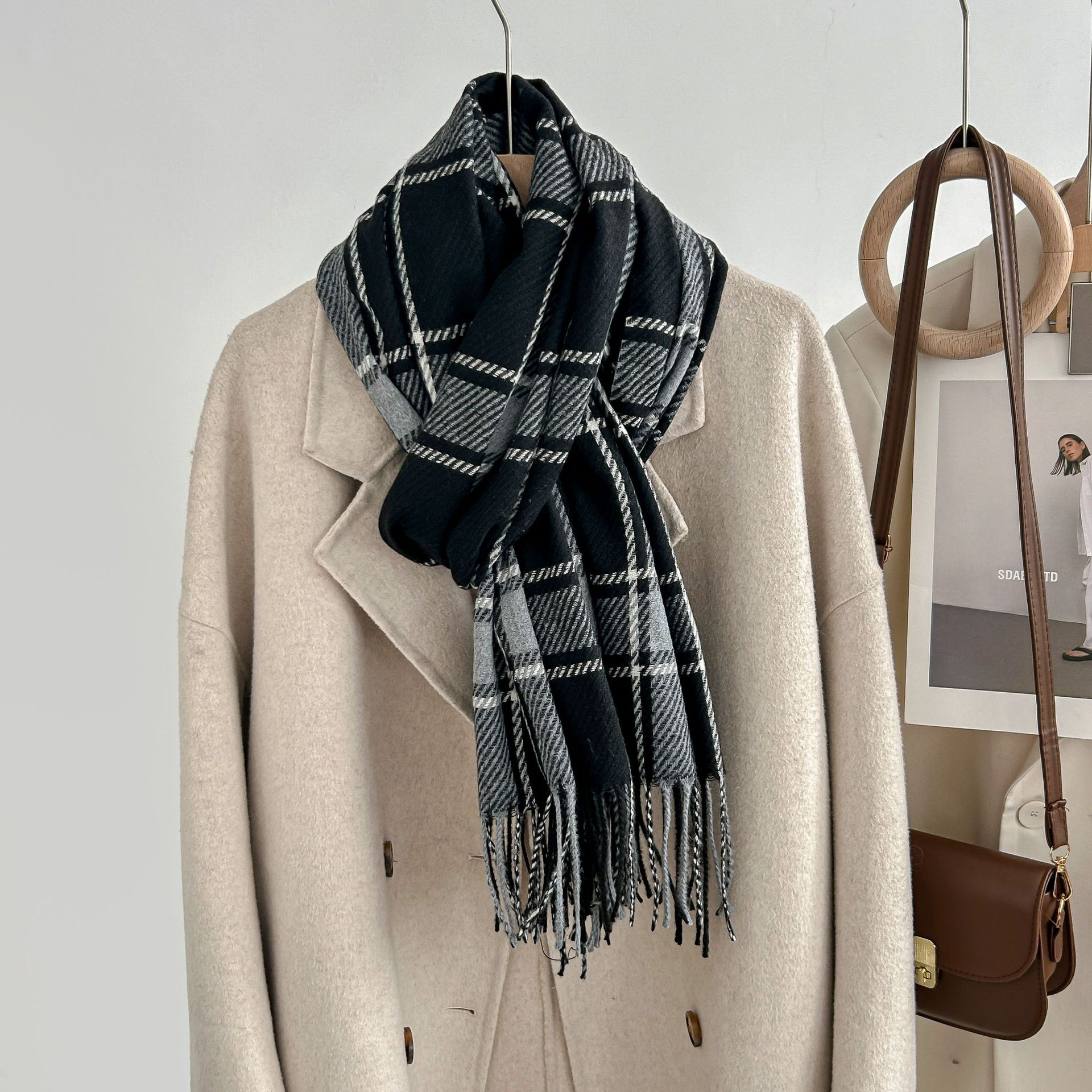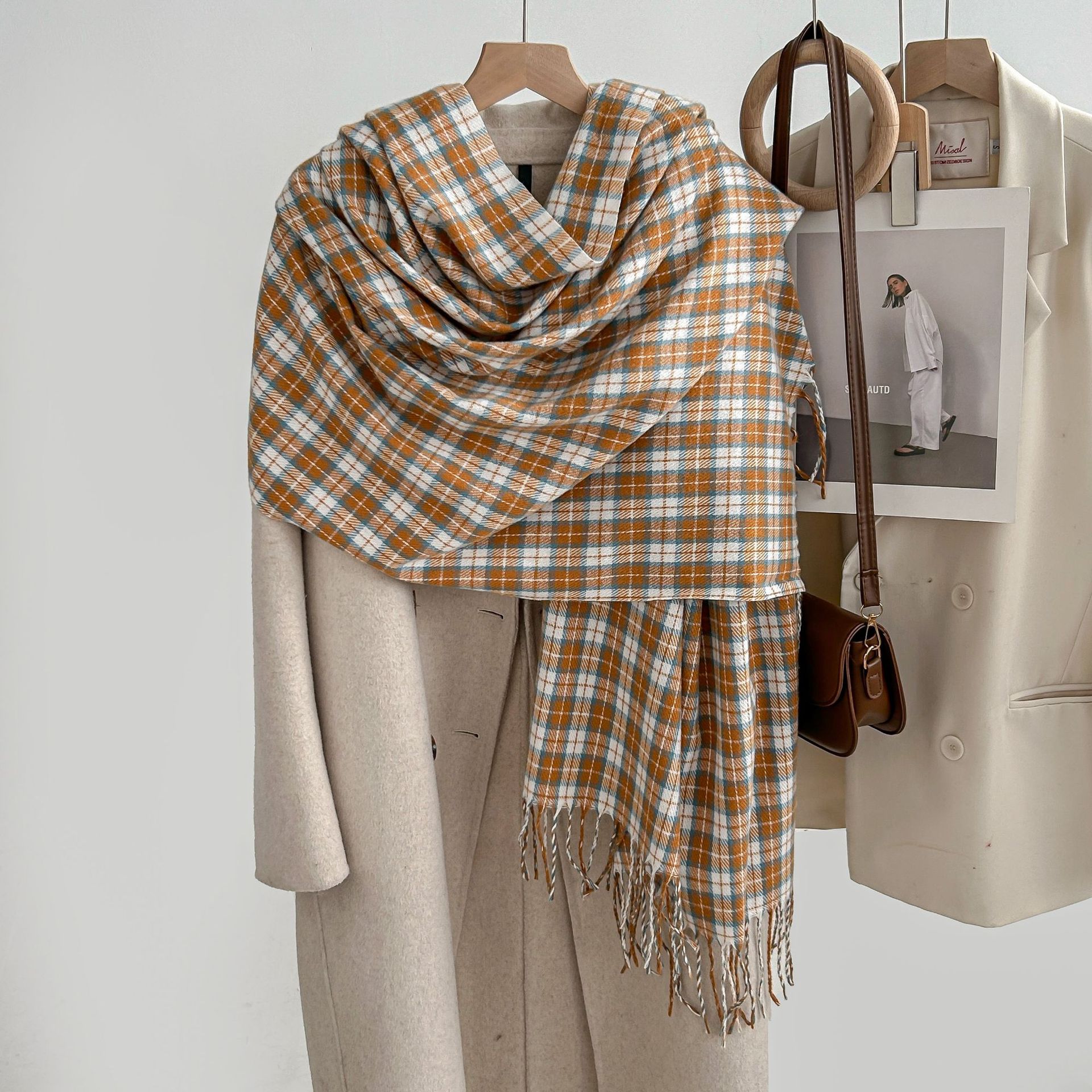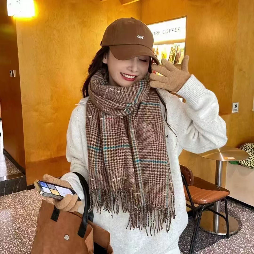 围巾女批发冬季学生新款格子仿羊绒保暖流苏披肩加厚韩版时尚围脖