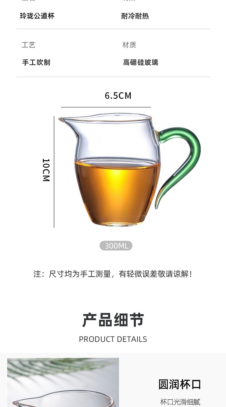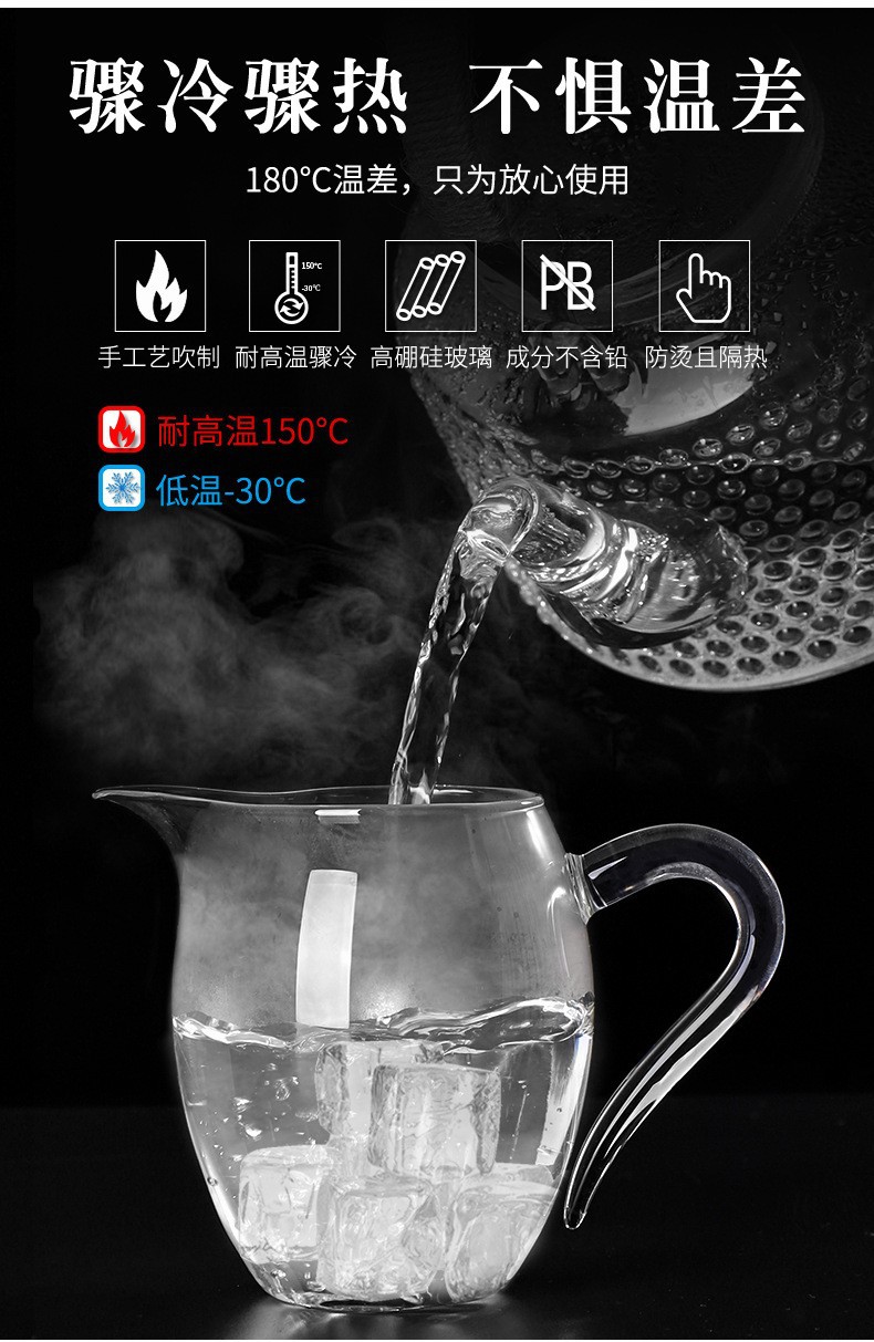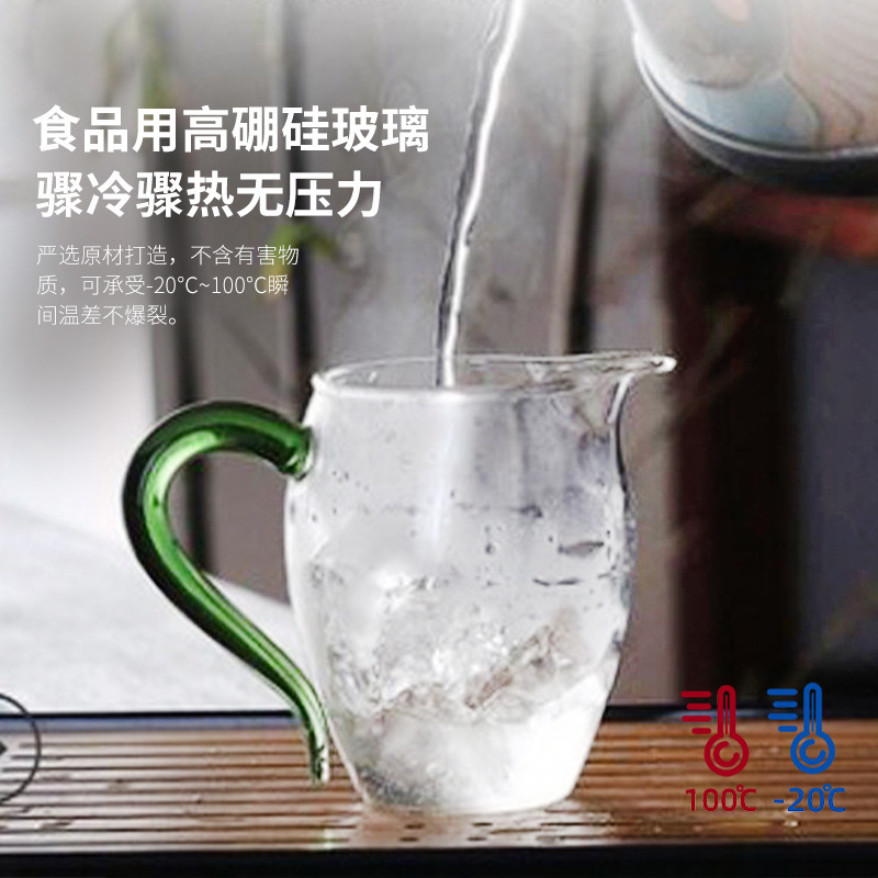 批发高硼硅玻璃公道杯加厚耐高温茶海杯公杯家用功夫茶具带把茶杯