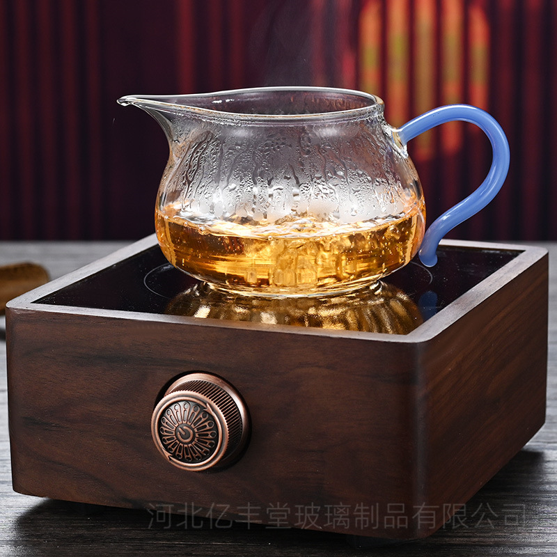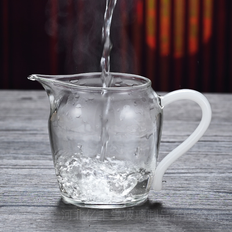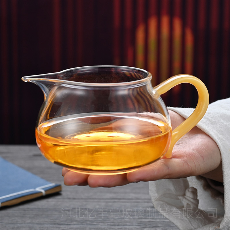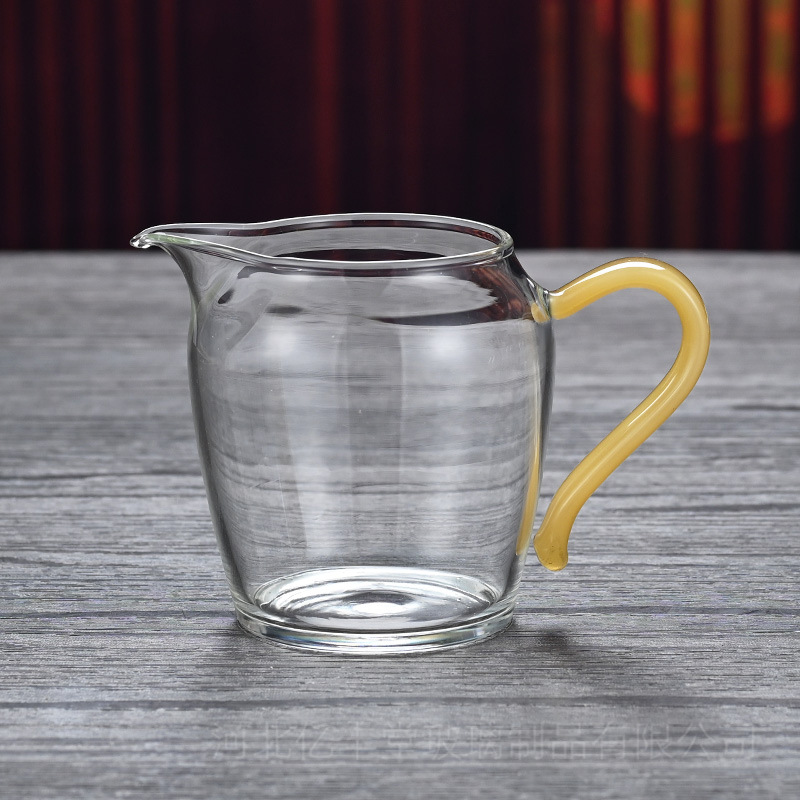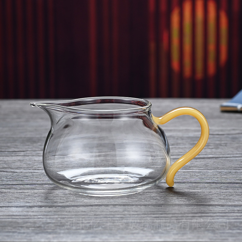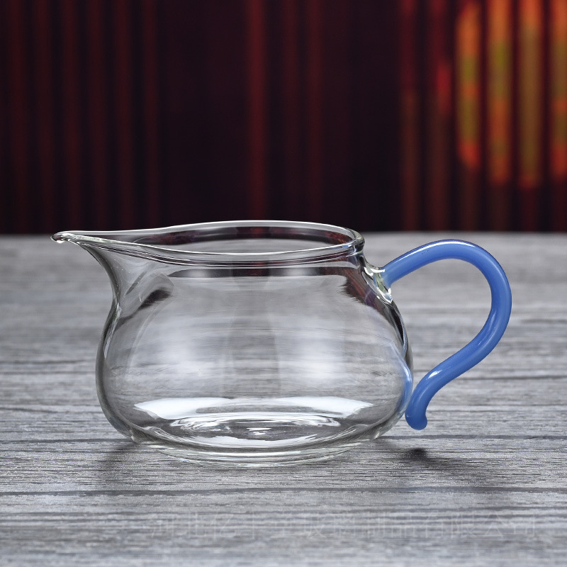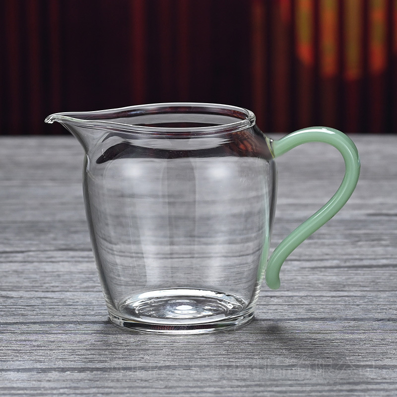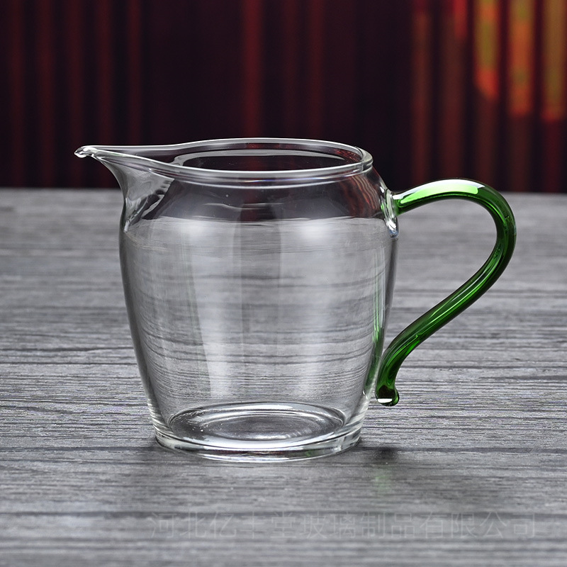 高硼硅透明玻璃公道杯彩色把手茶海分茶器 功夫玻璃尖嘴匀杯批发