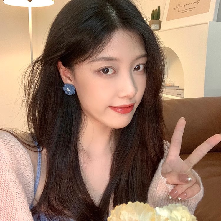 蓝色花朵耳环蚊香盘耳夹无洞高级感小众复古气质轻奢耳钉韩系耳饰