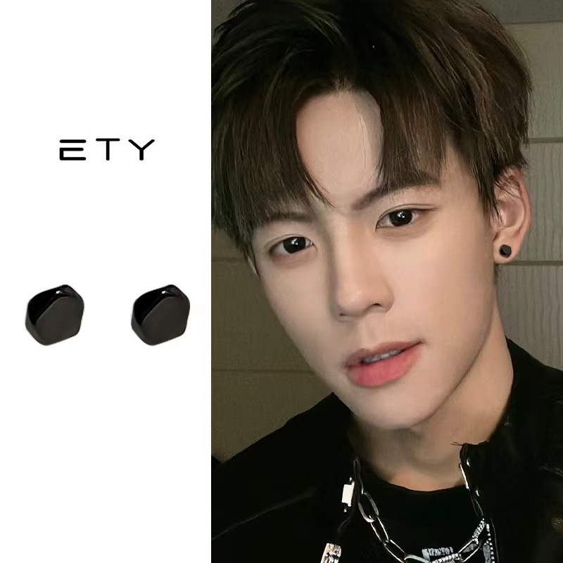 菱形磁吸耳夹无耳洞吸铁石耳环男潮个性单只耳饰无孔无洞嘻哈耳钉