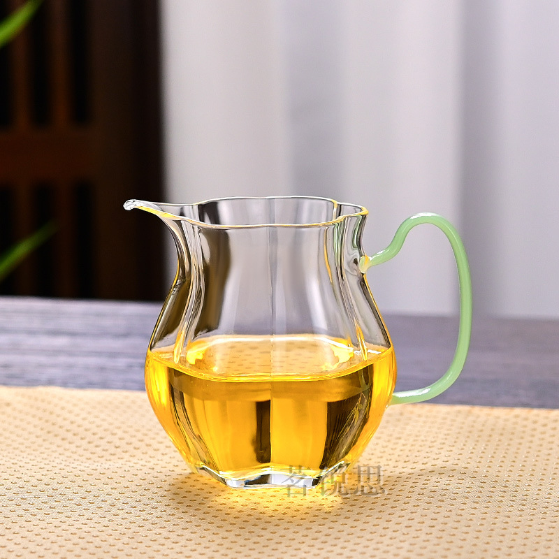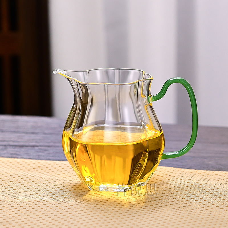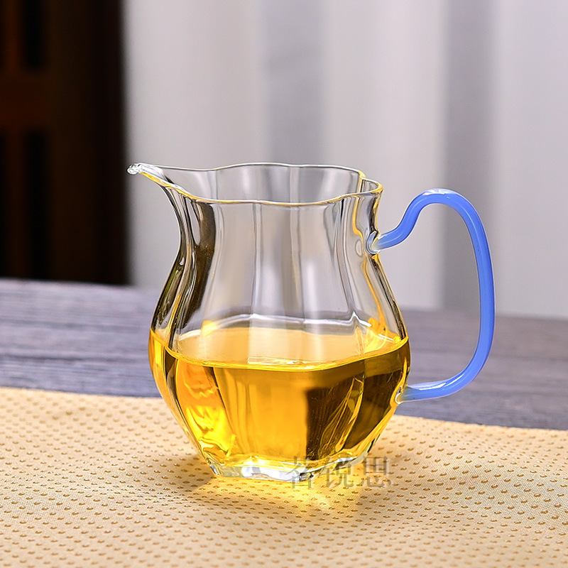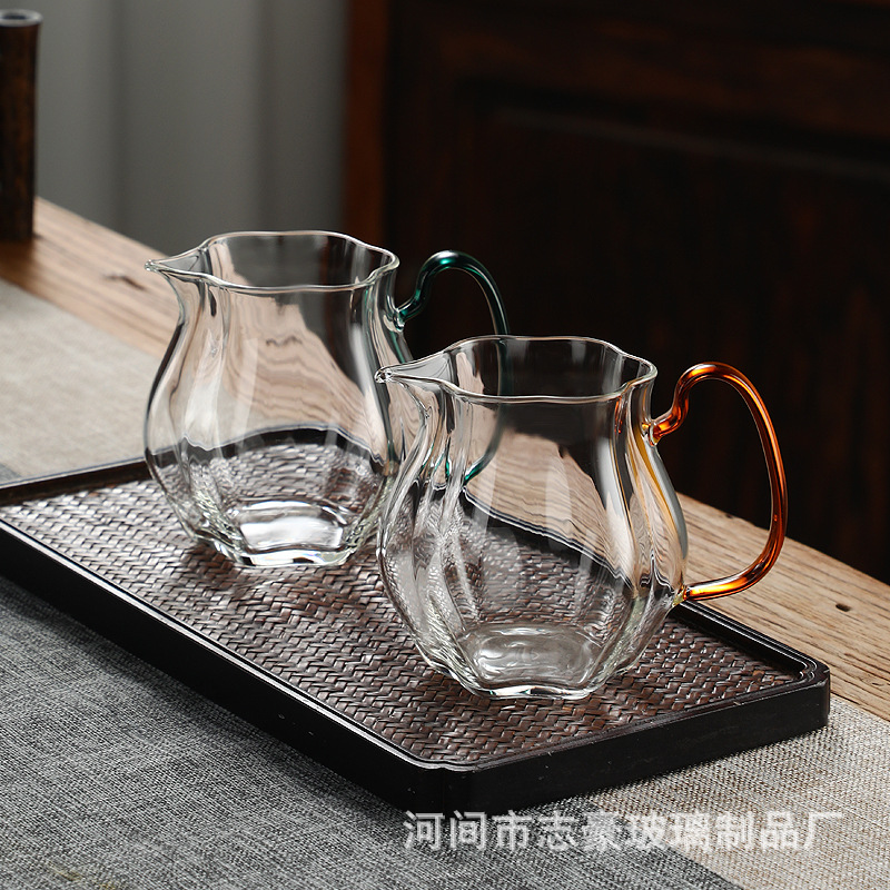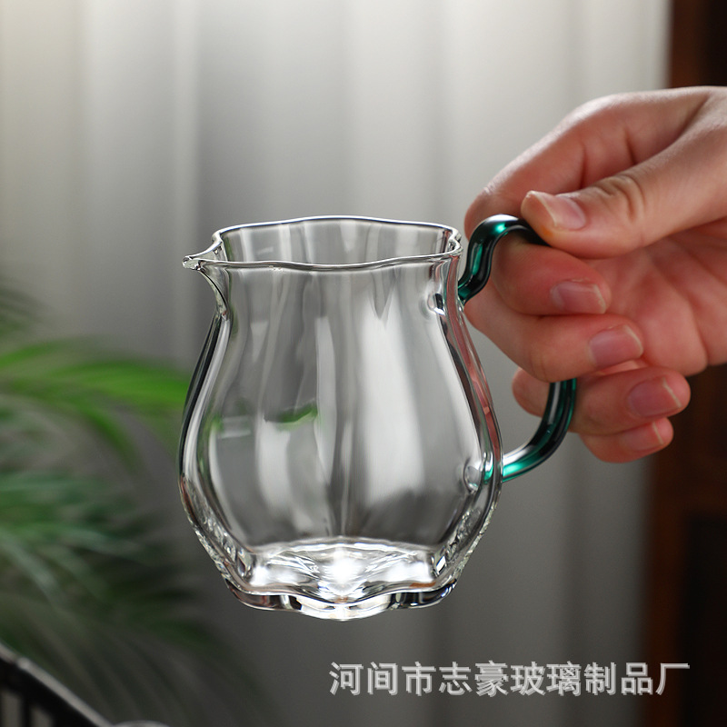 玻璃公道杯茶具日式高硼硅带柄公杯分茶器花型茶海功夫茶具配件