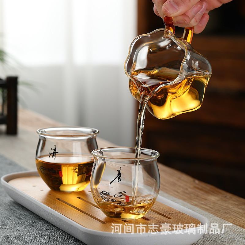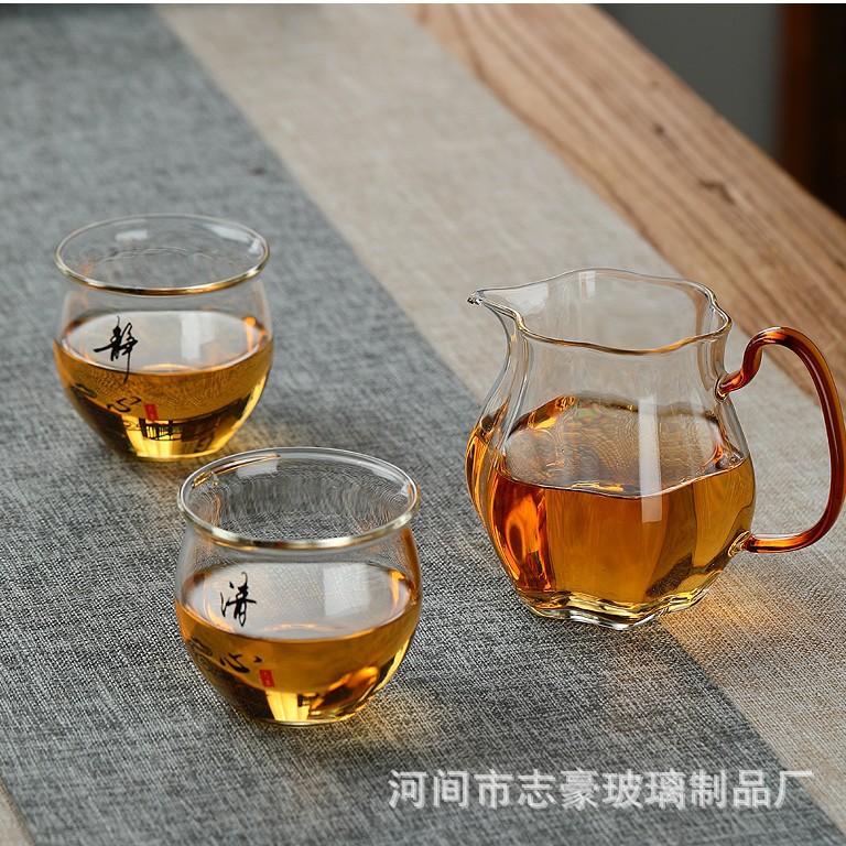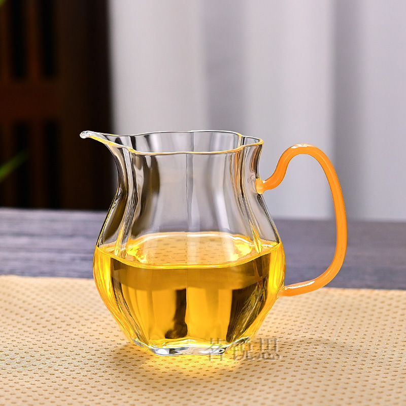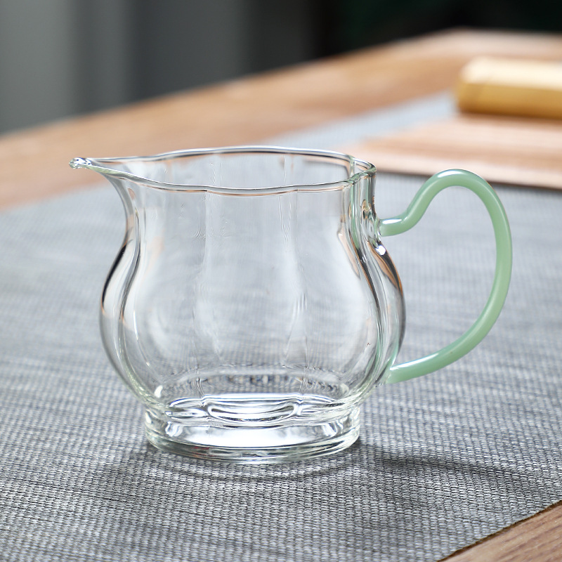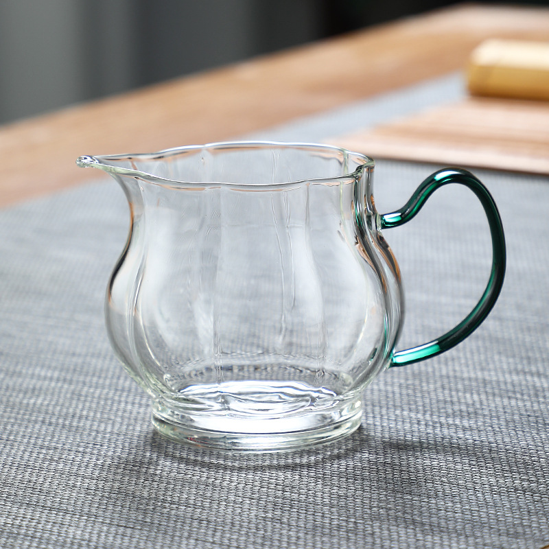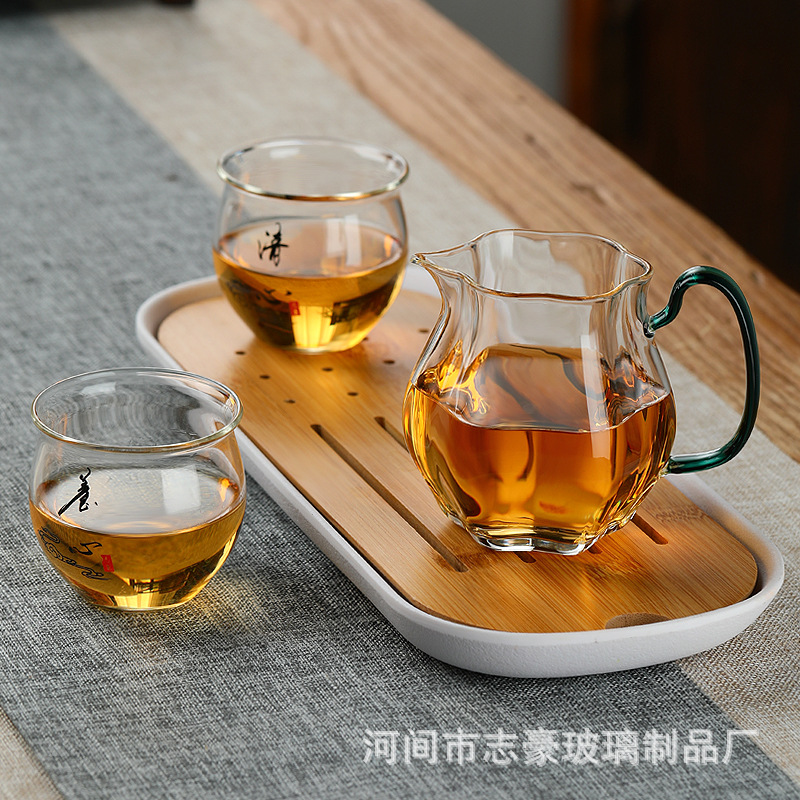 玻璃公道杯茶具日式高硼硅带柄公杯分茶器花型茶海功夫茶具配件