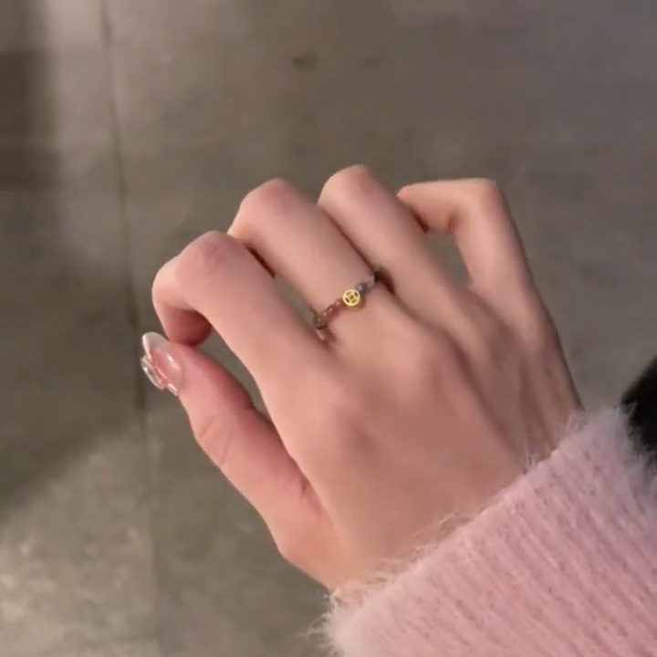 新中式彩色钱币串珠仿碧玺戒指手工编织小众高级感指环送女友礼物