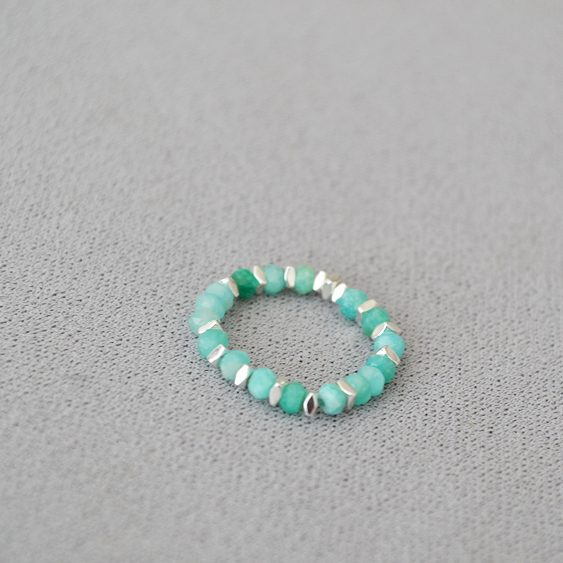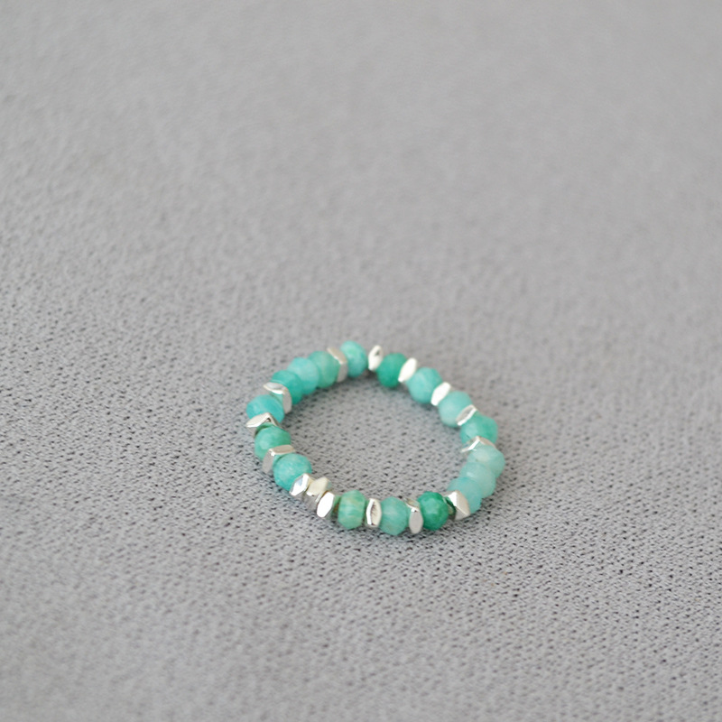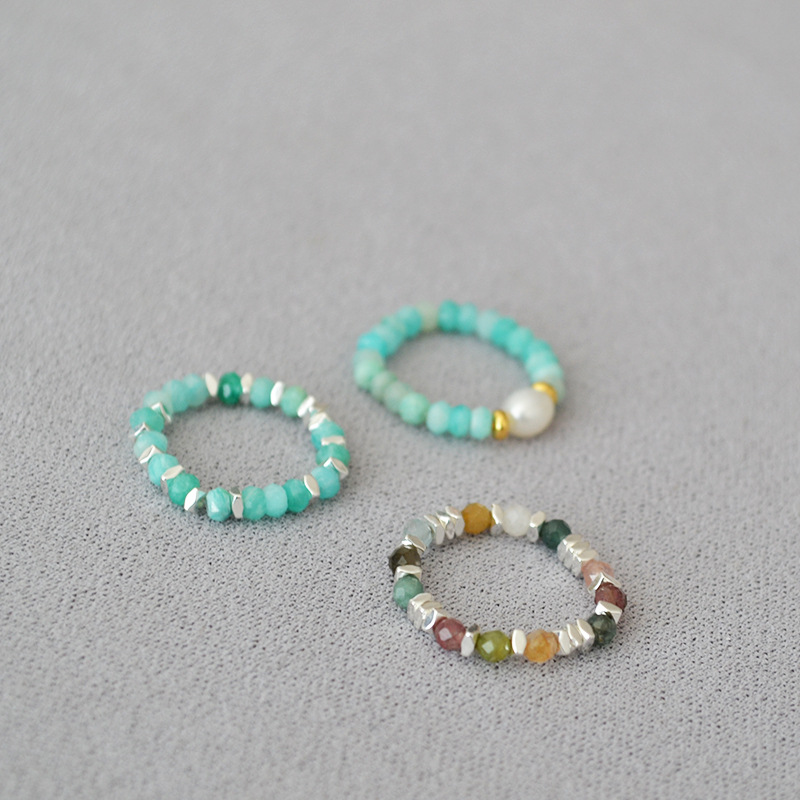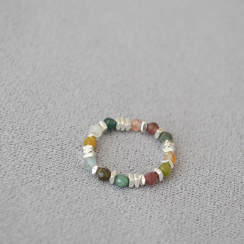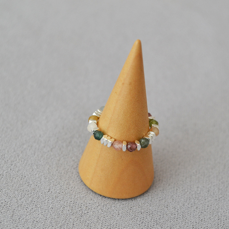夏日新款复古清凉真石天河石彩色碧玺串珠个性简约弹力戒指食指戒
