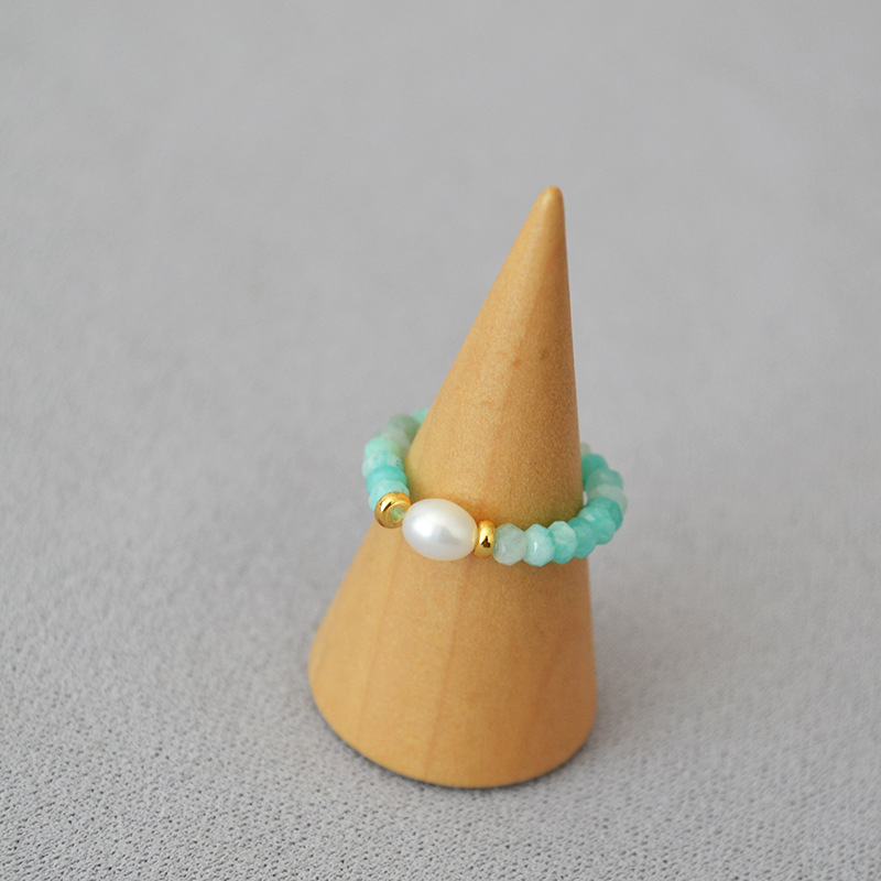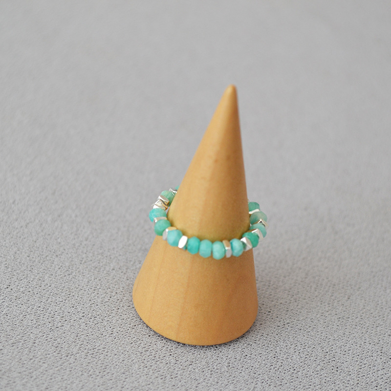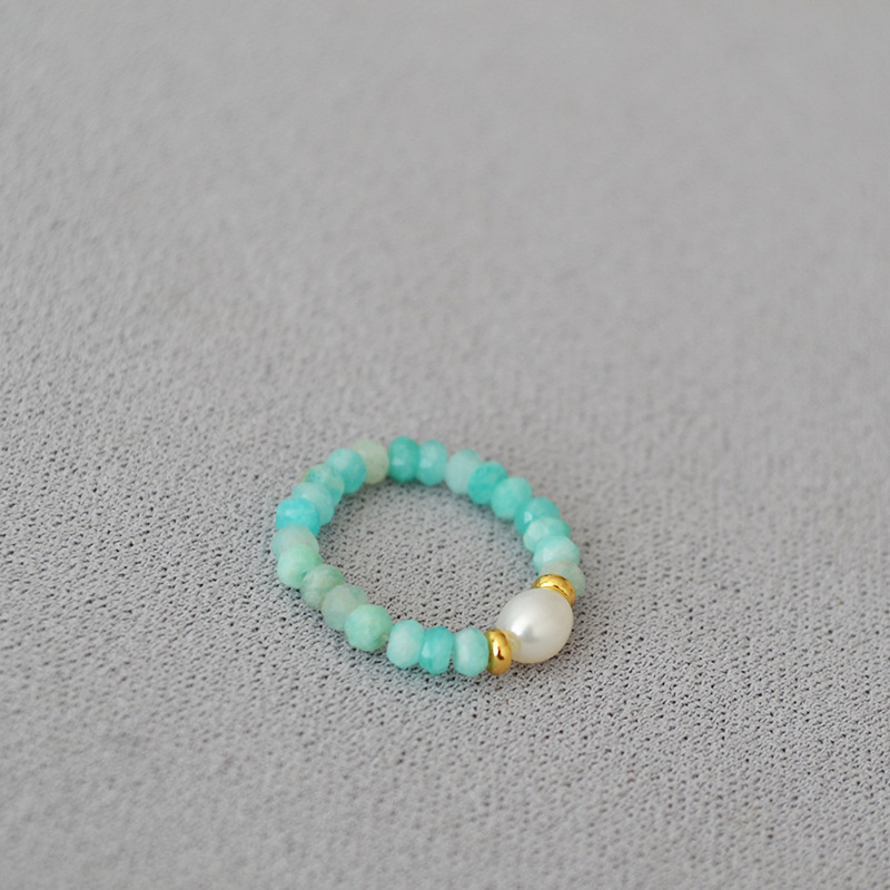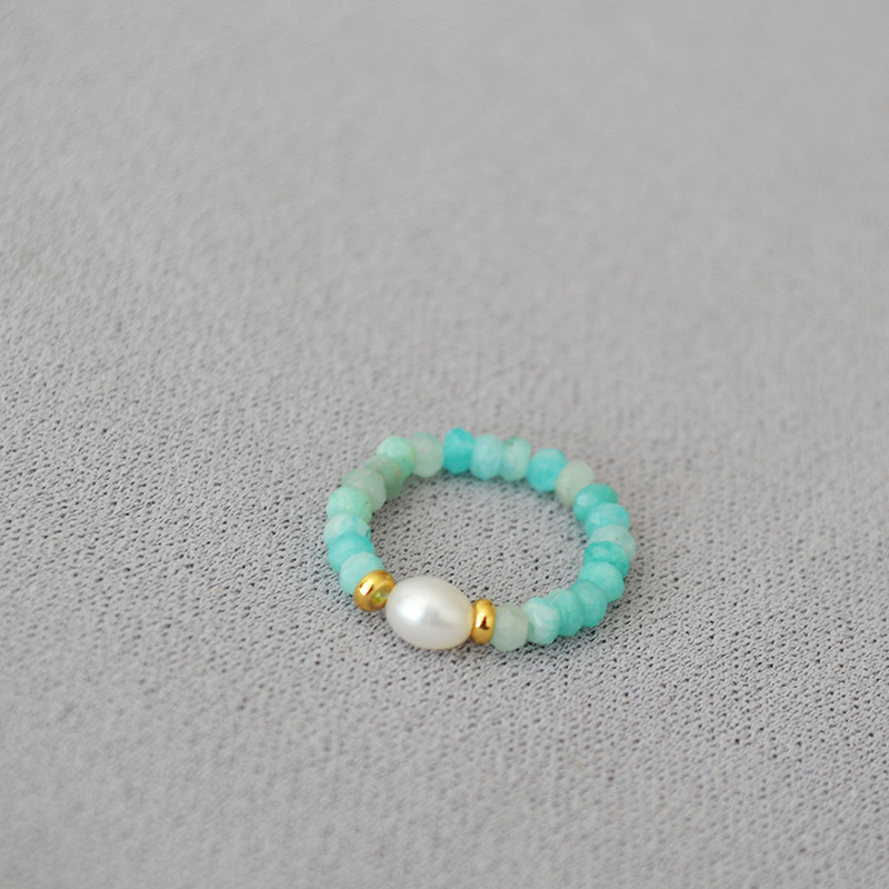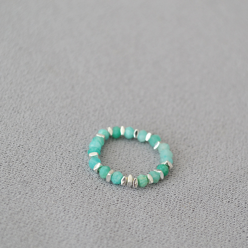 夏日新款复古清凉真石天河石彩色碧玺串珠个性简约弹力戒指食指戒