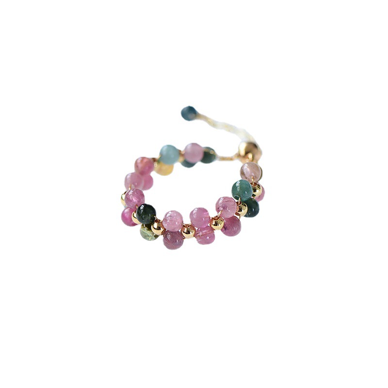 天然彩虹碧玺戒指女原石14k包金黄金西瓜彩色秋冬指环