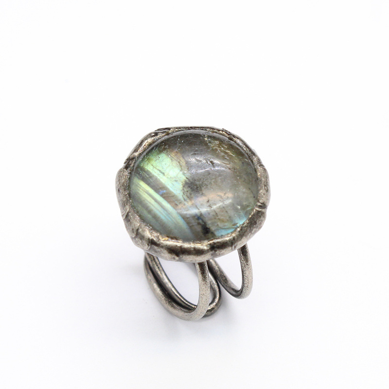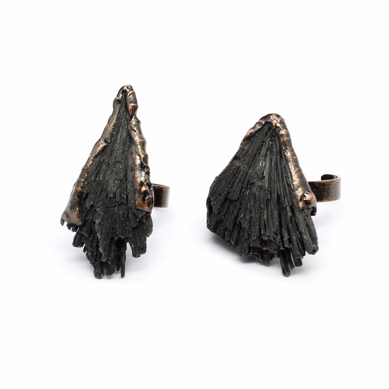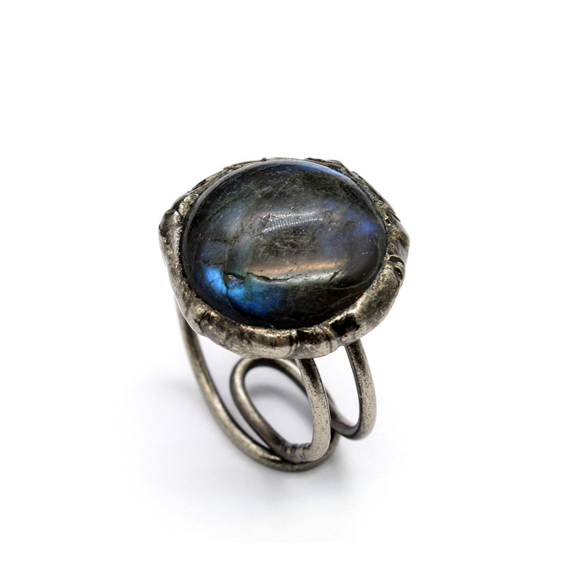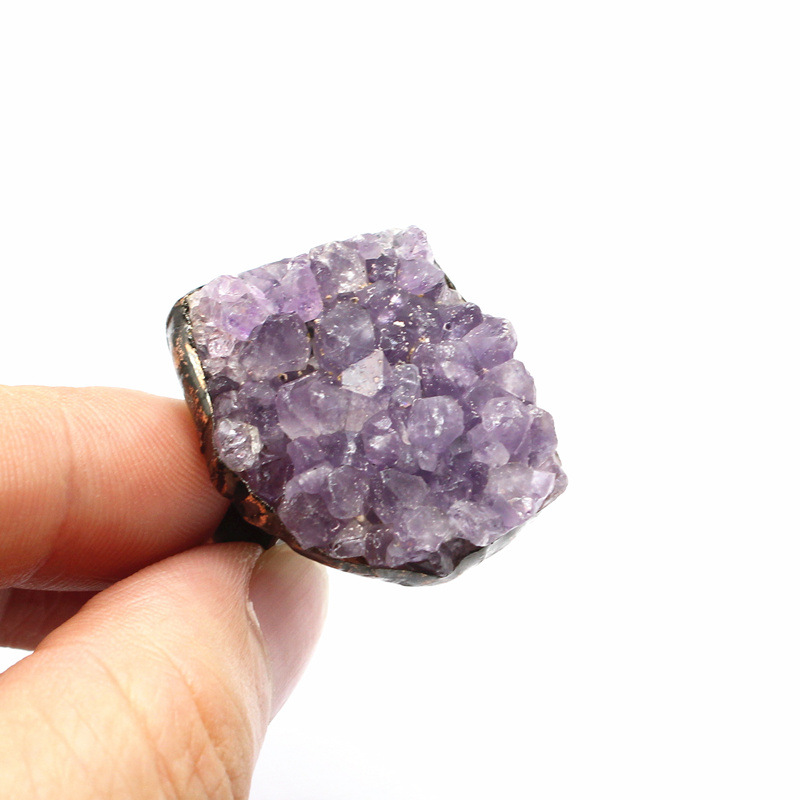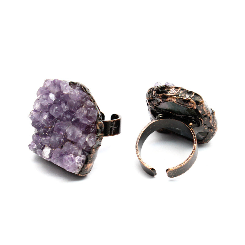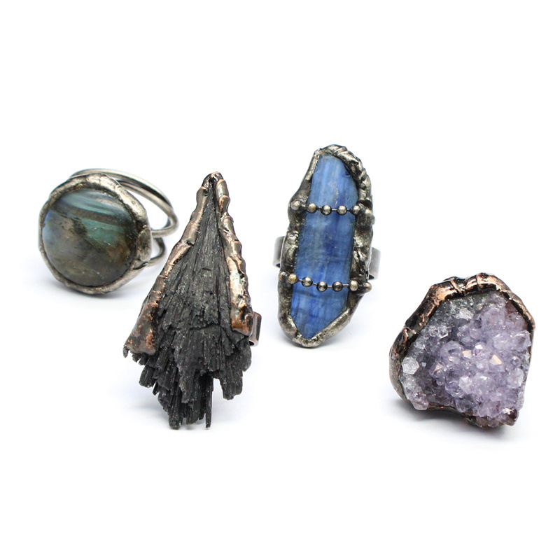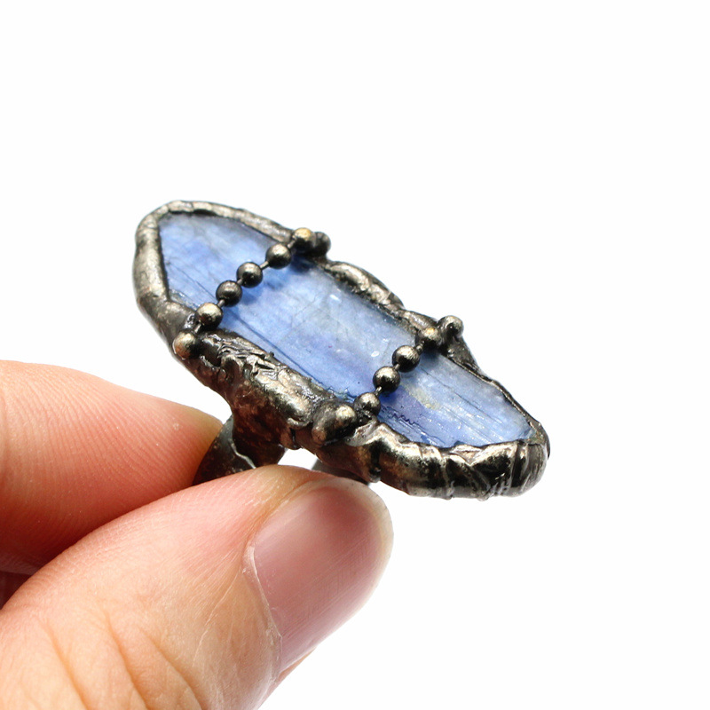 跨境水晶饰品批发做旧天然石黑碧玺原石戒指蓝晶不定形创意手饰