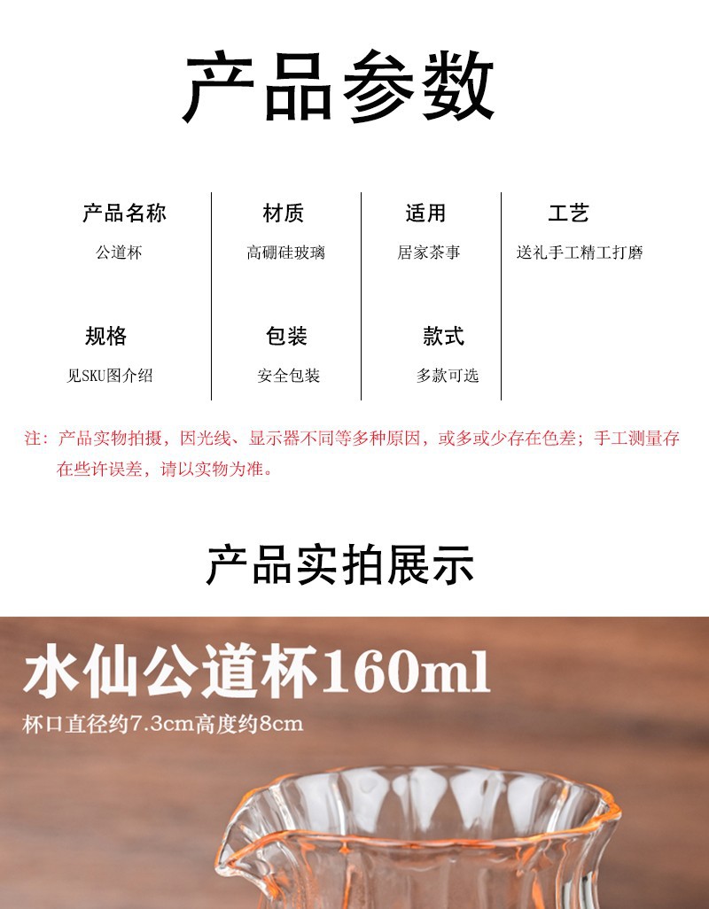 莲华玻璃公道杯透明加厚小容量茶海耐热分茶器耐热透明小号公杯