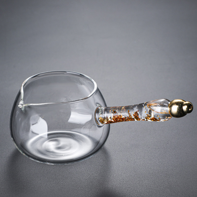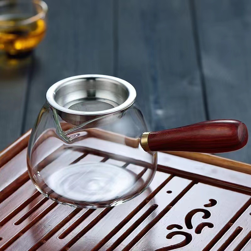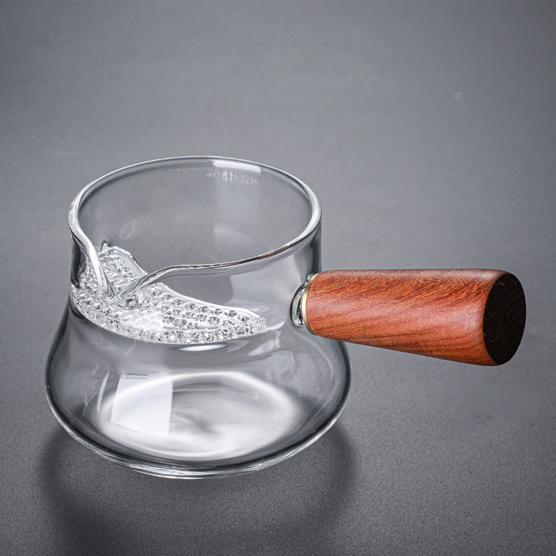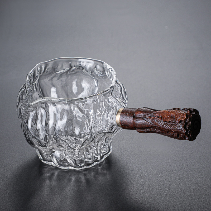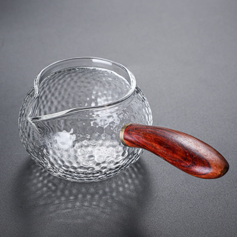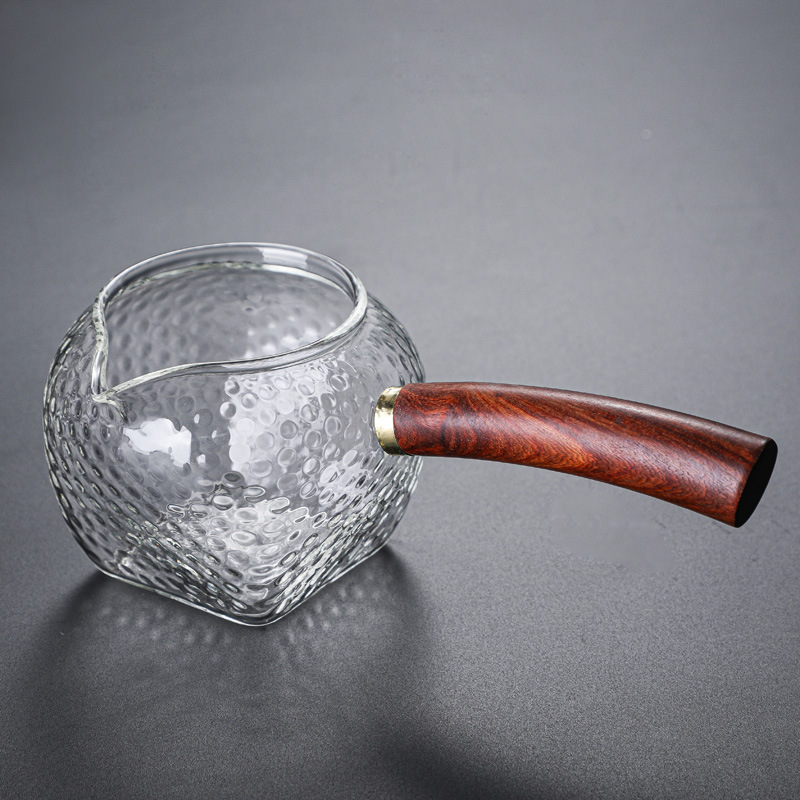 厂家批发木把玻璃公道杯功夫茶具配件分茶器加厚耐热创意侧把公杯