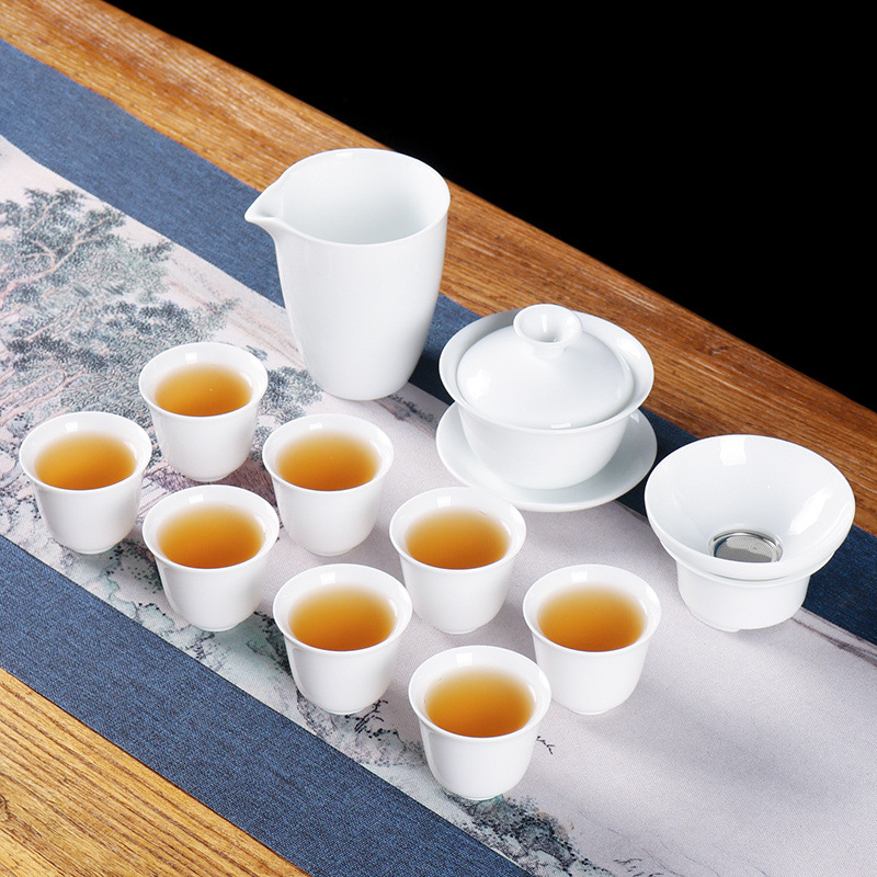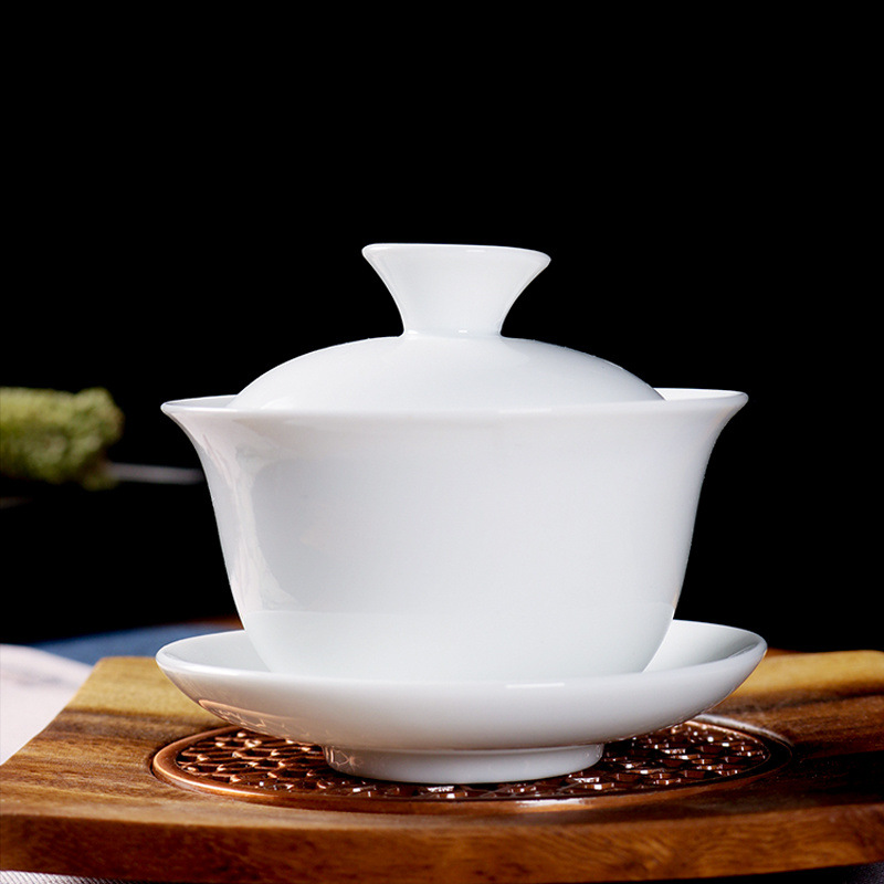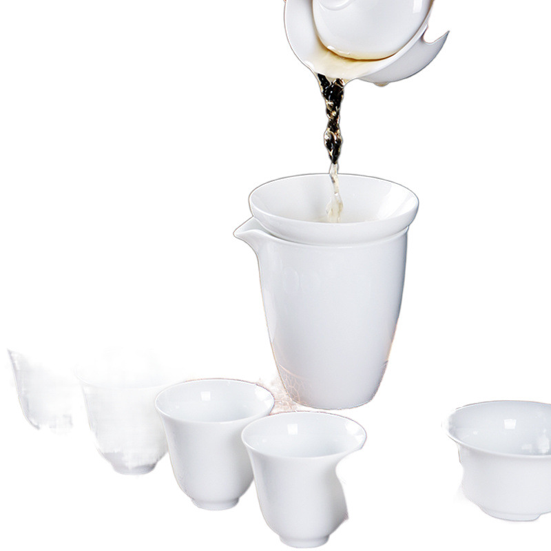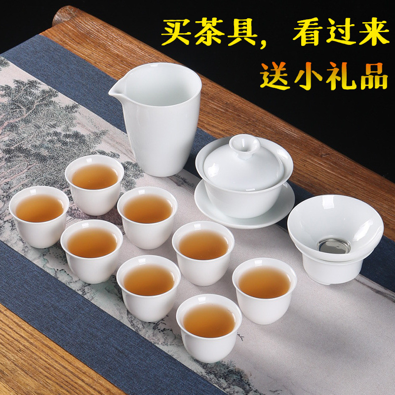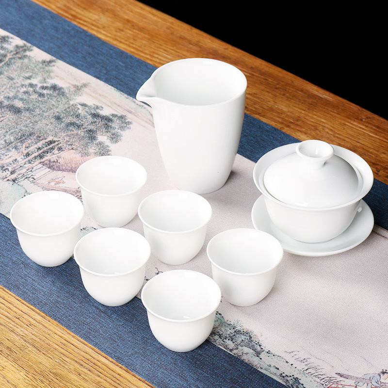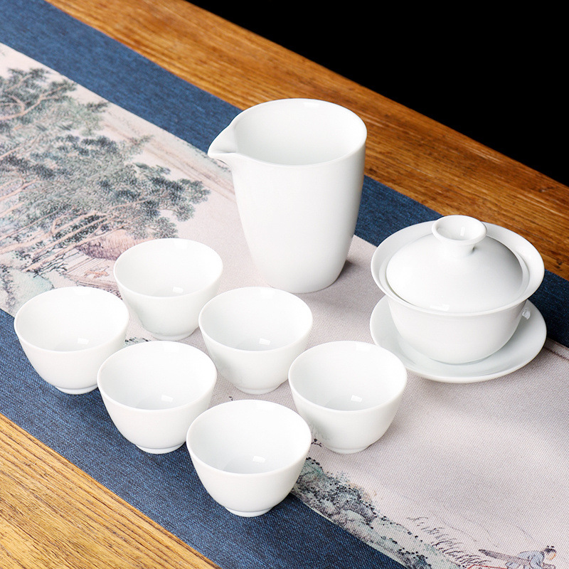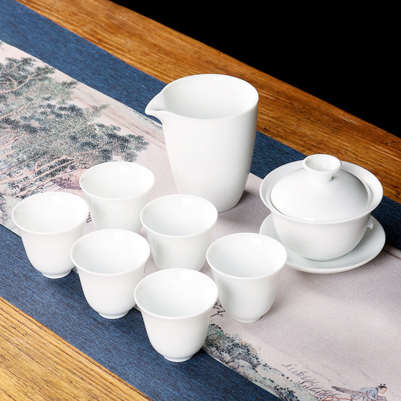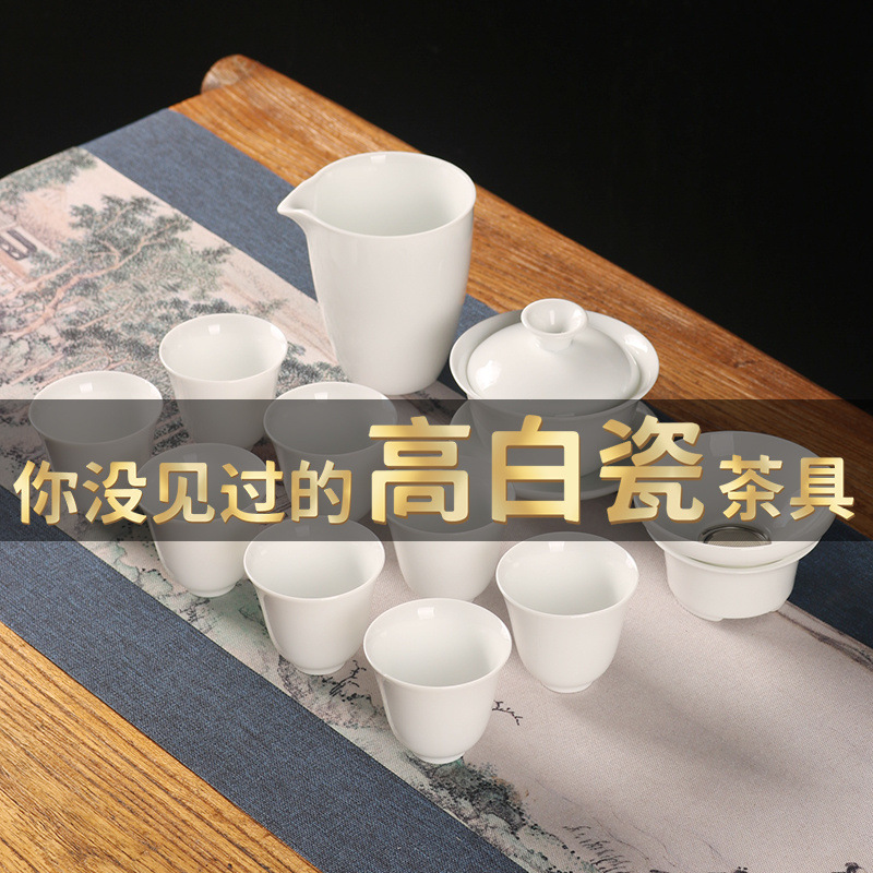 高白瓷功夫茶具套装家用简约盖碗茶杯陶瓷泡茶碗三才碗公道杯整套