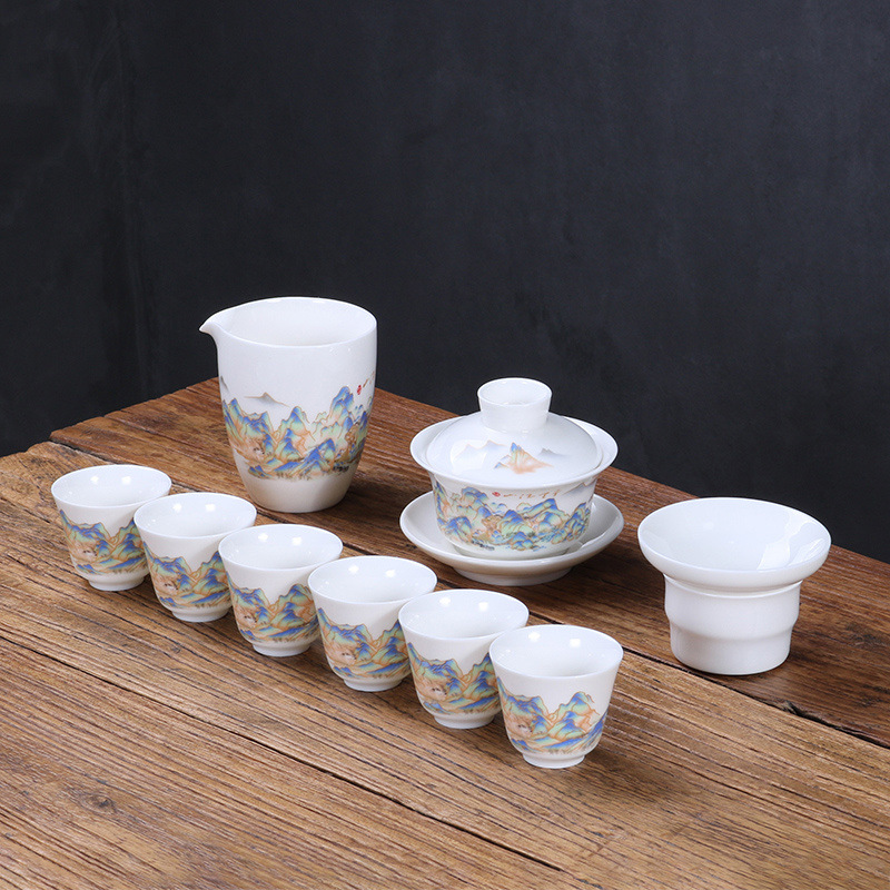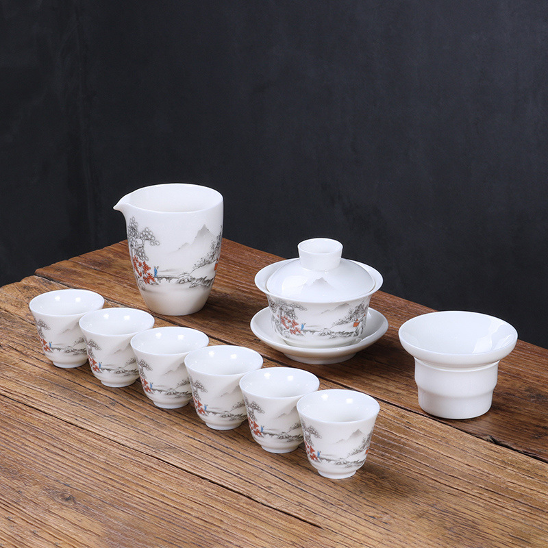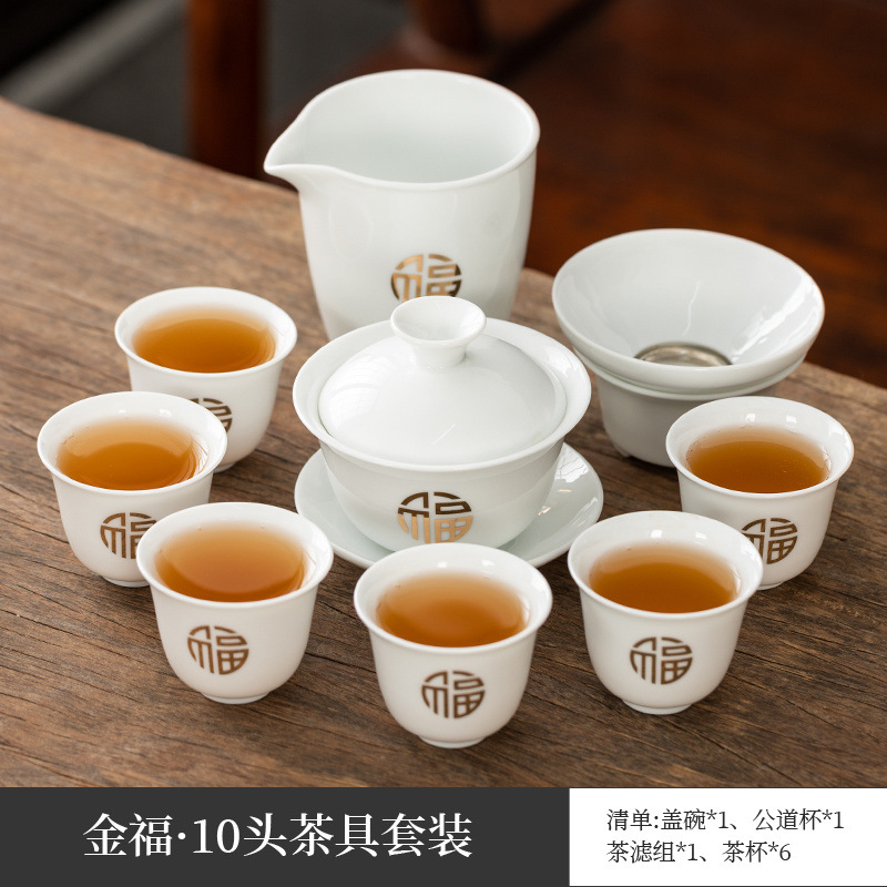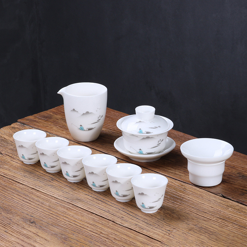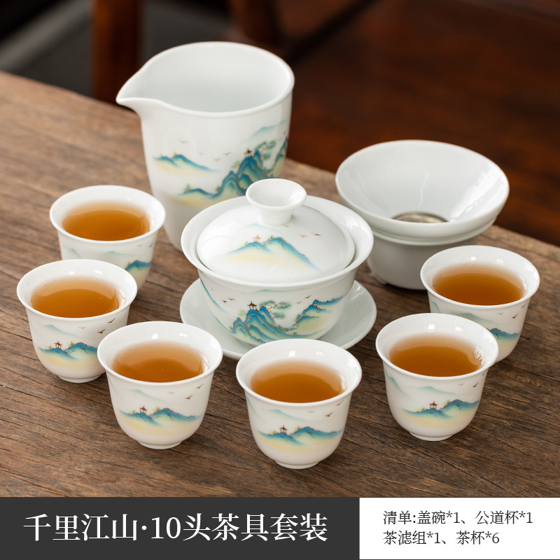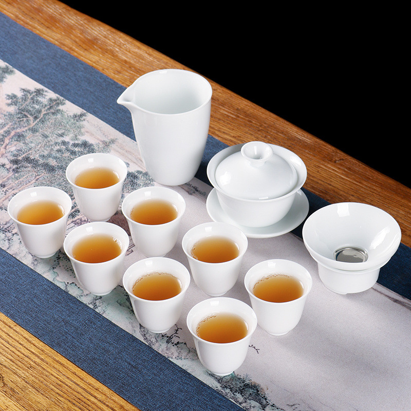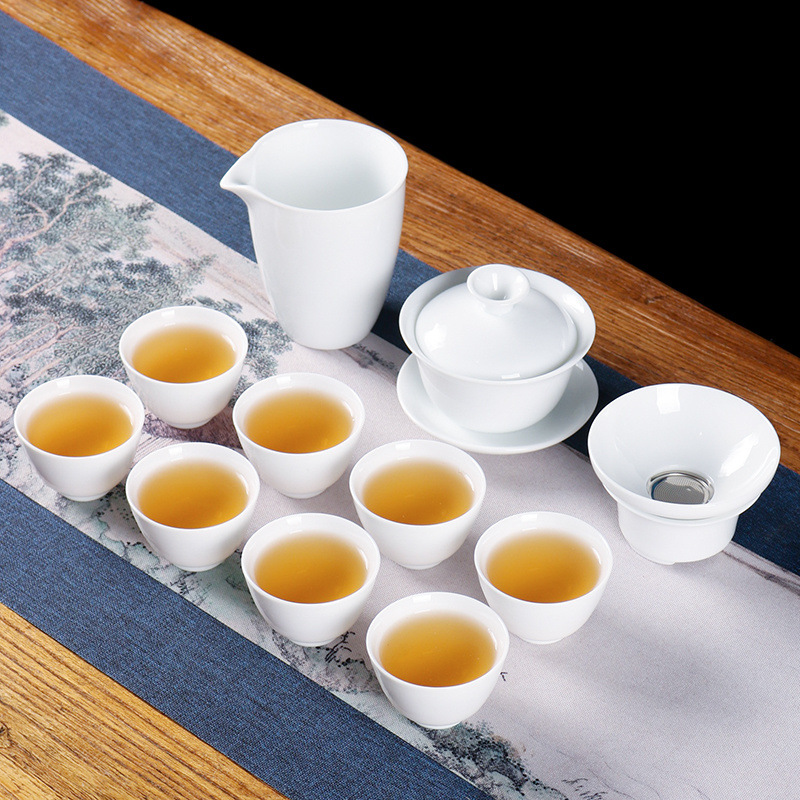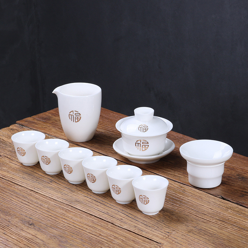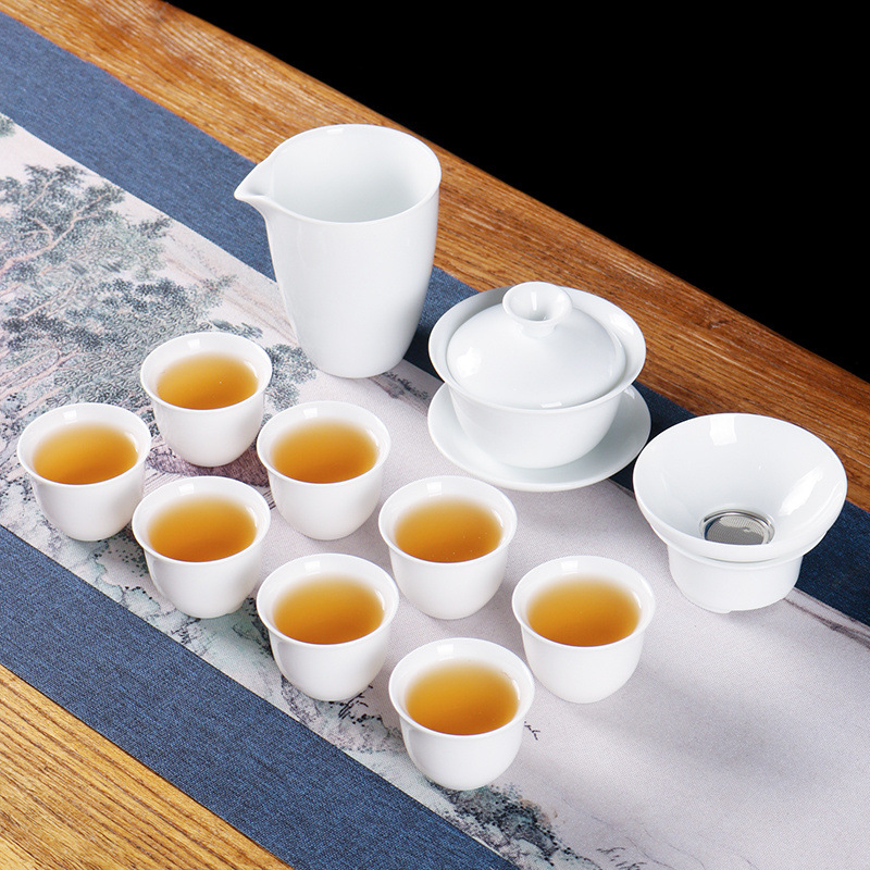 高白瓷功夫茶具套装家用简约盖碗茶杯陶瓷泡茶碗三才碗公道杯整套