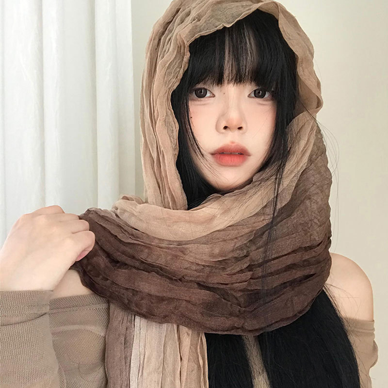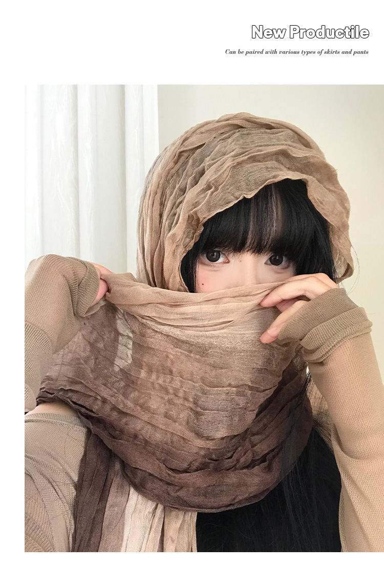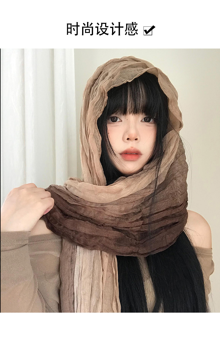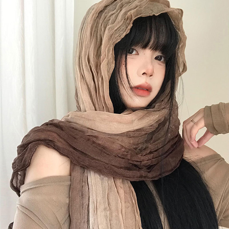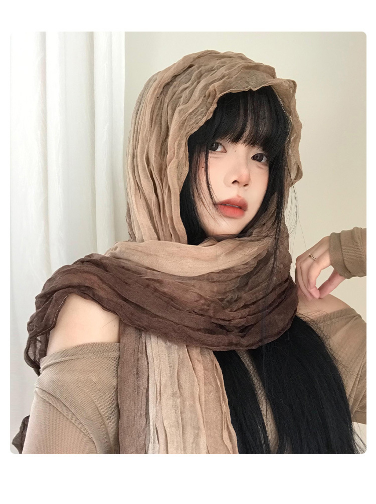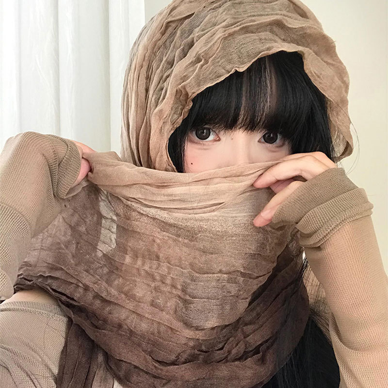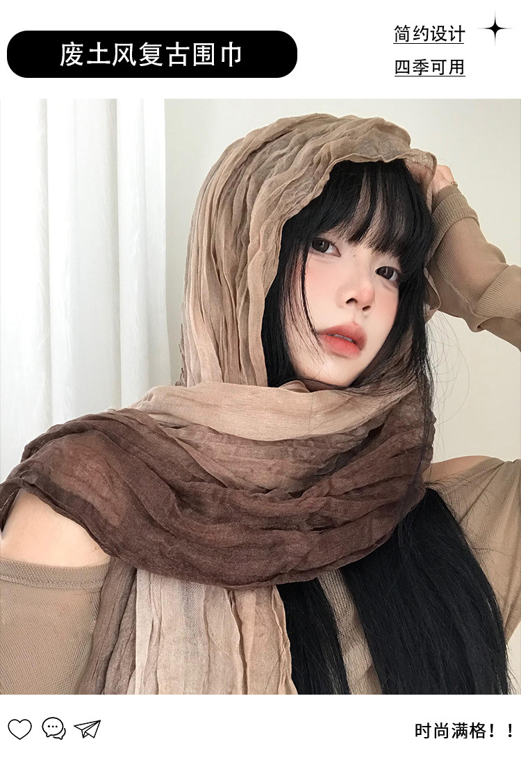 民族风丝巾女废土风亚麻褶皱渐变头巾沙漠凹造型辣妹围脖披肩批发