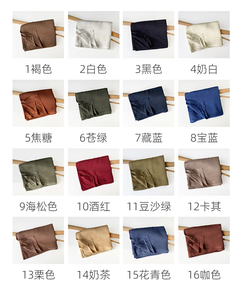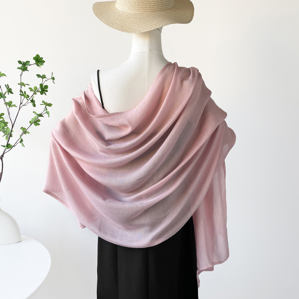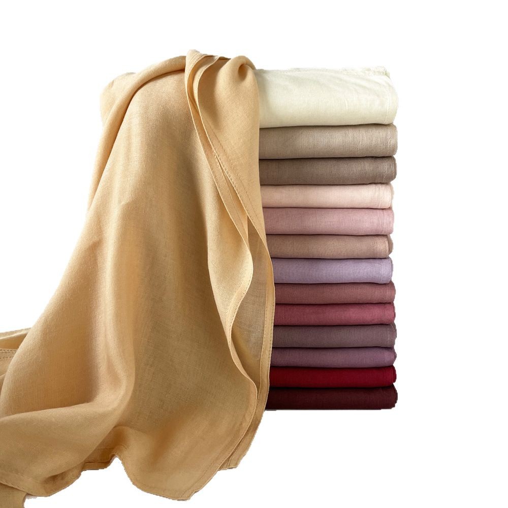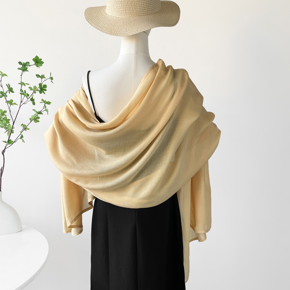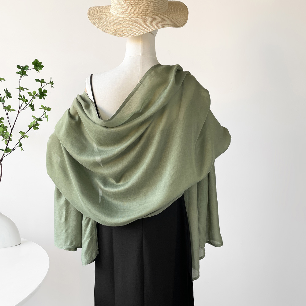 严选夏季棉麻围巾纯色简约防晒披肩跨境女高级感丝巾纱巾头巾批发