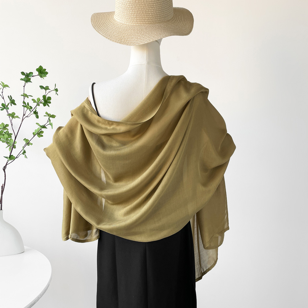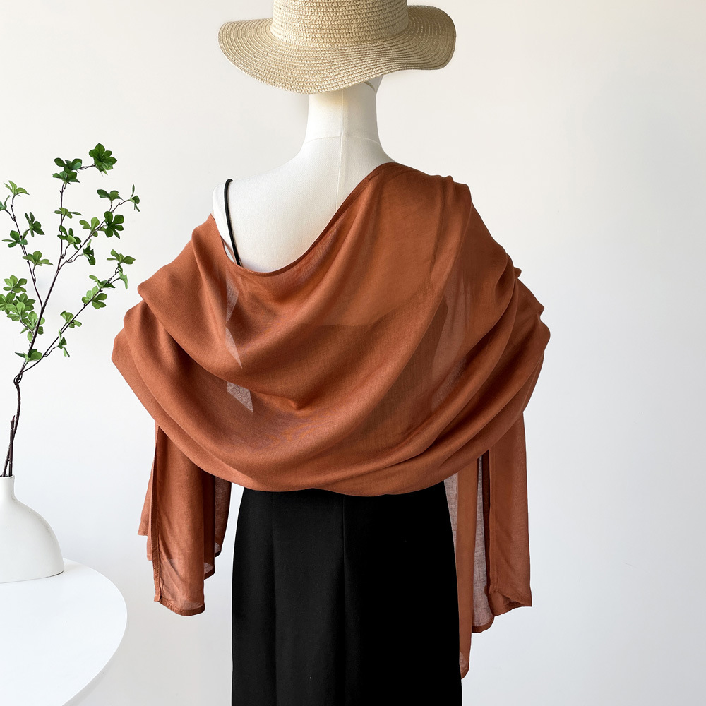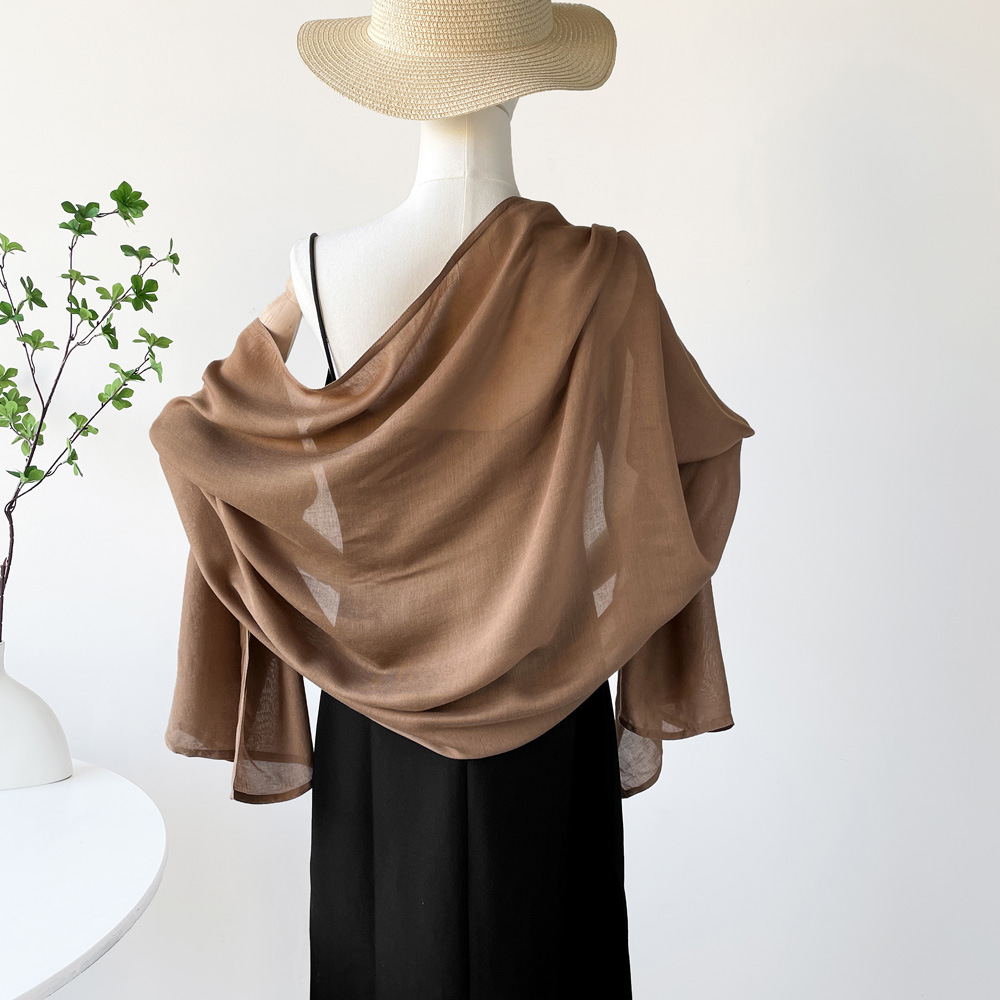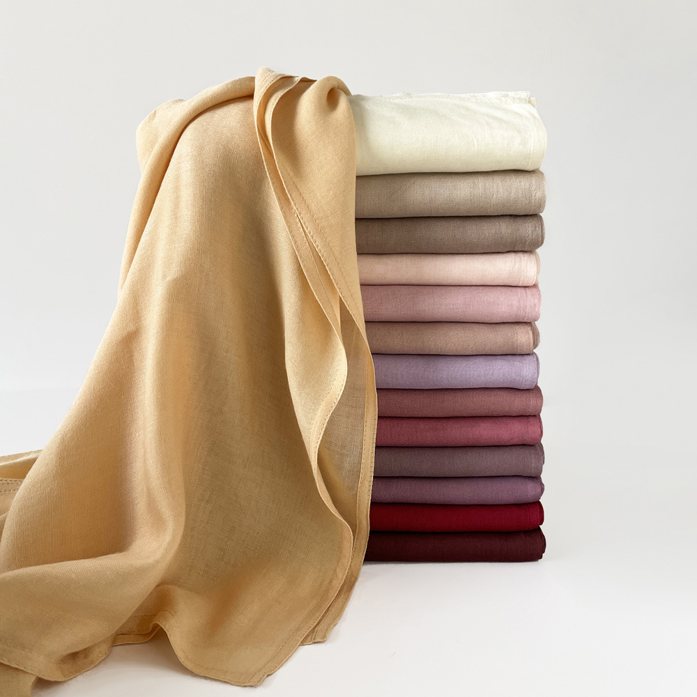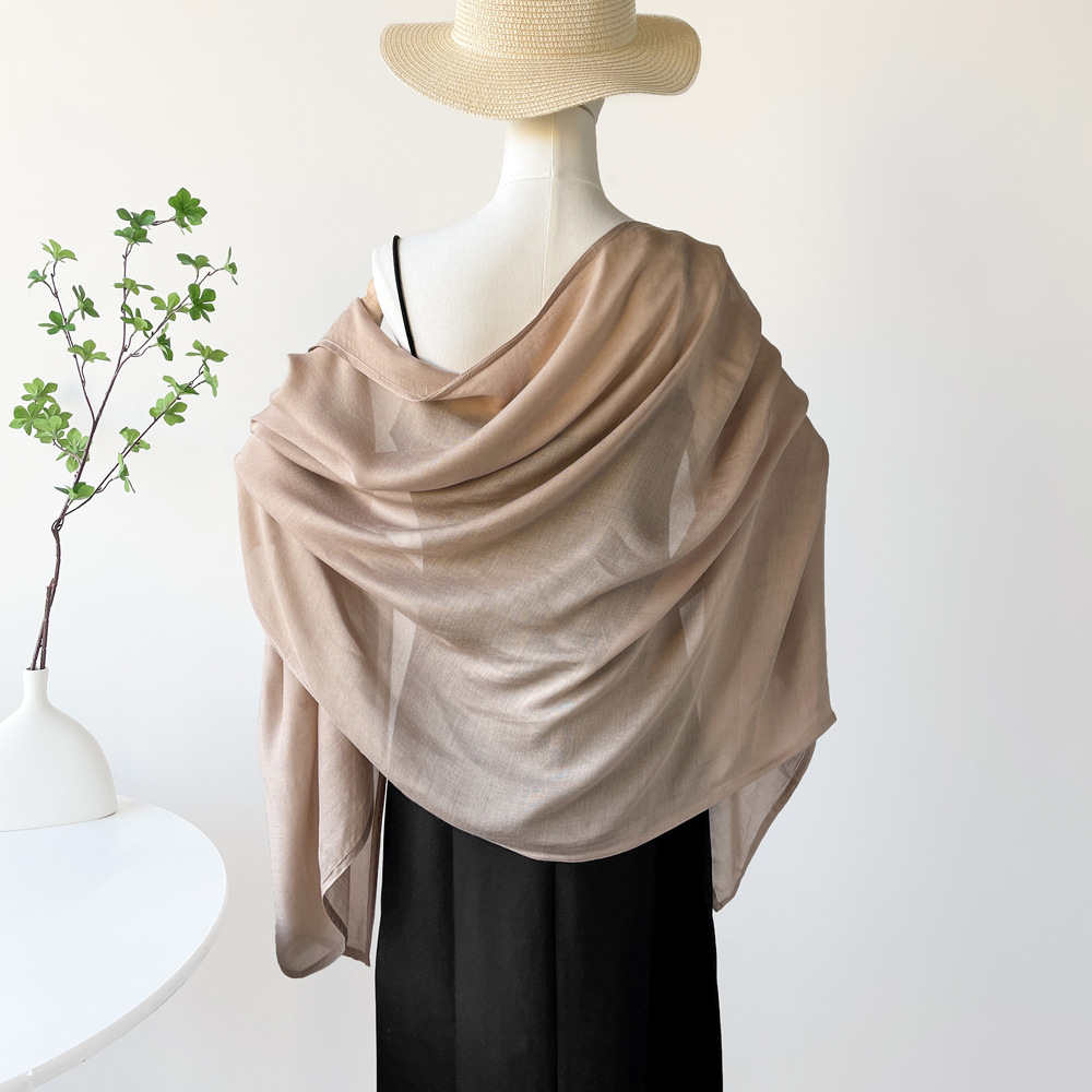 严选夏季棉麻围巾纯色简约防晒披肩跨境女高级感丝巾纱巾头巾批发