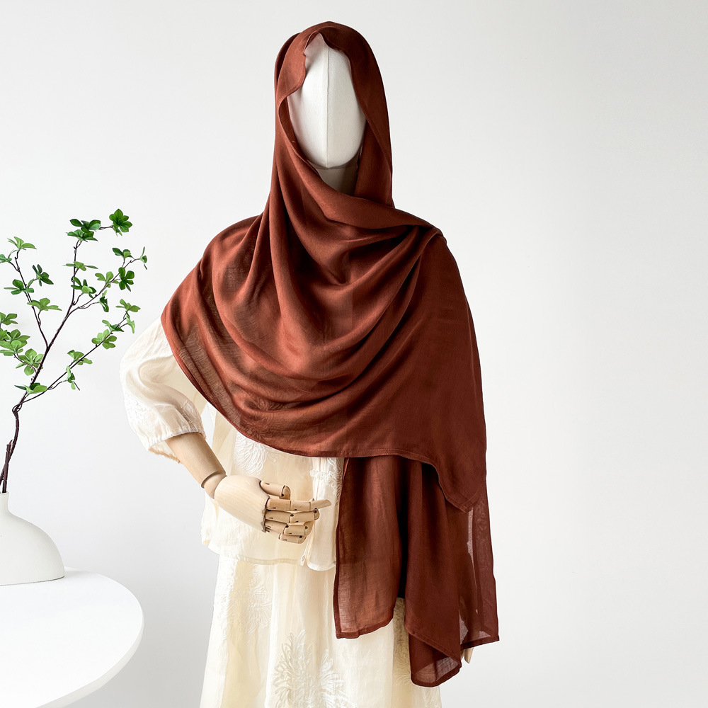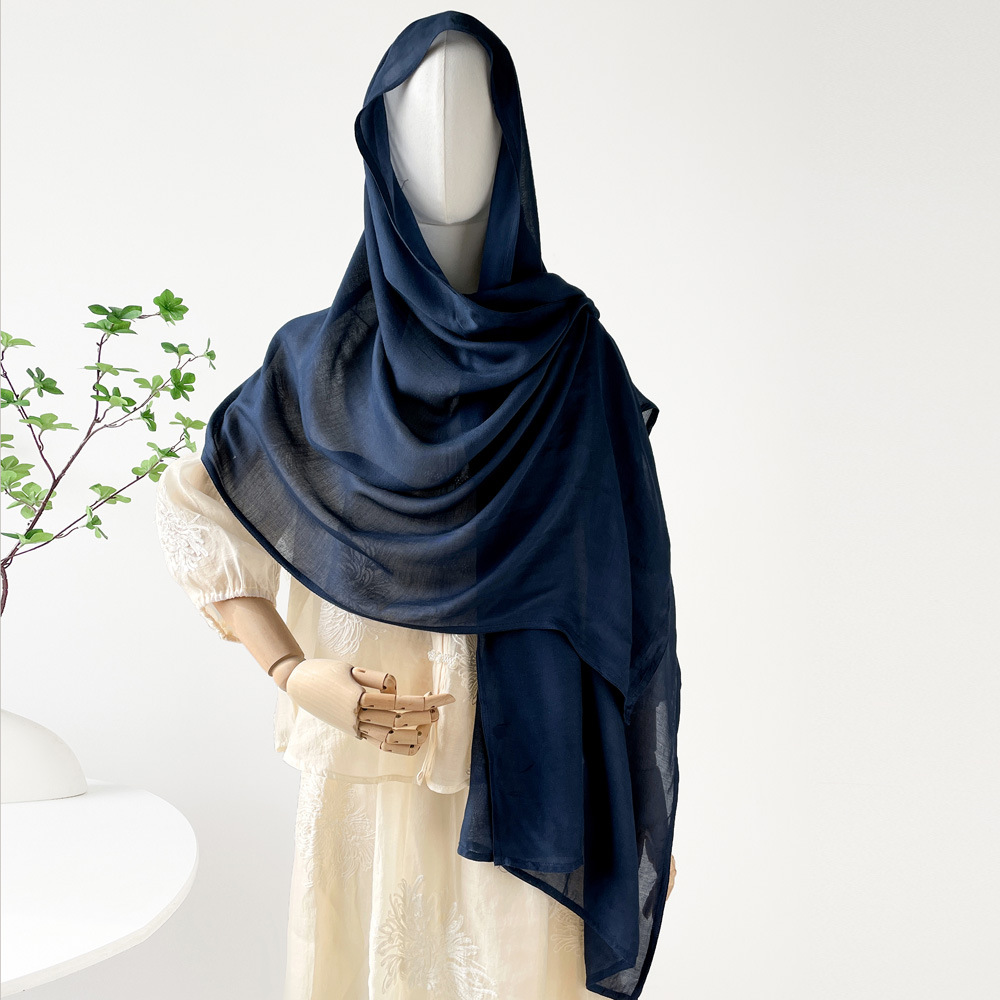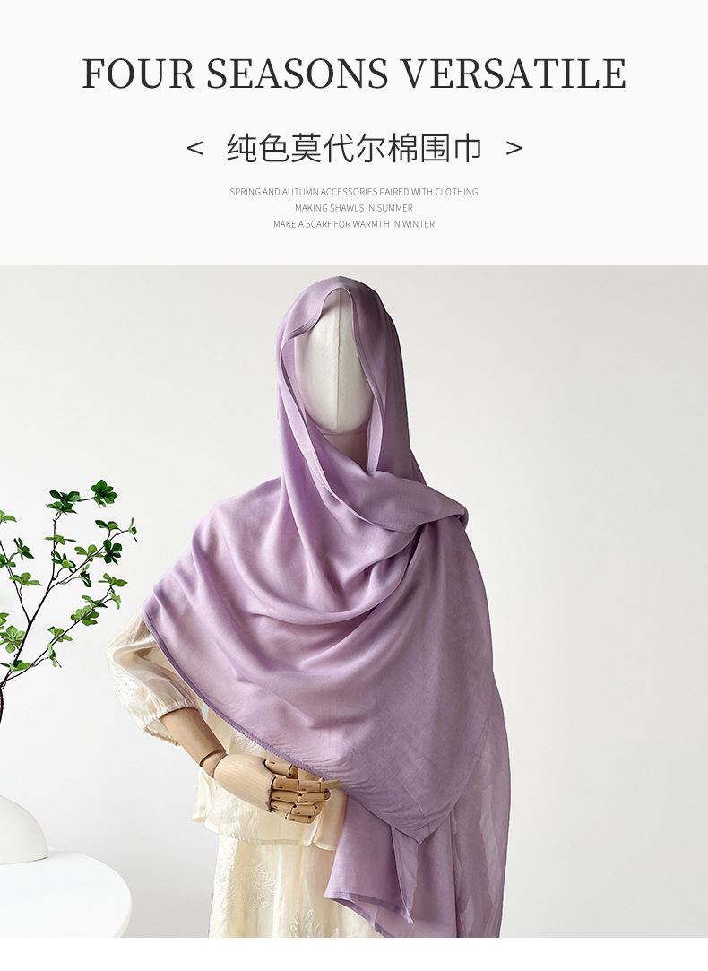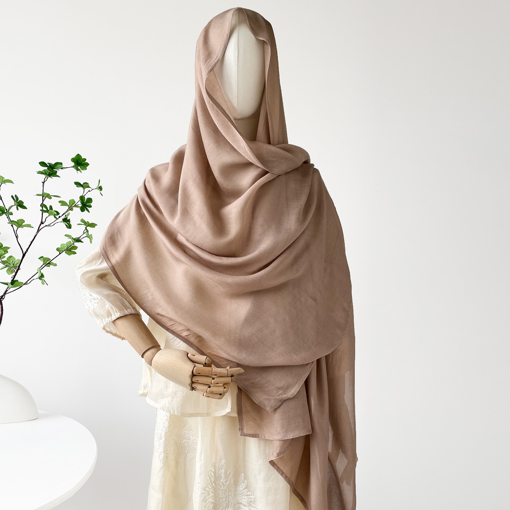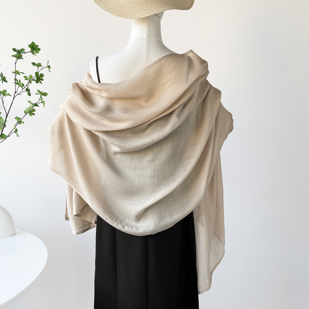 严选夏季棉麻围巾纯色简约防晒披肩跨境女高级感丝巾纱巾头巾批发