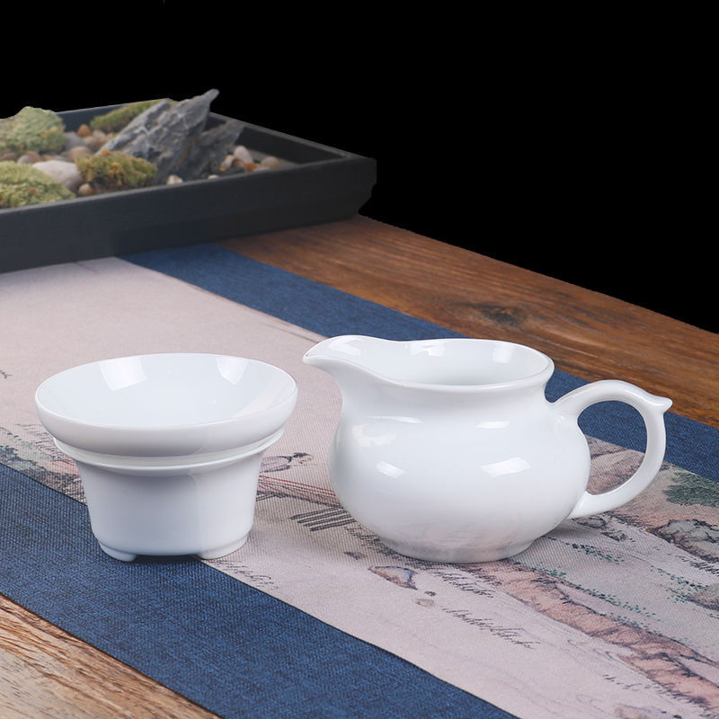 白瓷公道杯分茶器陶瓷茶具配件茶海过滤公平杯茶漏分茶器组合套装