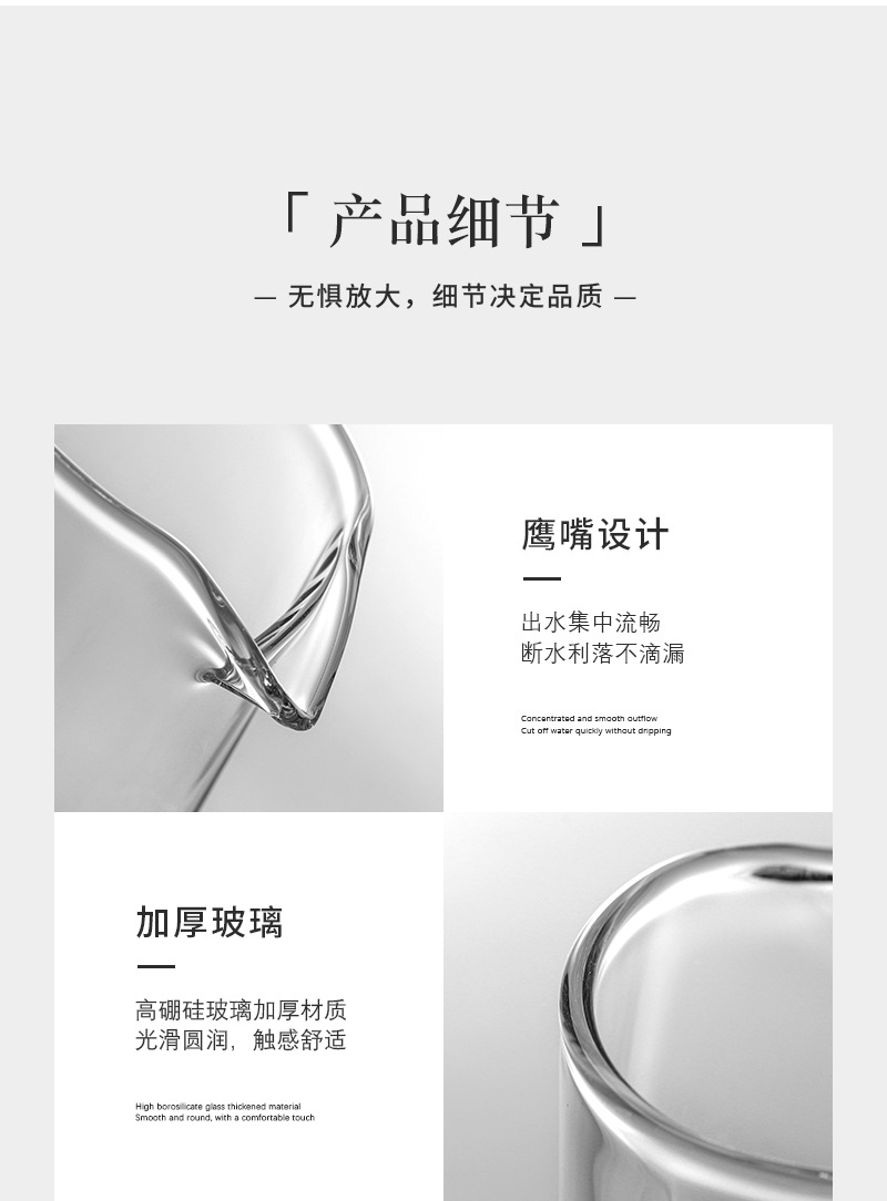 公道杯防爆加厚玻璃公道杯茶漏套装分茶器大容量茶海公杯家用茶具