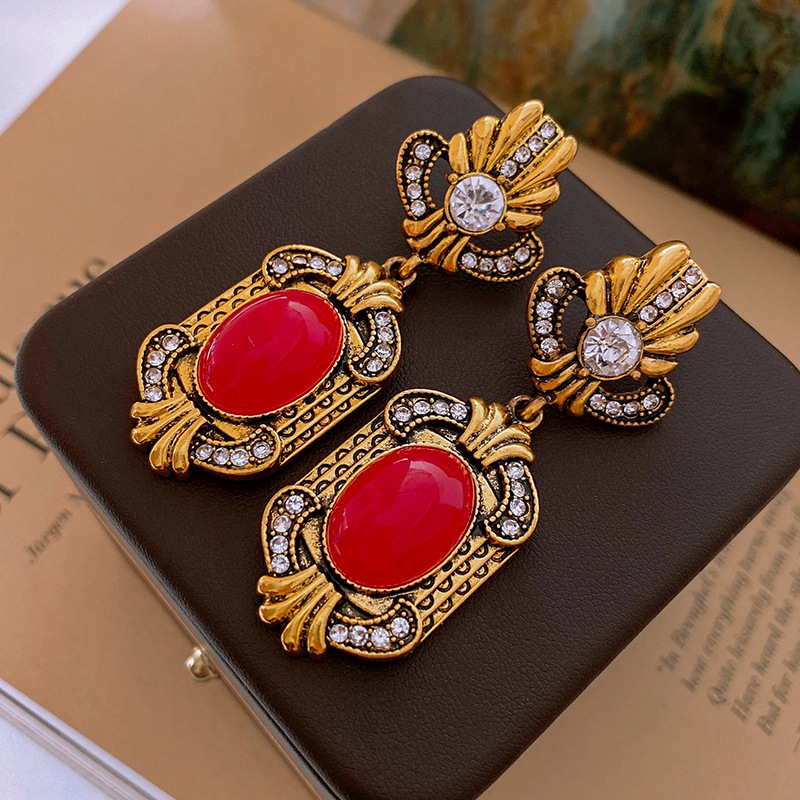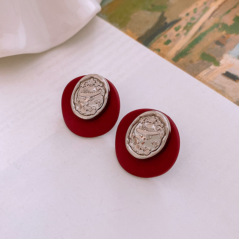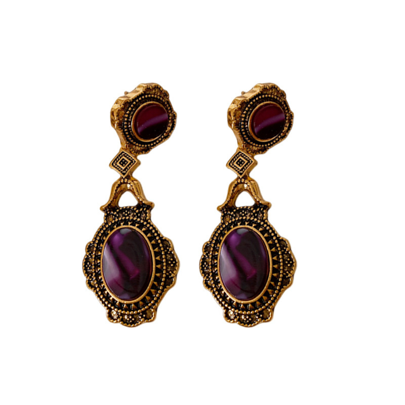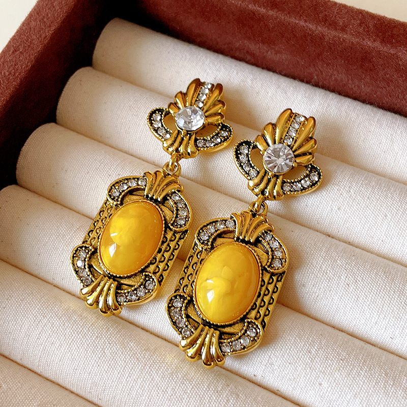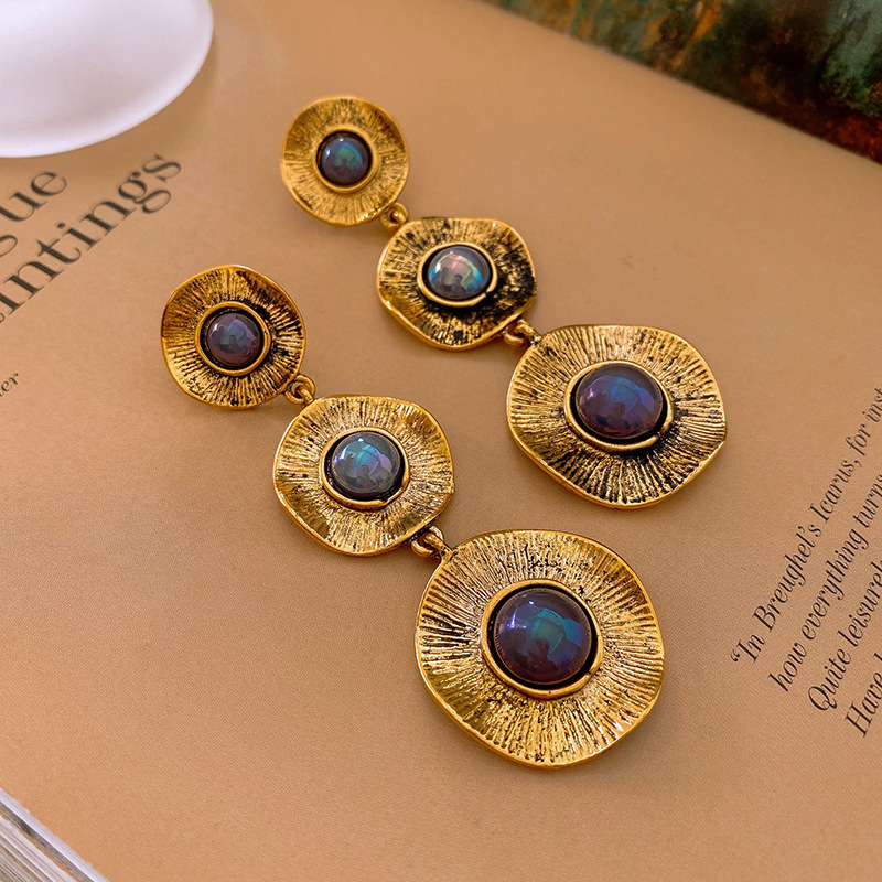 中古vintage银针椭圆耳环复古小众宫廷风耳钉轻奢高级感耳饰批发