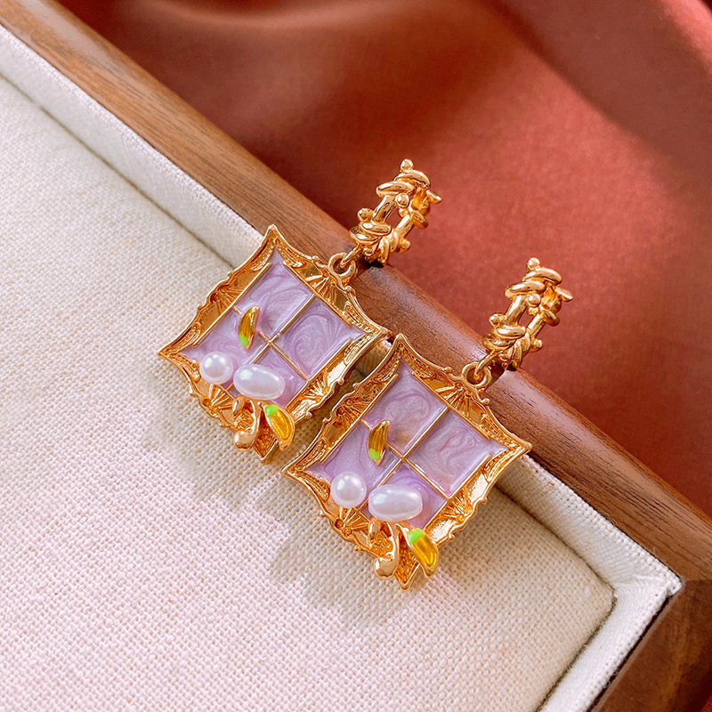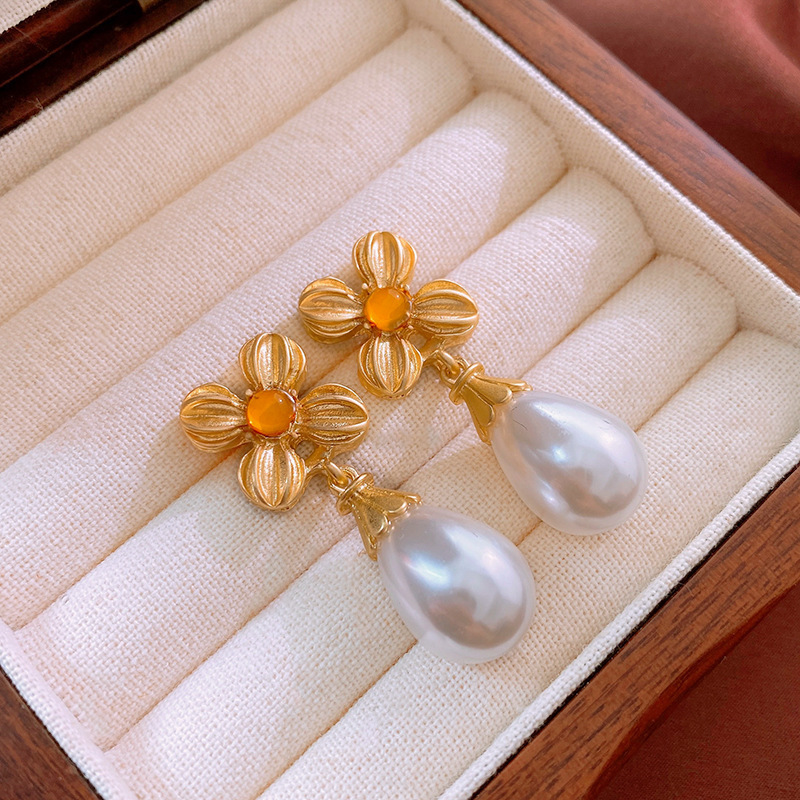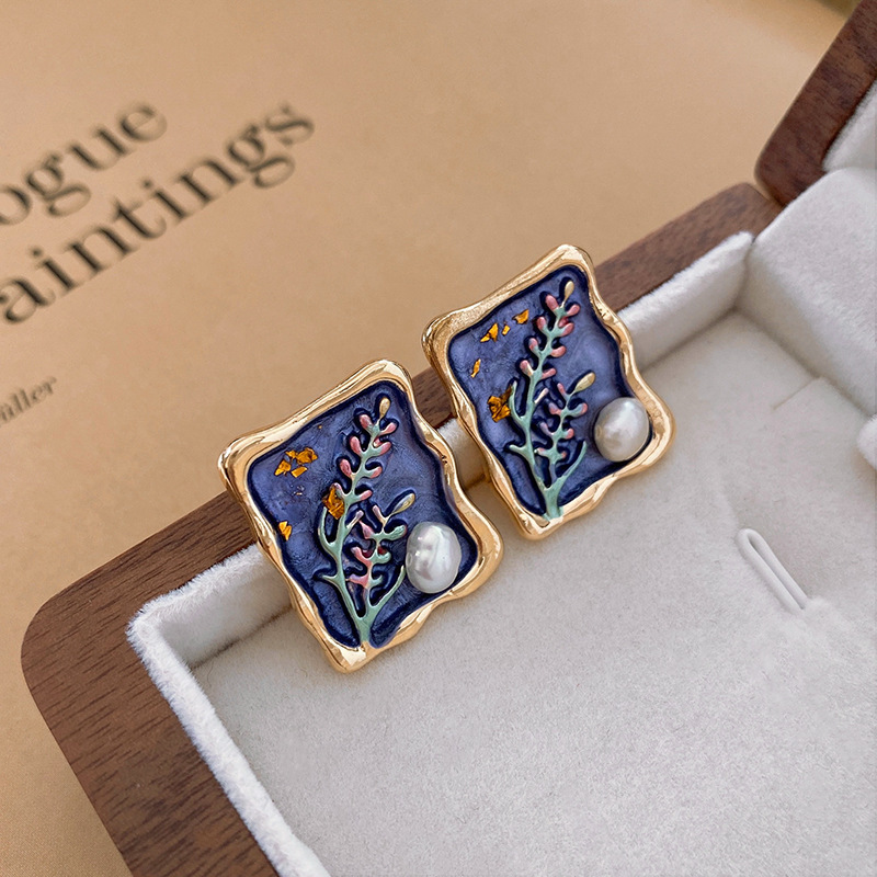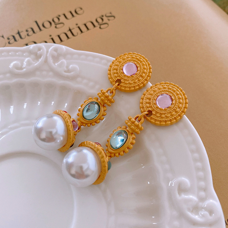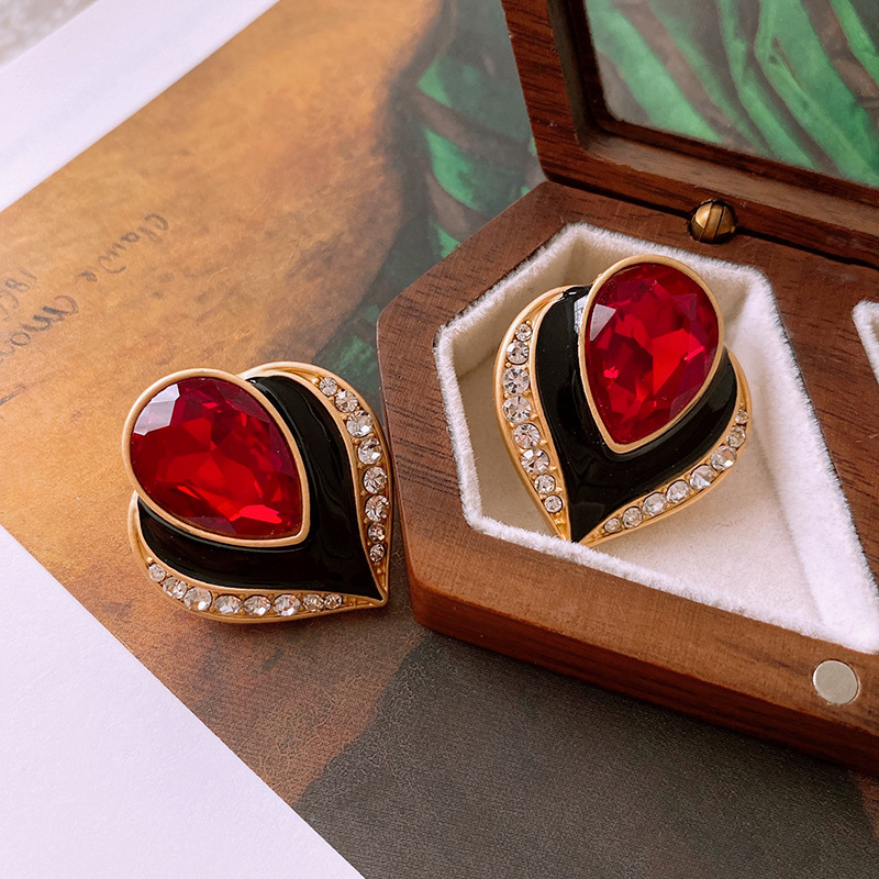中古vintage银针椭圆耳环复古小众宫廷风耳钉轻奢高级感耳饰批发