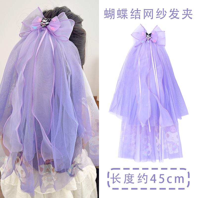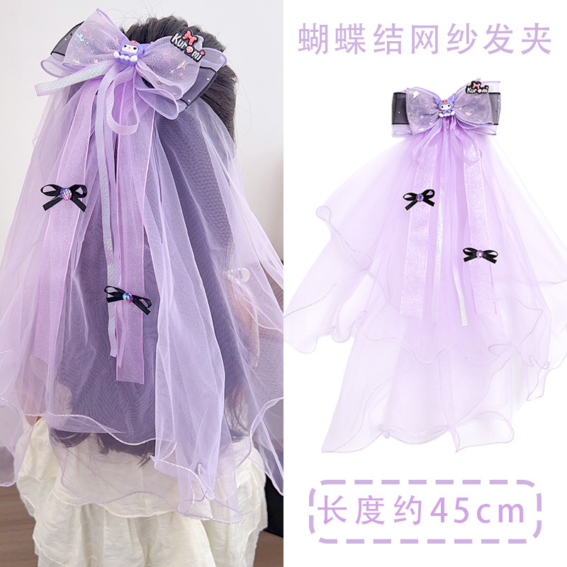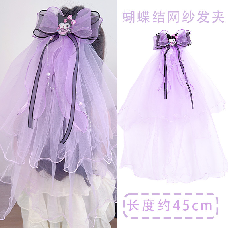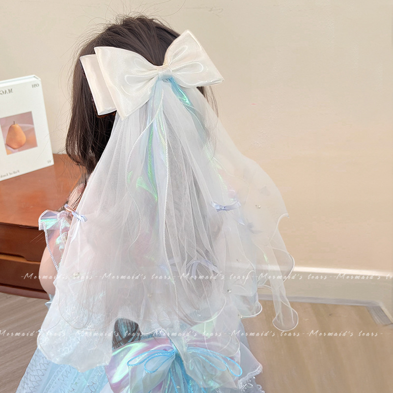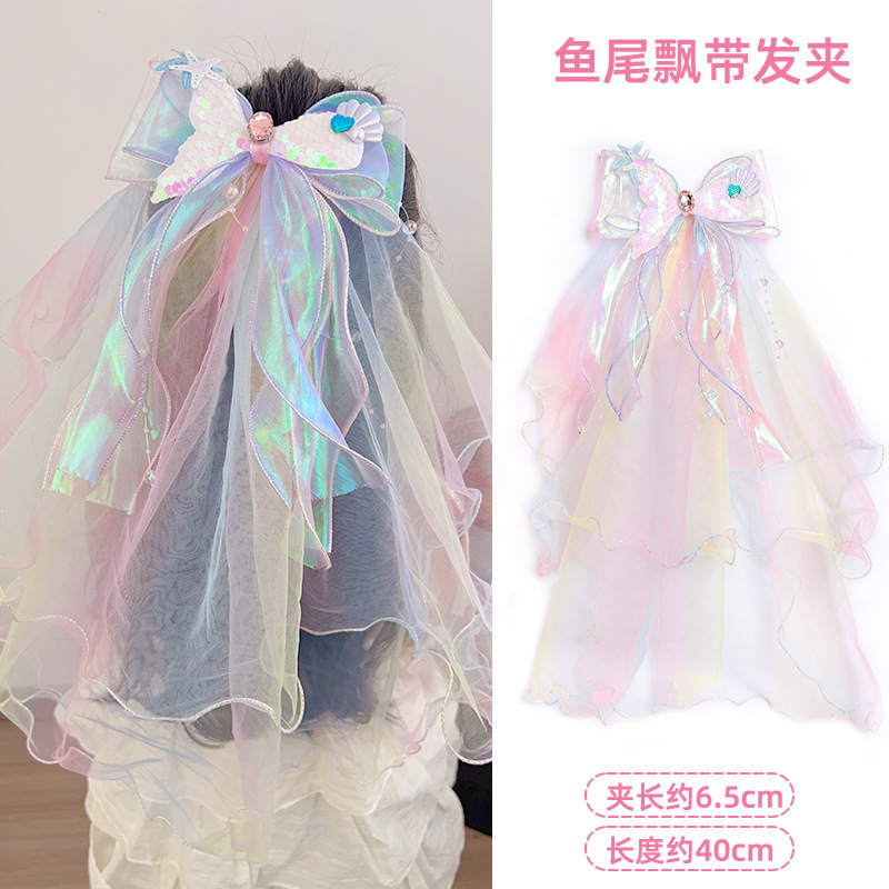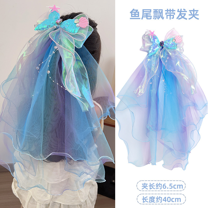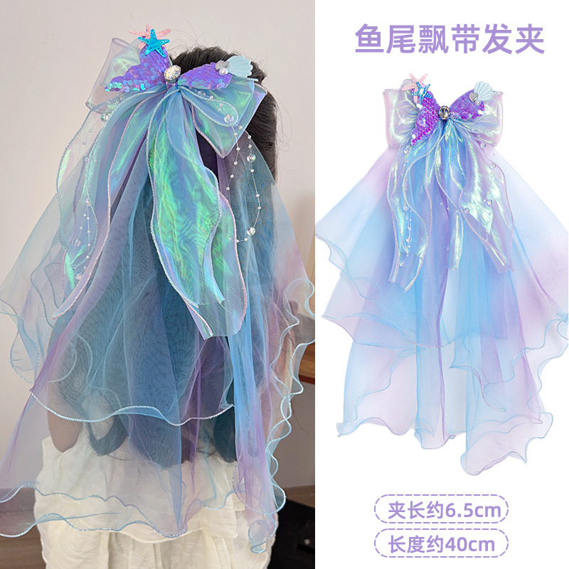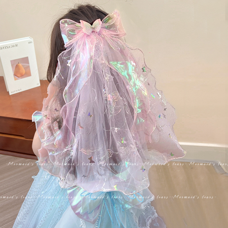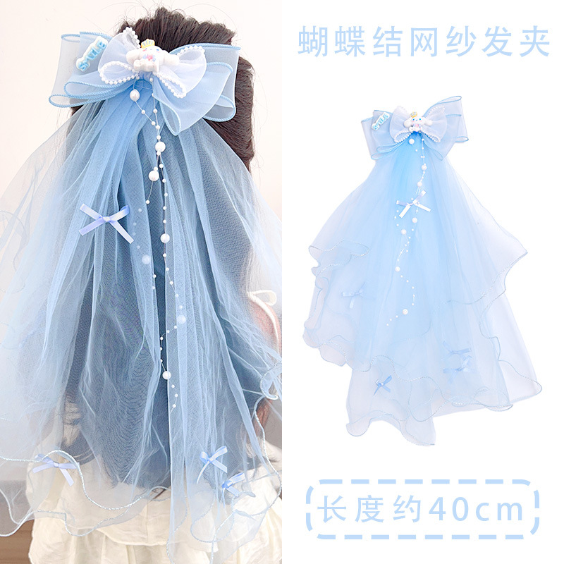 女童头纱公主发饰生日皇冠冰雪儿童节发夹头饰蝴蝶结飘带网纱发卡