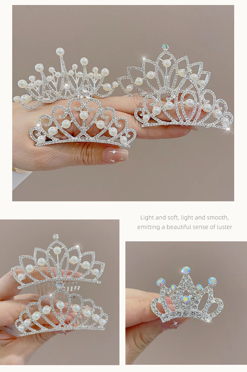 儿童高端皇冠头饰公主水钻王冠插梳小女孩表演发梳韩式高级感发卡