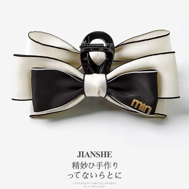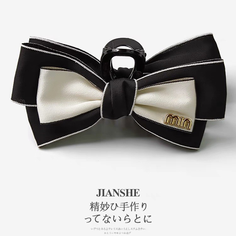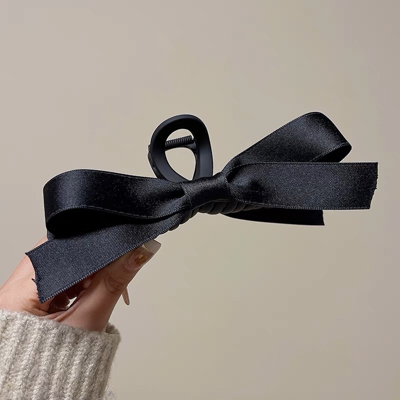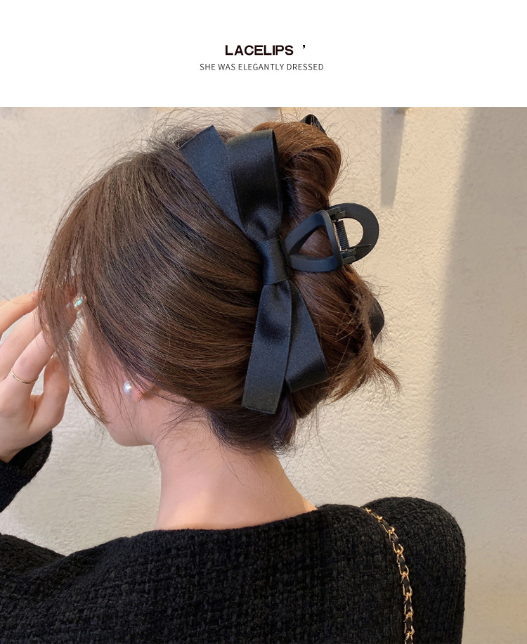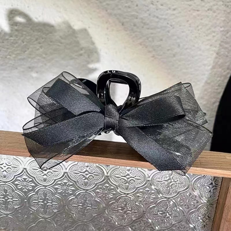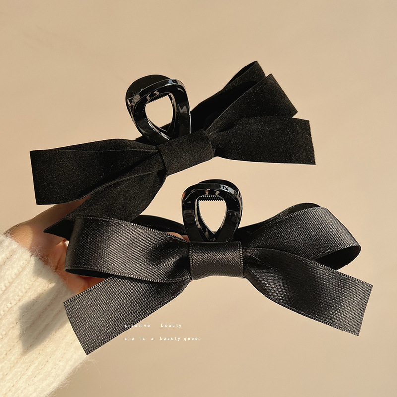 赫本风黑色蝴蝶结抓夹女大号高级感盘发夹子后脑勺鲨鱼夹头饰发卡