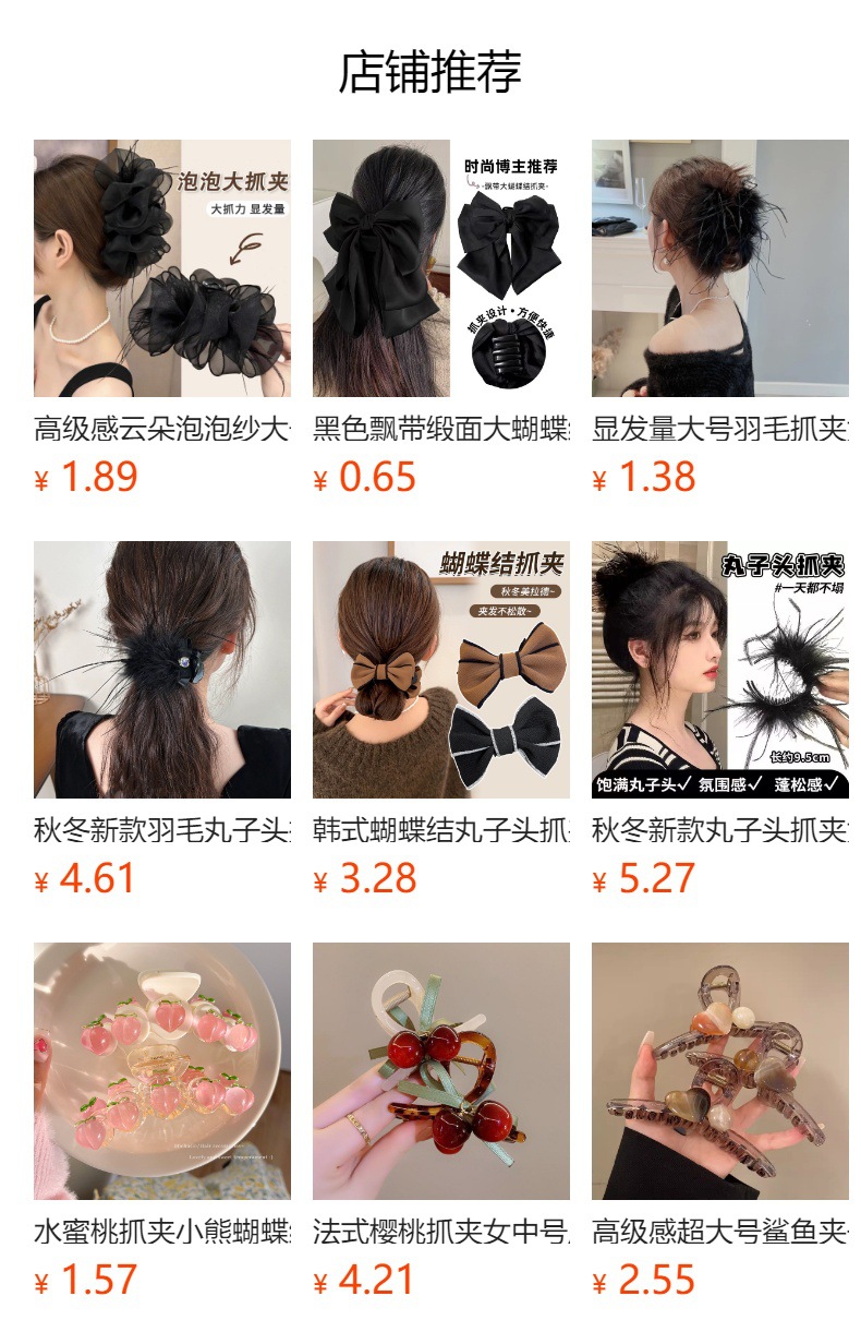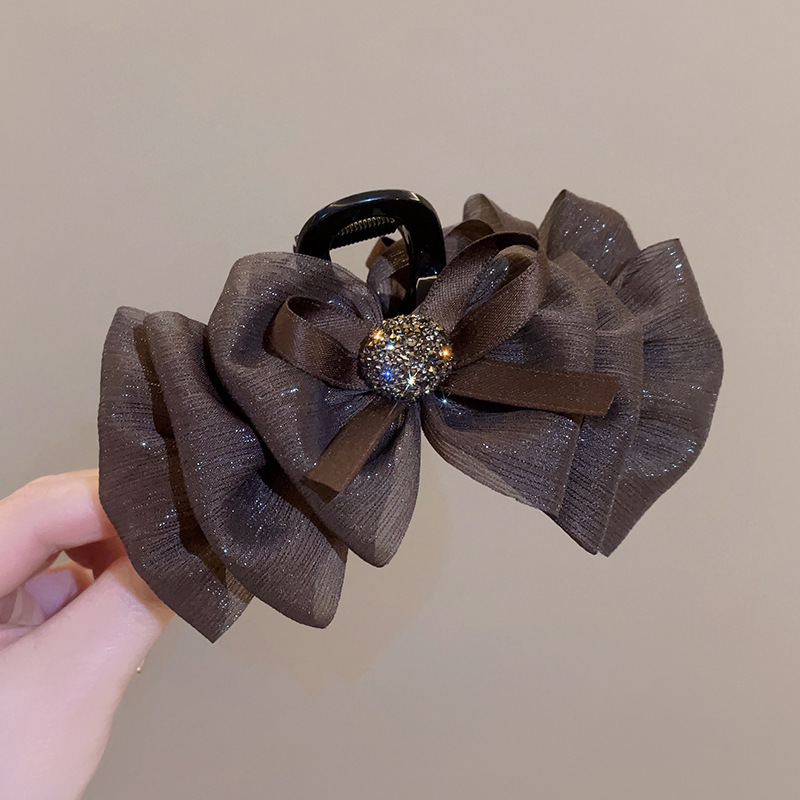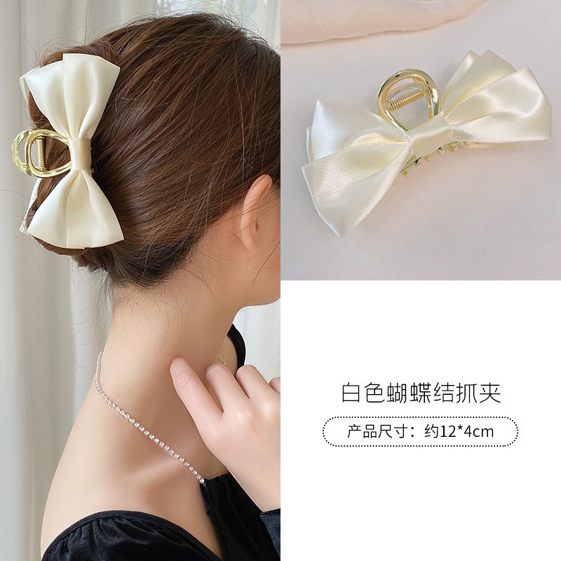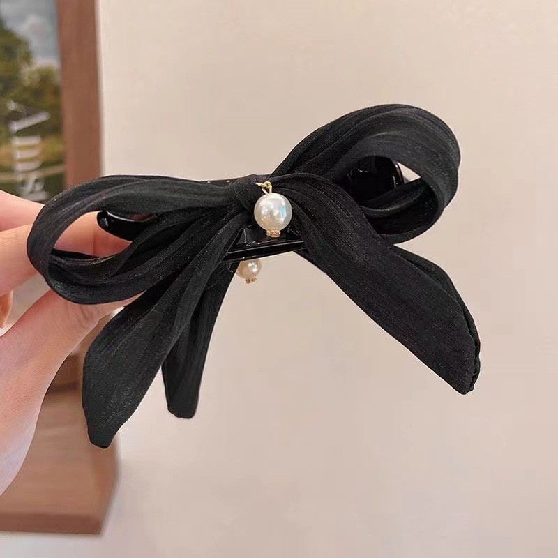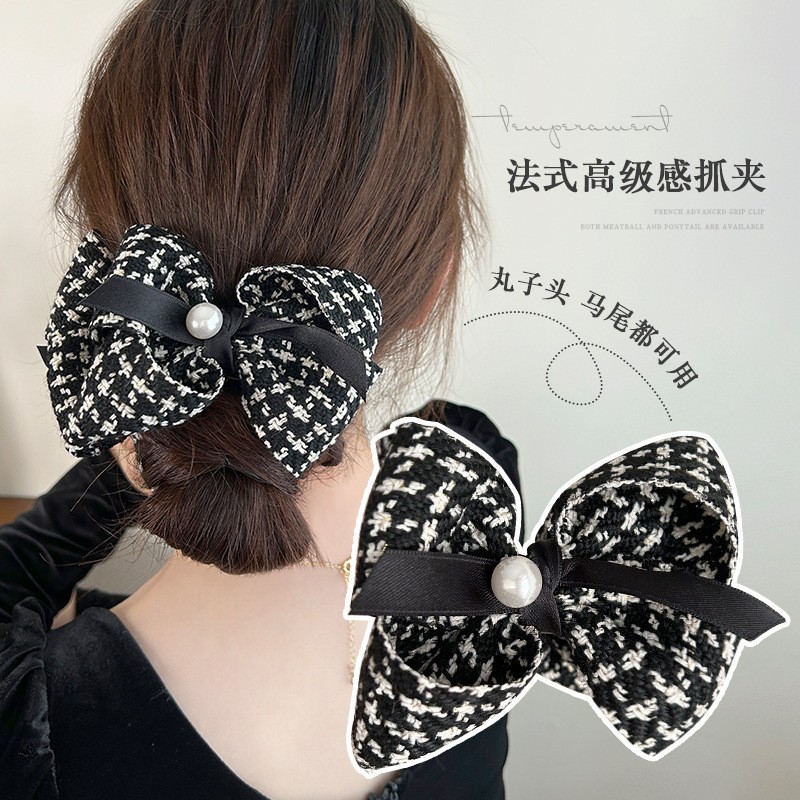 赫本风黑色蝴蝶结抓夹女大号高级感盘发夹子后脑勺鲨鱼夹头饰发卡