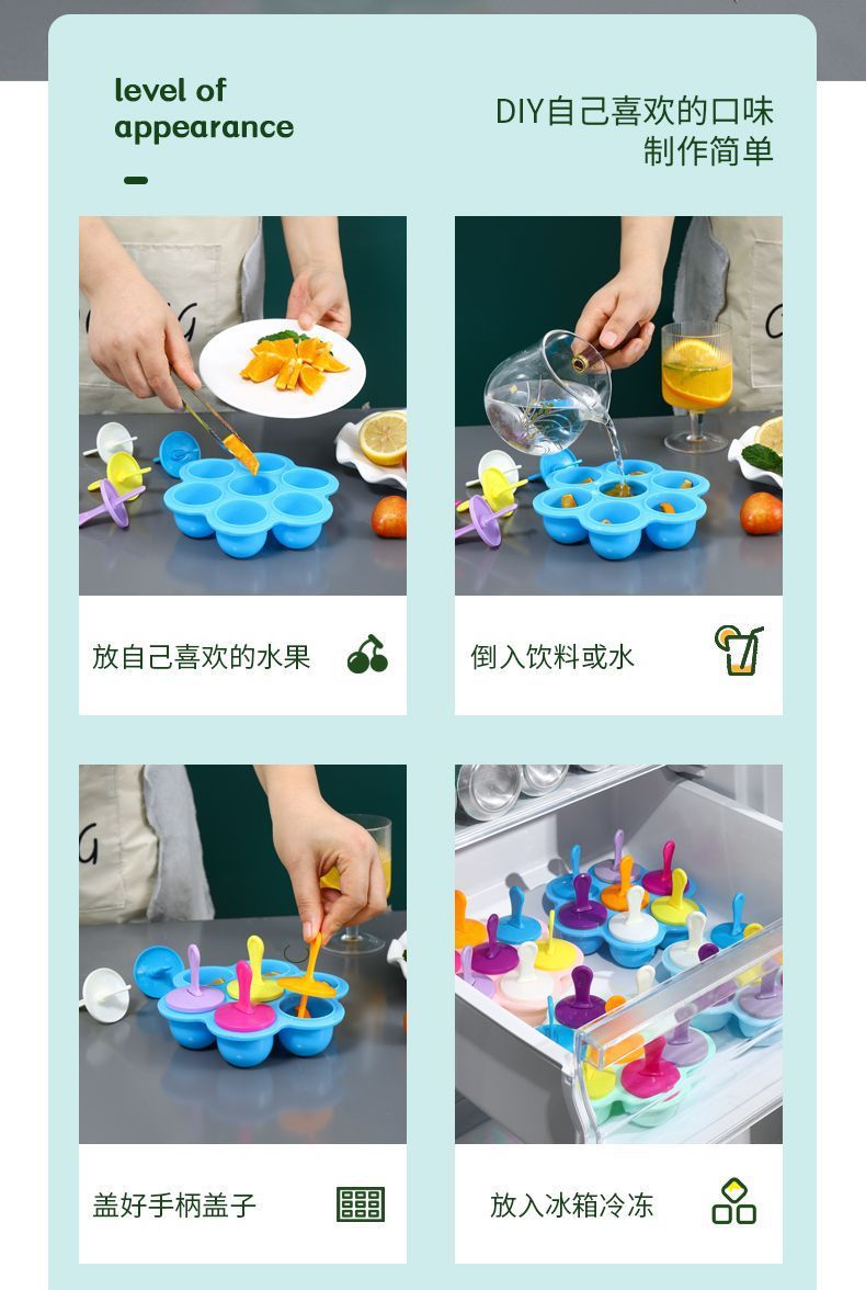 7孔球形儿童冰棒模具DIY模具家用可爱自制冰淇淋雪糕模具冰块模具