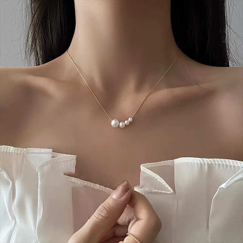 S925纯银珍珠项链配饰女小众不掉色高级感百搭秋冬锁骨链毛衣链