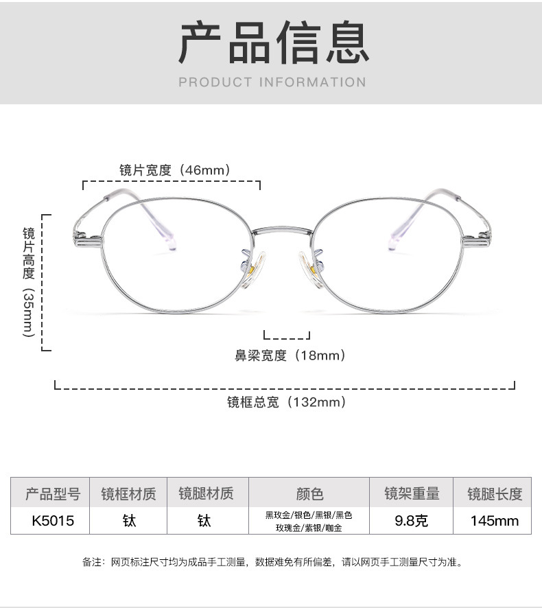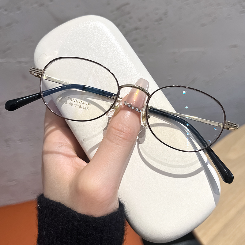复古小框架适配高度近视眼镜女超轻纯钛眼镜框IP双色电镀丹阳工厂