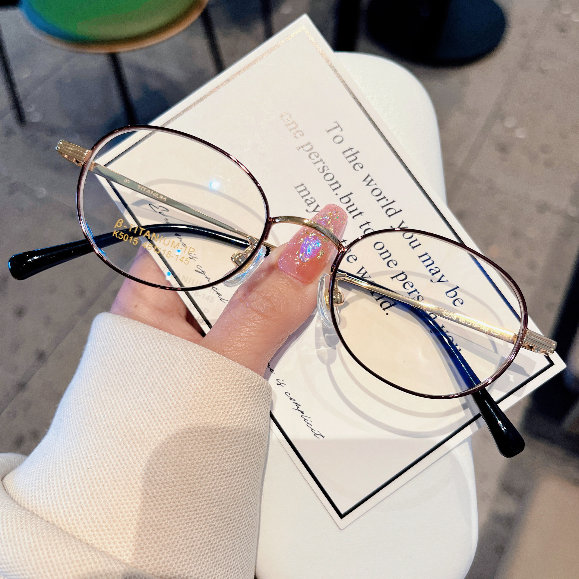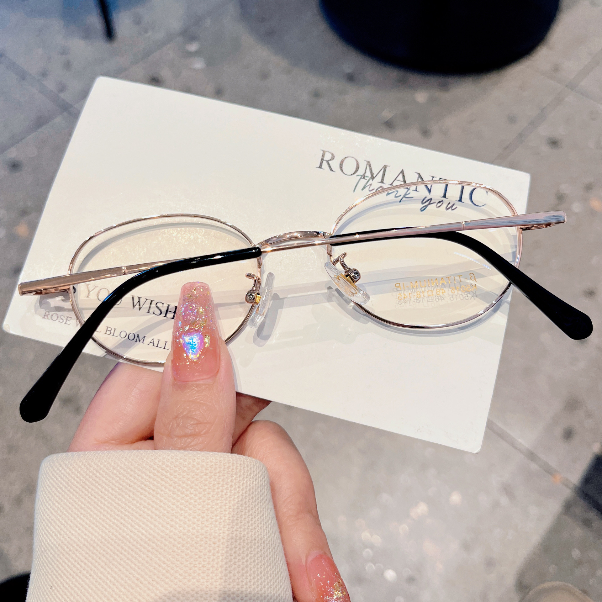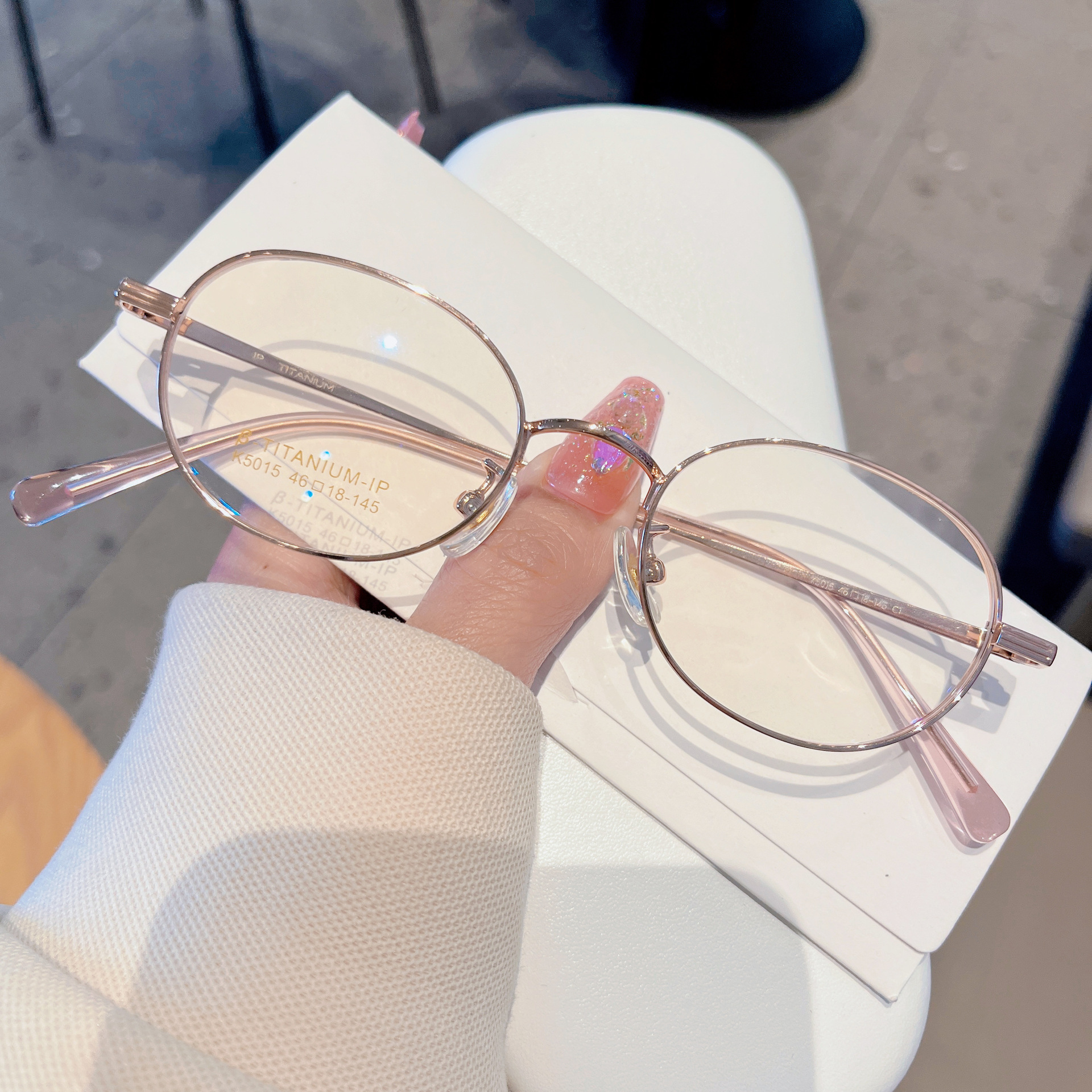 丹阳配镜5015纯钛镜框近视眼镜女高级感小框复古高度数眼镜架批发