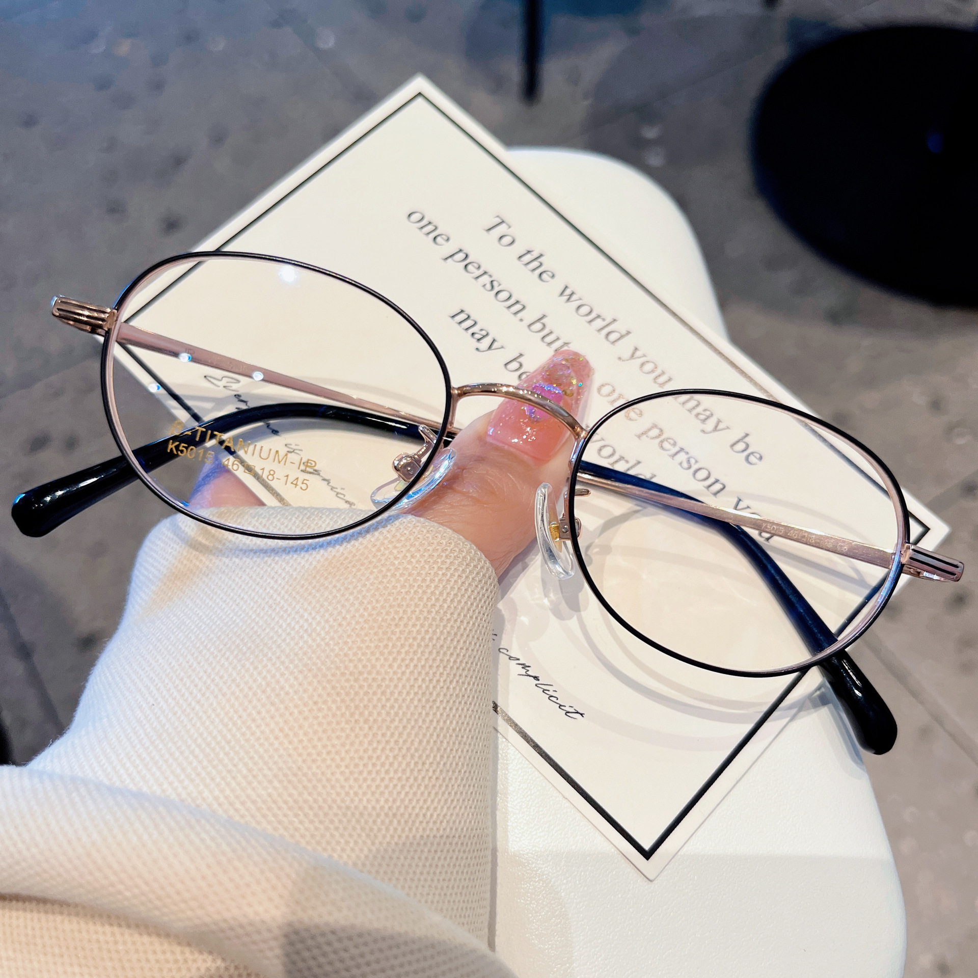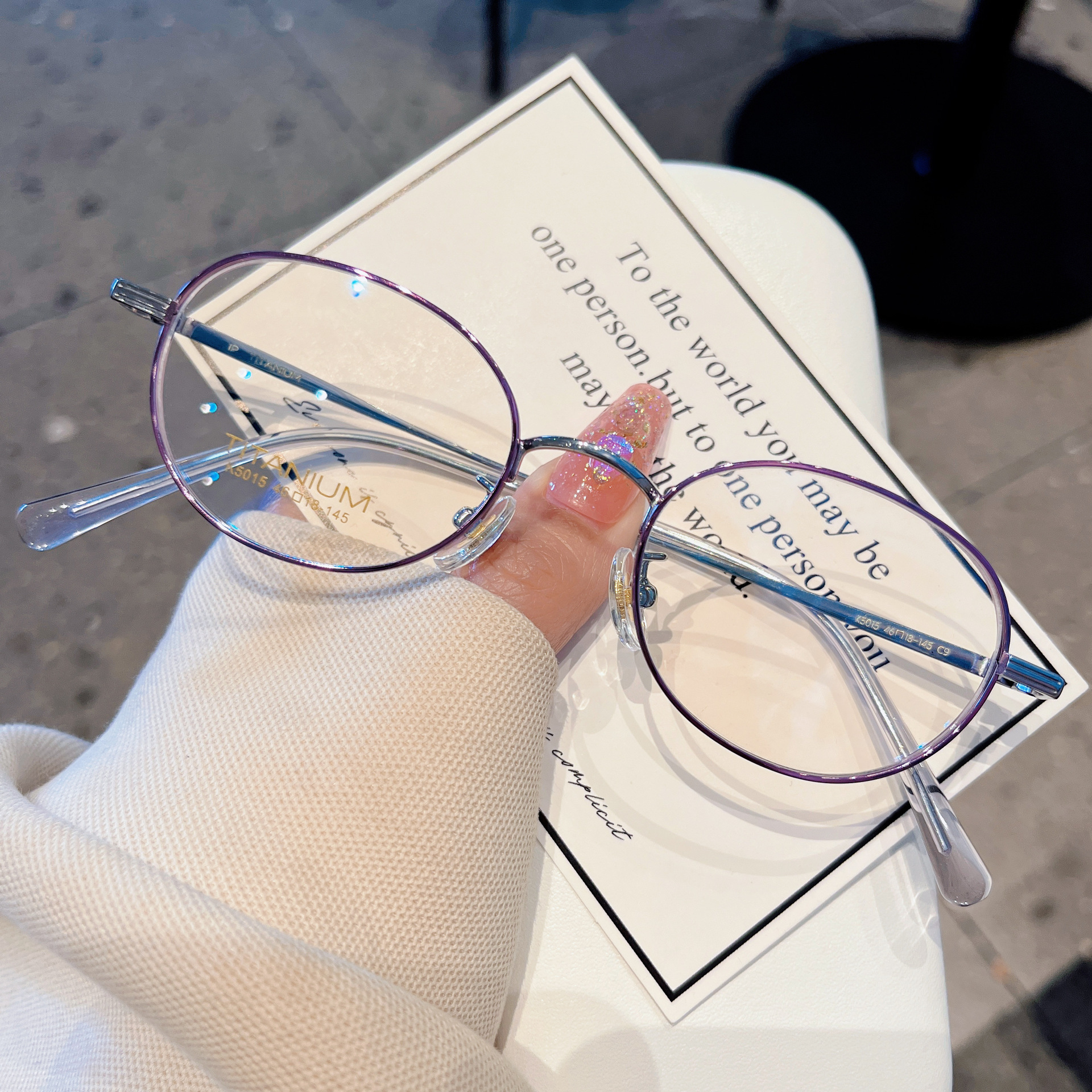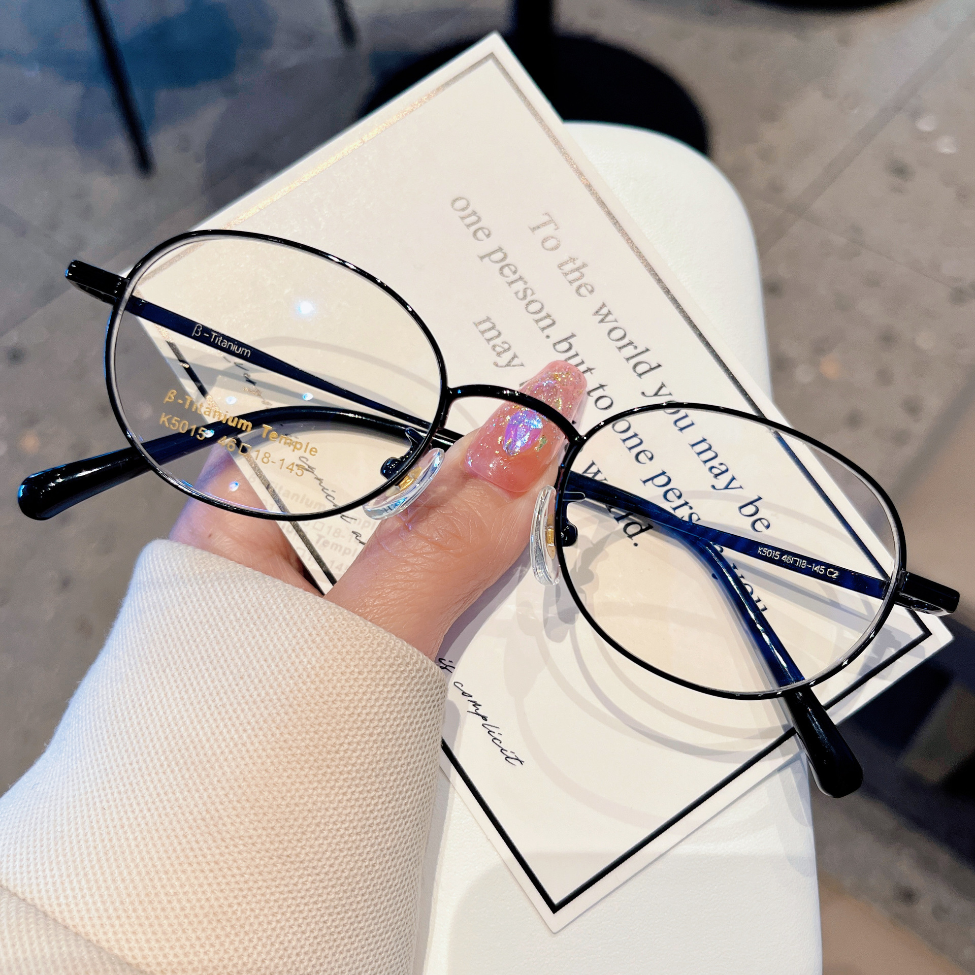 丹阳配镜5015纯钛镜框近视眼镜女高级感小框复古高度数眼镜架批发