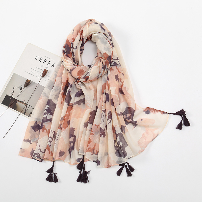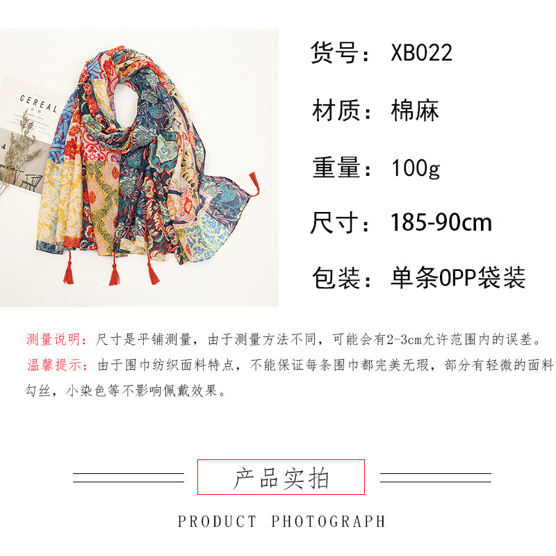 跨境新款彩色印花流苏围巾 波西米亚风拼接披肩海边旅游度假防晒