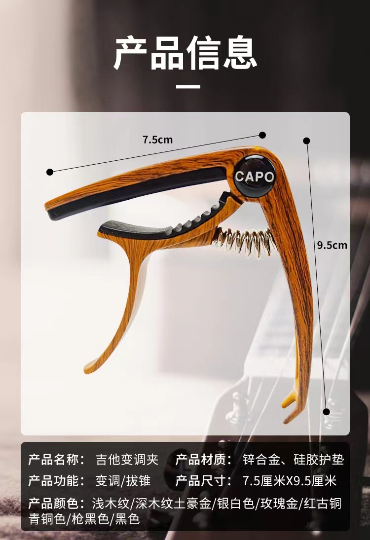 吉他变调夹 锌合金民谣变音夹电吉他贝斯金属古典 可拔固弦锥弦钉