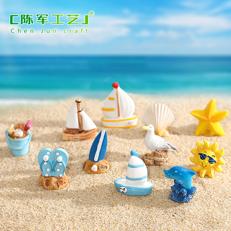 海边系列 地中海风格摆件 冲浪板海贝海鸟海豚海星帆船沙滩桶太阳