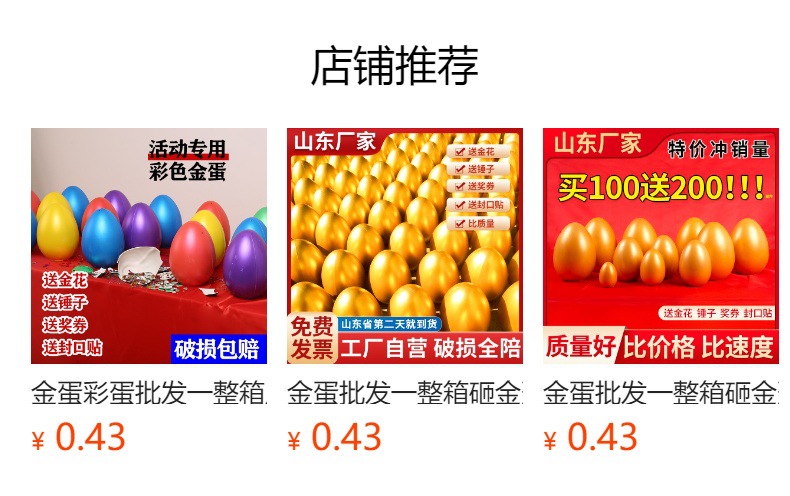 | 金蛋12厘米一箱200个【整箱发货】 | USD $0.1 | 9943212 piece available |